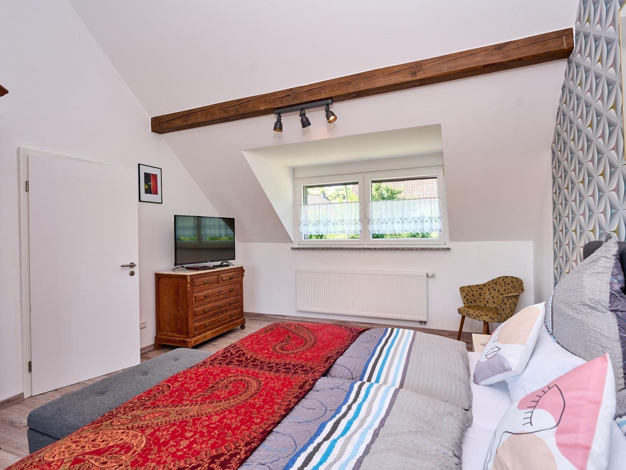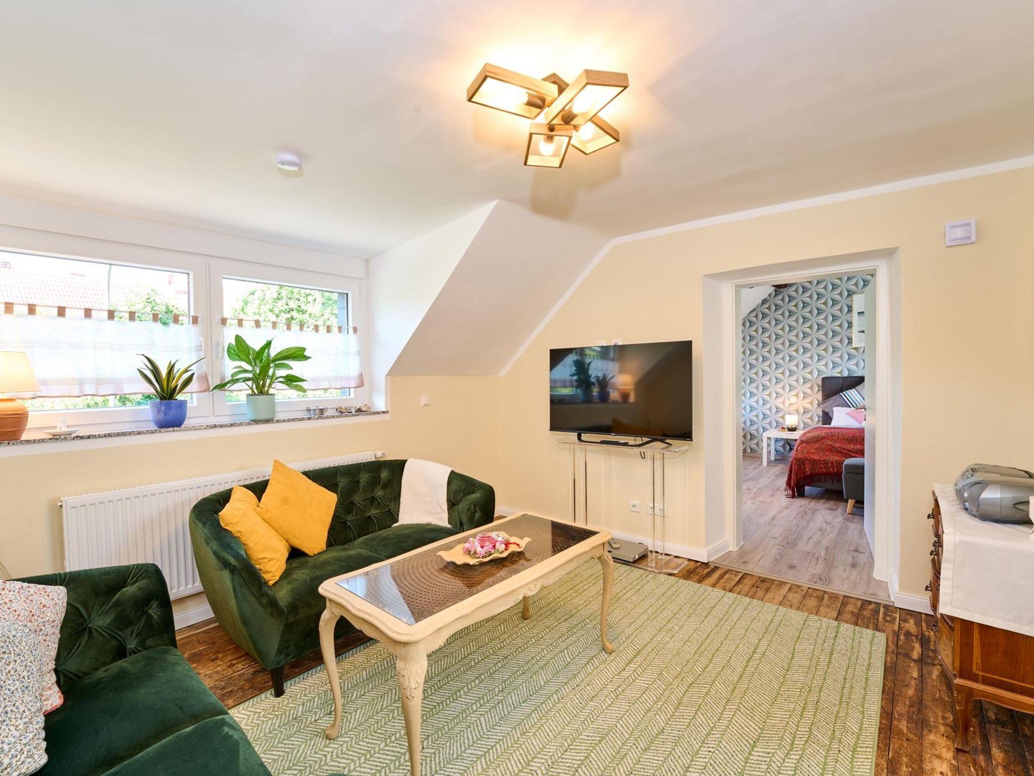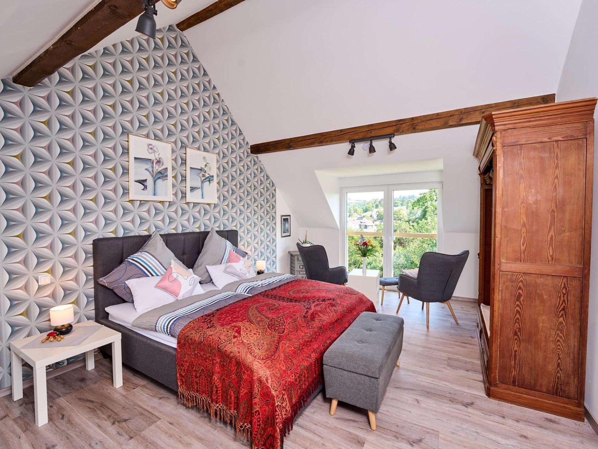 Die großzügige und gemütliche Ferienwohnung mit ca. 64m² Wohnfläche ist 2023 komplett neu entstanden und befindet sich im ersten OG. Sie umfasst einen Wohnraum, Schlafzimmer, Küche und Bad.