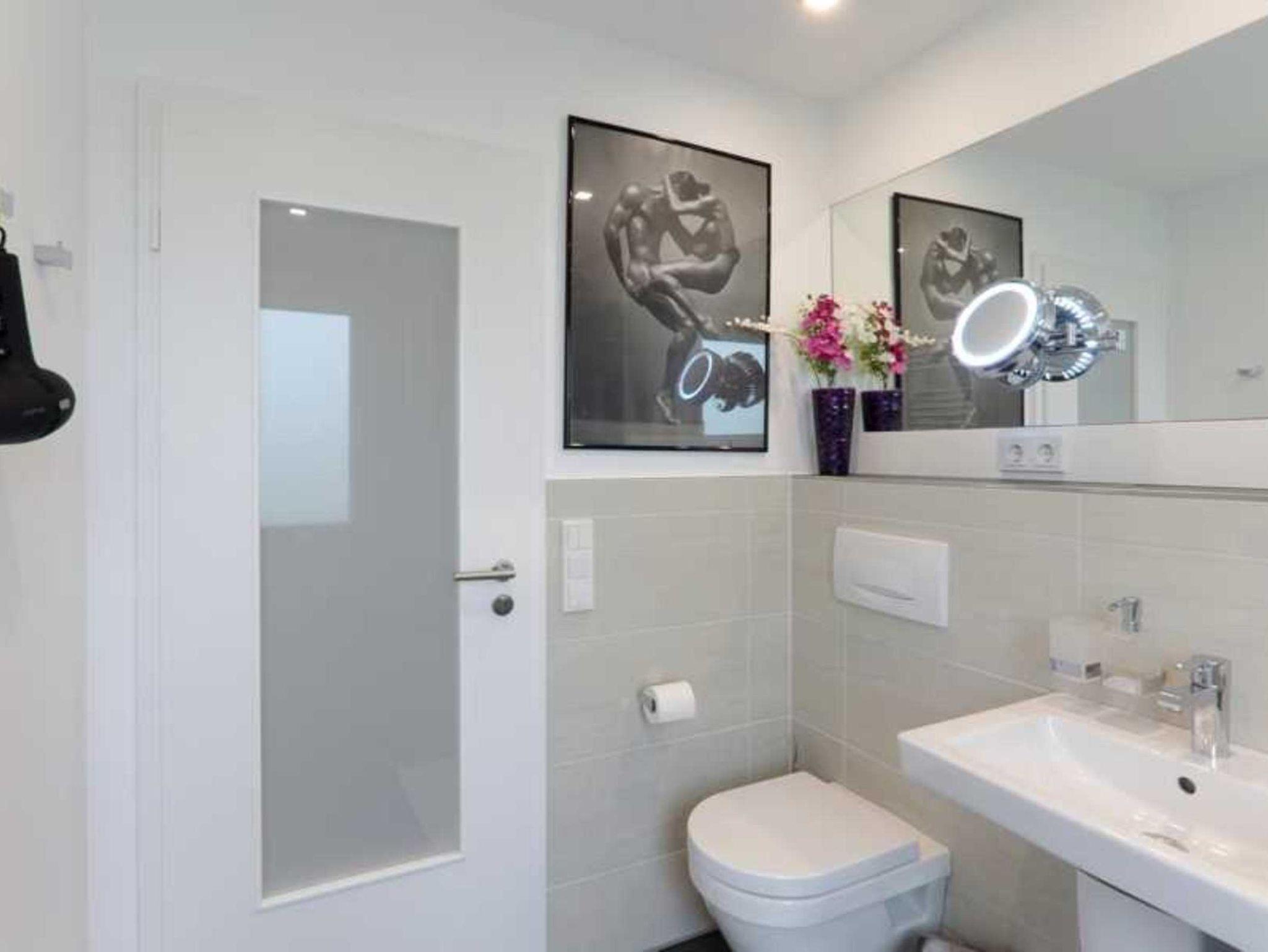 Die Küche ist mit einem Essbereich, Kaffeemaschine (Tassimo), Toaster, Herd, Backofen, Mikrowelle, Kühl-/Gefrierschrank sowie Geschirrspüler und allen notwendigen Küchenutensilien ausgestattet. Das Bad verfügt über eine Regendusche, Fön, einen beleuchteten Kosmetikspiegel und ist mit Handtüchern, Bademänteln und Kosmetiktüchern ausgestattet. Im Wohnzimmer finden Sie einen Flachbild-TV mit Surround-Anlage und Blu-ray-Player sowie eine umfangreiche Sammlung von Blu-ray-DVD's. Das Schlafzimmer ist mit einem komfortablen Boxspringbett und einem großzügigen Kleiderschrank incl. Safe ausgestattet. Das Apartment eignet sich ideal für 2 Erwachsene. Für eine dritte und vierte Person gibt es ein Schlafsofa im Wohnzimmer (Matratze 150 x 170cm) und/oder zwei Beistell-Betten (90x200cm), welche im Wohnzimmer, im Schlafzimmer oder einer separaten Kammer aufgestellt werden können. Für Kleinkinder steht ein Babybett und ein Hochstuhl zur Verfügung.