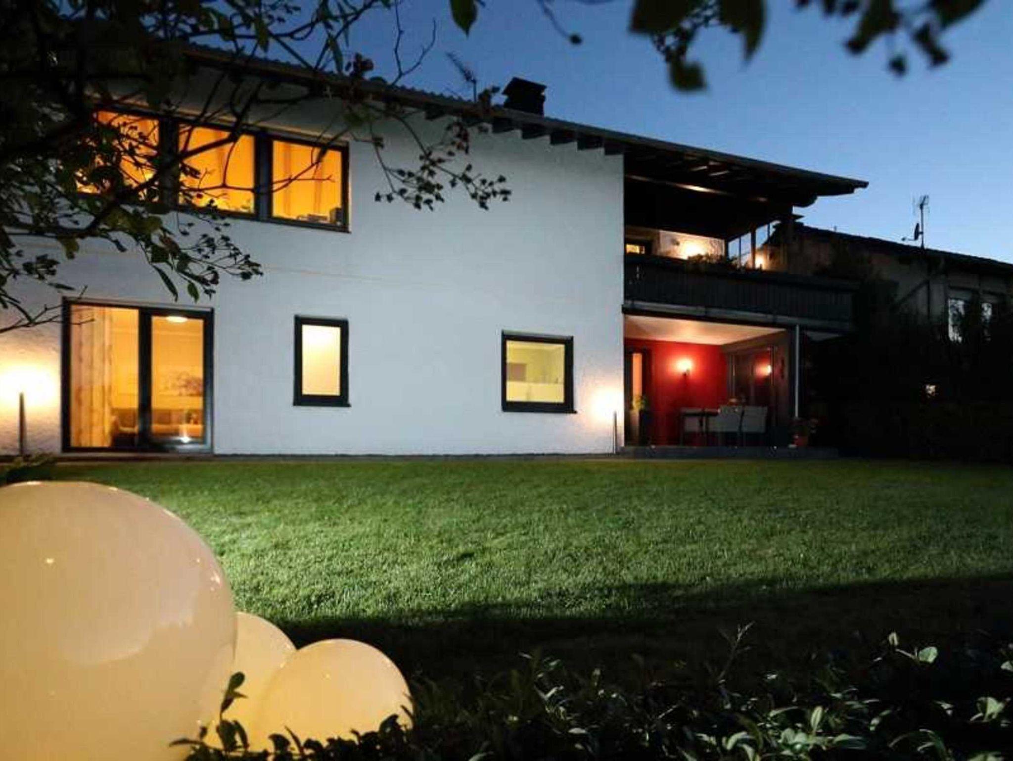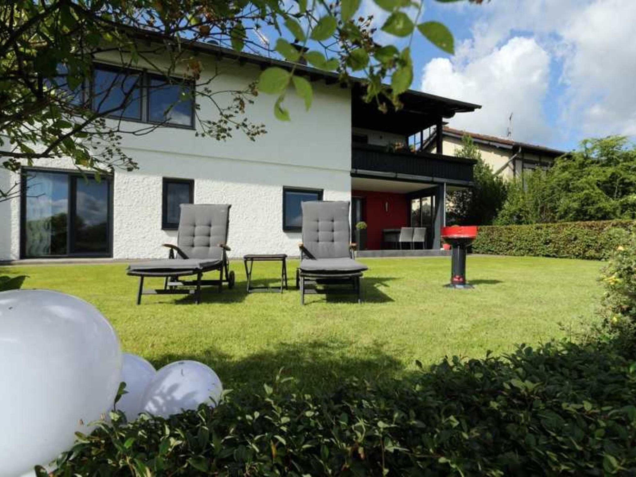 Das Apartment bietet Seeblick (5 Gehminuten zum Strandbad), eine überdachte Terrasse, einen Grill und einen Garten mit Liegewiese und Liegestühlen.