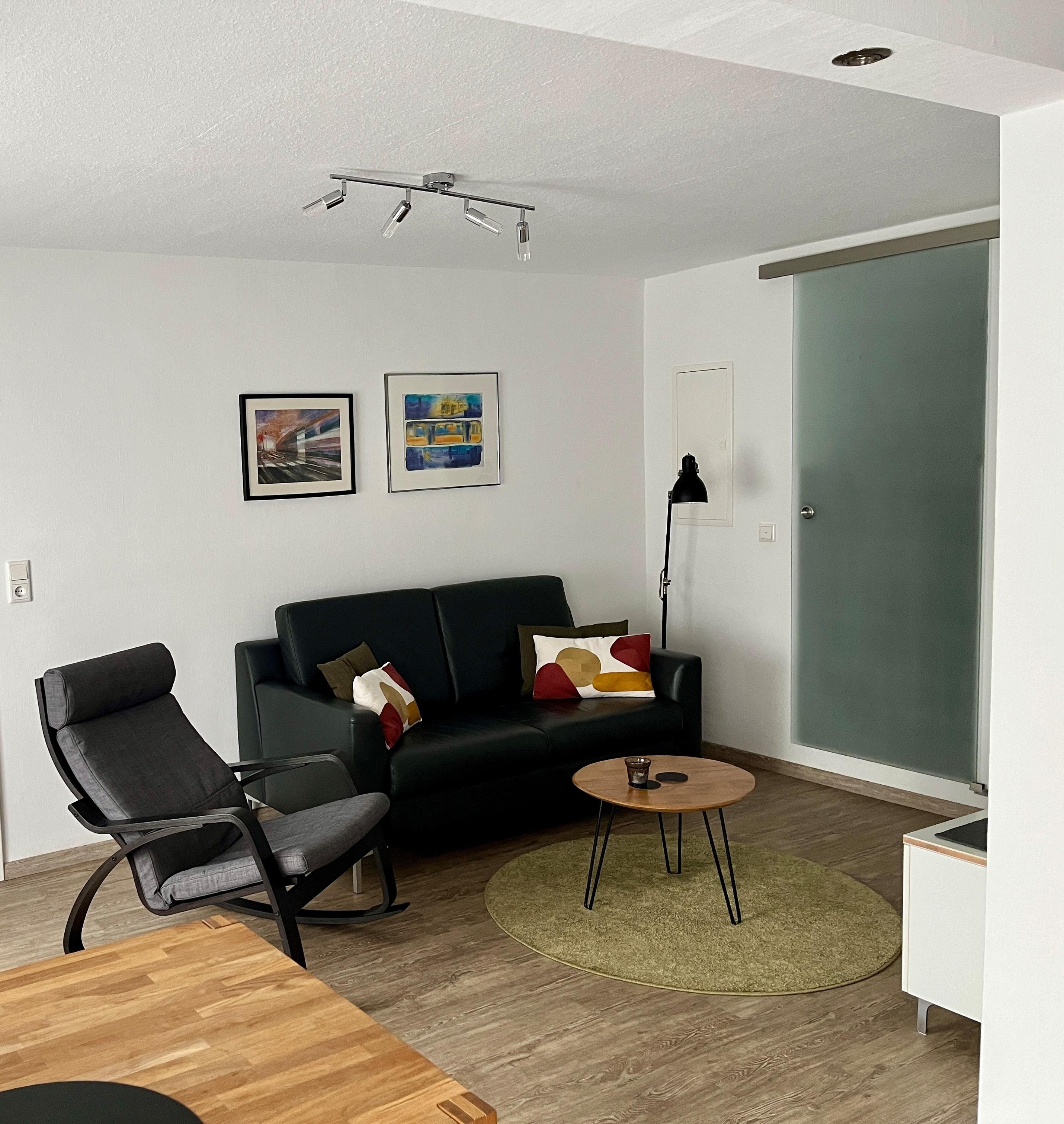 Die Nichtraucherwohnung verfügt über einen modern eingerichteten Wohn-/Küchenbereich, ein kleines Bad und ein Schlafzimmer mit einem großen Doppelbett (bei Bedarf lässt sich ein Kinderbettchen hinzustellen).