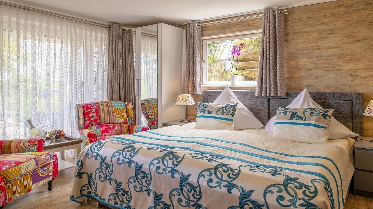 Stilvolles, komplett neu eingerichtetes Studio für 2 Personen. ca. 30 qm Wohnfläche, Terrasse Richtung See und Zierteich.