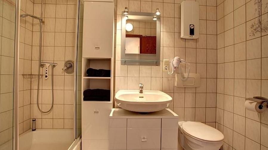 Dusche und WC und Waschtisch, zusätzliches Gäste-WC mit kleinem Waschtisch, Diele, Garderobe, Zentralheizung, Im Wohnraum: Digitalfernsehen mit Flachbildschirm (107 cm, HD-Fernsehen, 2 Satelliten: Astra und Hotbird mit sehr vielen deutschen und internationalen Sendern), Digital-Radio mit vielen deutschen und internationalen Sendern, Internetzugang mit Wlan/DSL für eigenem Laptop. DVD-Player, CD-Player, Stereonanlage, Dekorativer Elektrokamin, Spiele, separater Eingang.