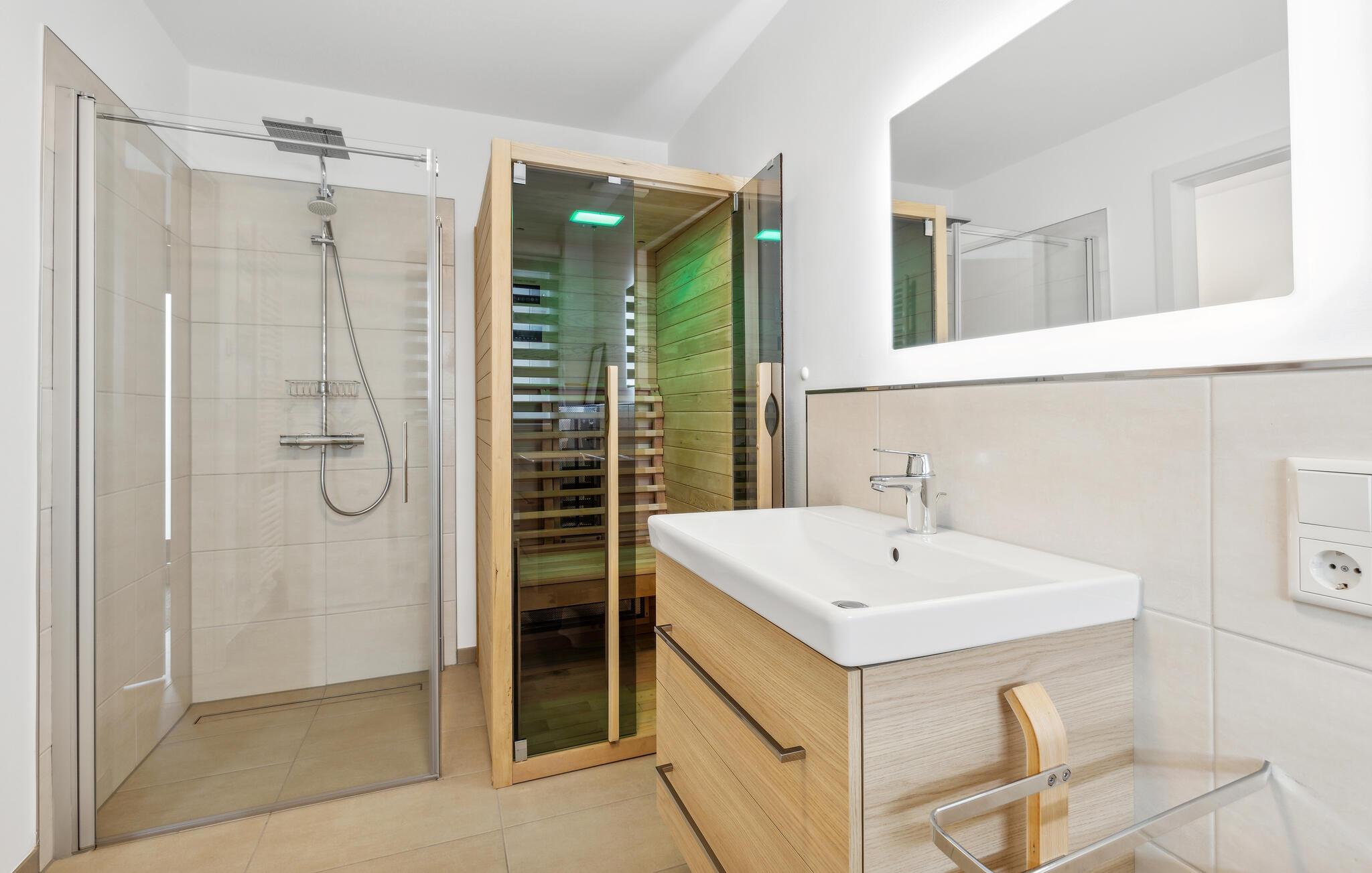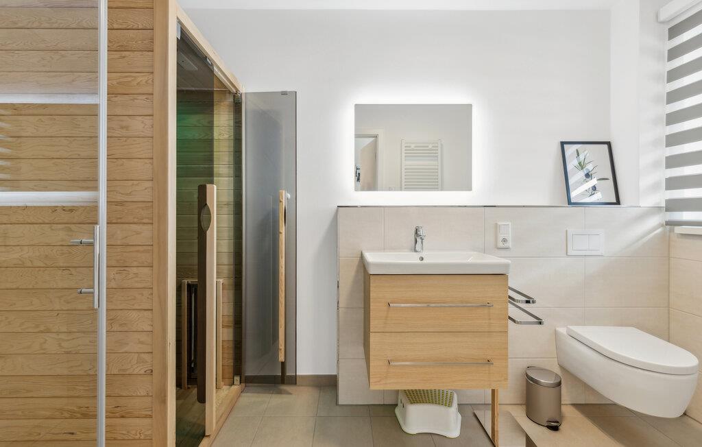 På varme sommerdage er balkonen med havemøbler et vidunderligt sted at slappe af. Nyd en afslappet morgenmad her. Og selv på frostklare vinterdage tilbyder den højkvalitets sauna en vidunderlig måde at slappe af på.