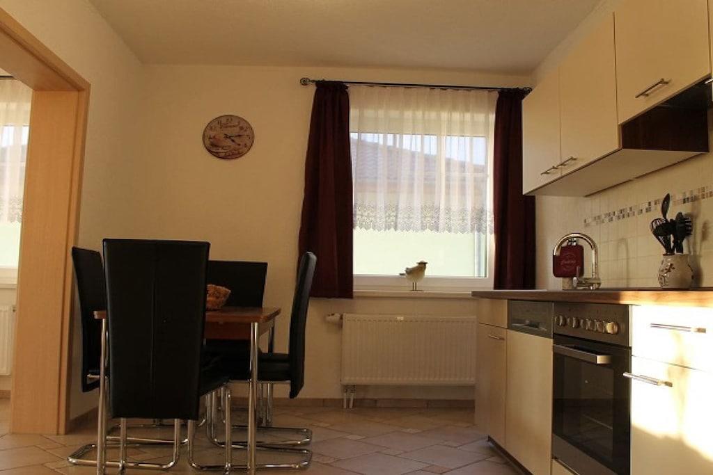 Ferielejligheden er cirka 80 m² stor og egnet til 4-6 personer. Kæledyr er velkomne efter anmodning. Den moderne ferielejlighed er tilgængelig for kørestolsbrugere. Den rummelige opholds- og spisestue samt det fuldt udstyrede køkken med opvaskemaskine og keramisk kogeplade suppleres af en 10 m² sydvendt terrasse. Her kan du fuldt ud nyde den friske landluft. For komfortable nætter er der et soveværelse med en dobbeltseng og et soveværelse med to enkeltsenge. Opholdsstuen er møbleret med en sovesofa med plads til to ekstra gæster. Vores aktuelle tilgængelighedskalender kan findes på vores private hjemmeside.