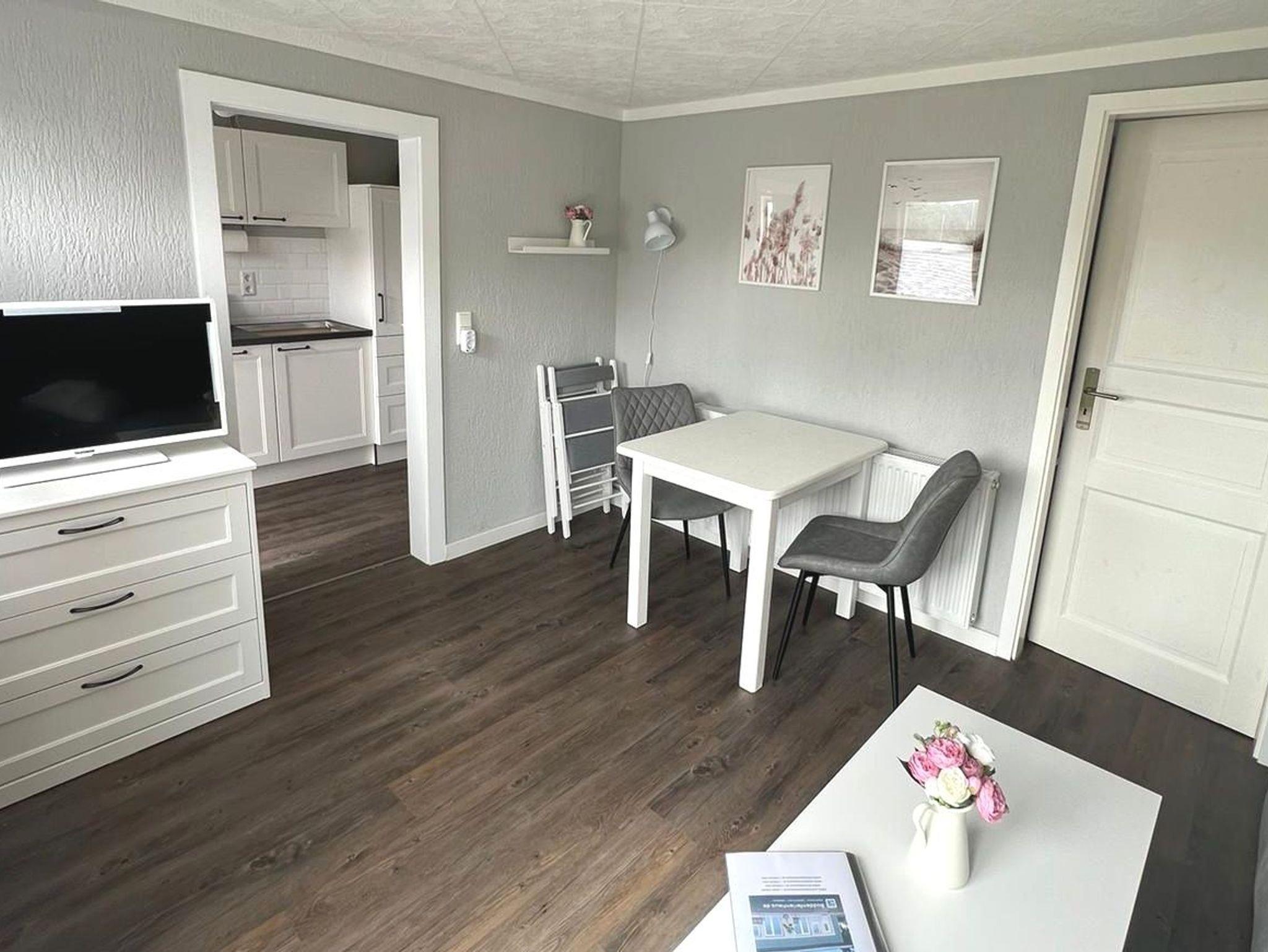 Die Wohnung Seemannsgarn befindet sich im Boddenferienhaus und verfügt über ein Schlafzimmer mit Doppelbett, ein Wohnzimmer mit Schlafsofa, einer Einbauküche und ein Badezimmer mit Dusche.