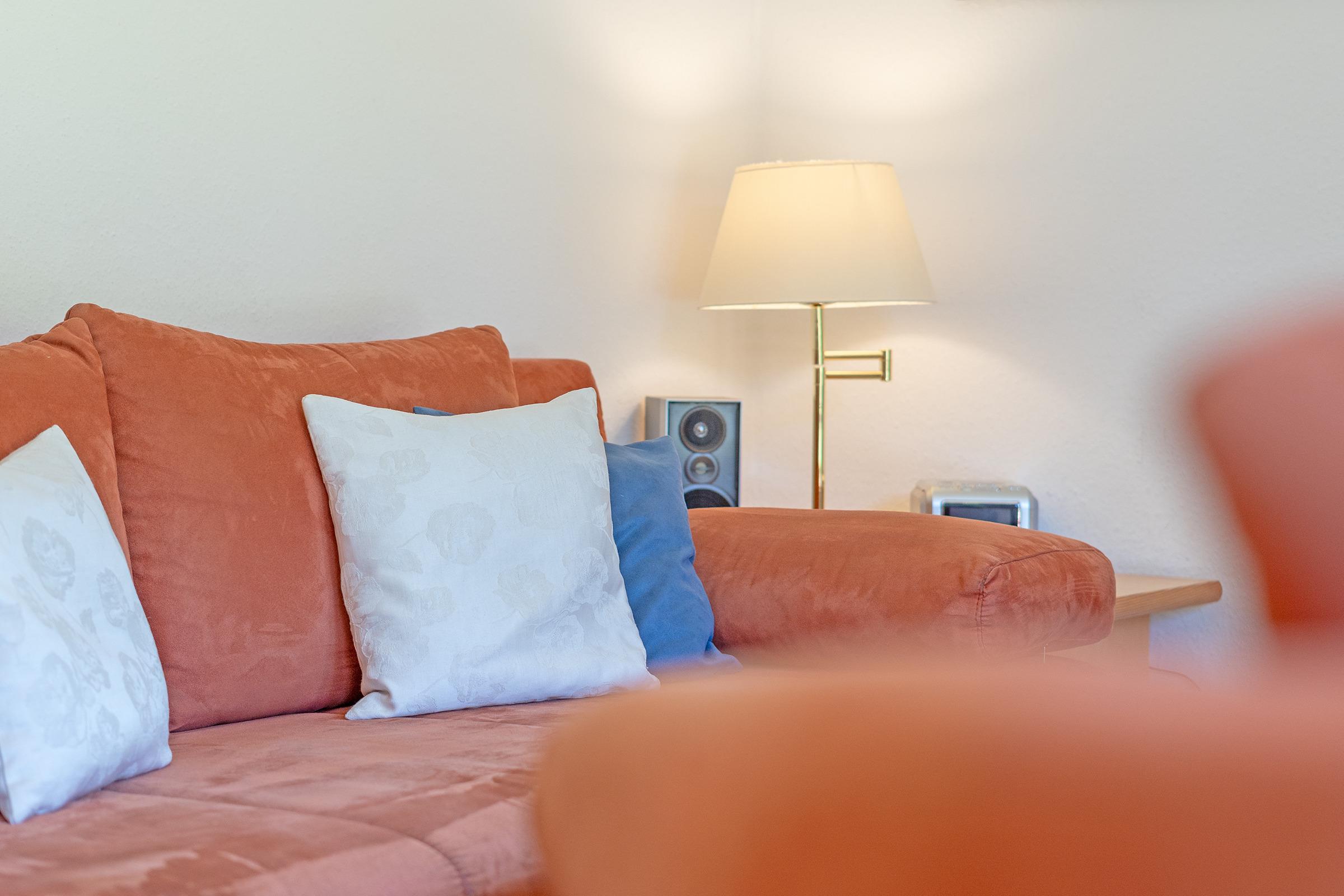 Wohn-Schlafzimmer: Schlafsofa (200x140 cm), Verdunkelung: Vorhänge, Platz für ein Babybett vorhanden
