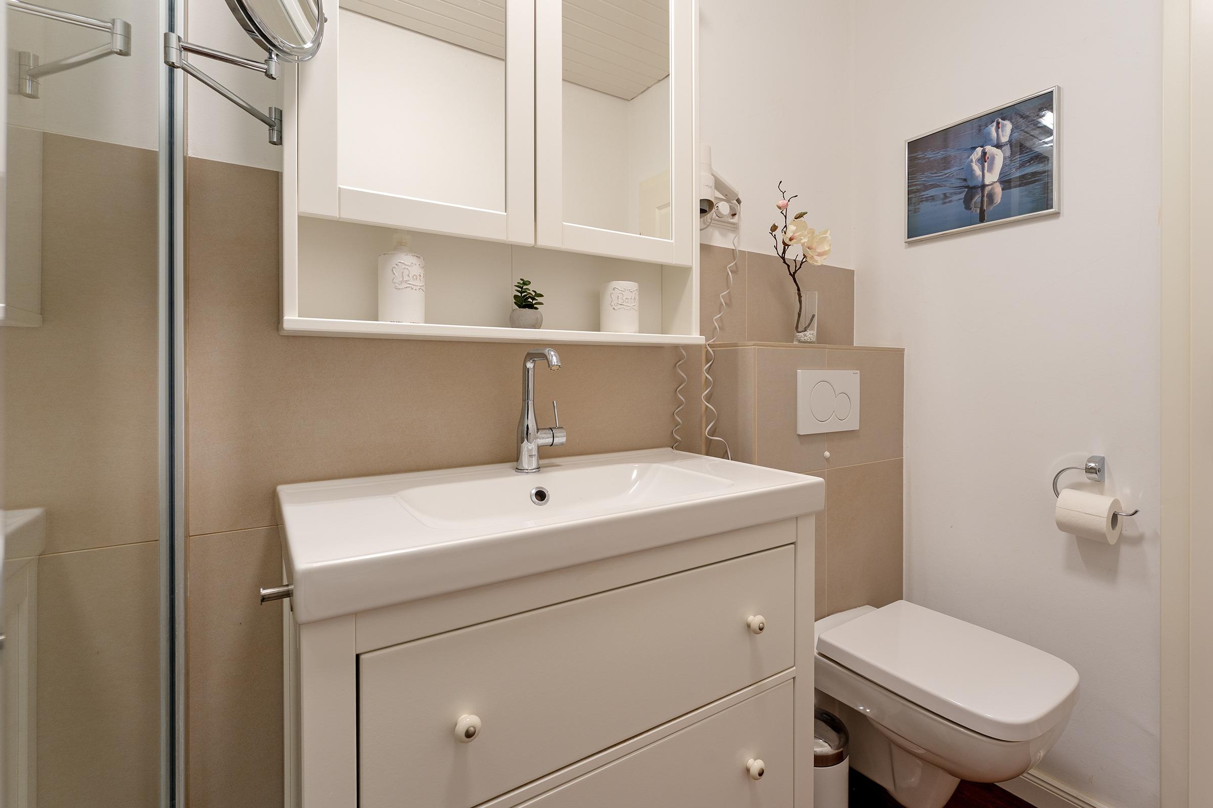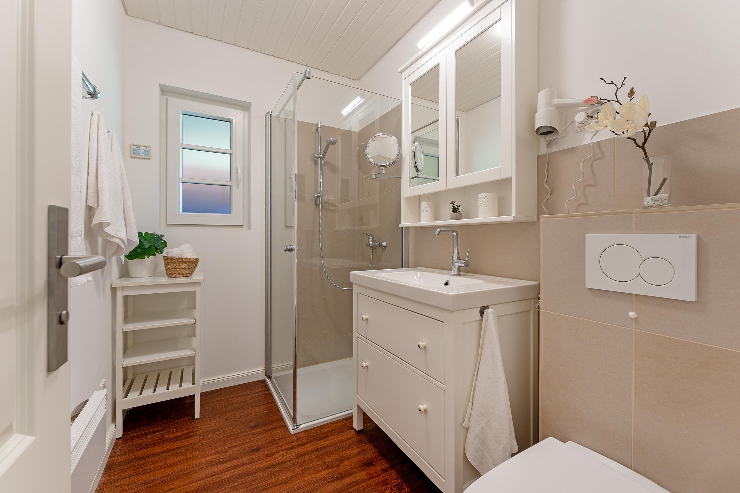 Das helle Tageslichtbad ist ideal für einen komfortablen Start in den Tag.