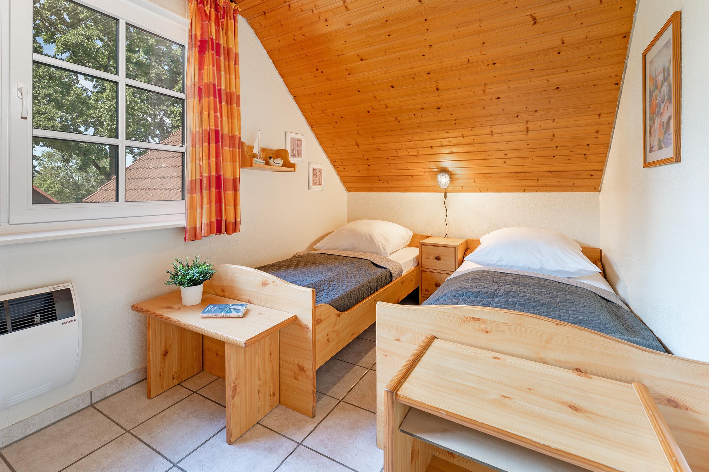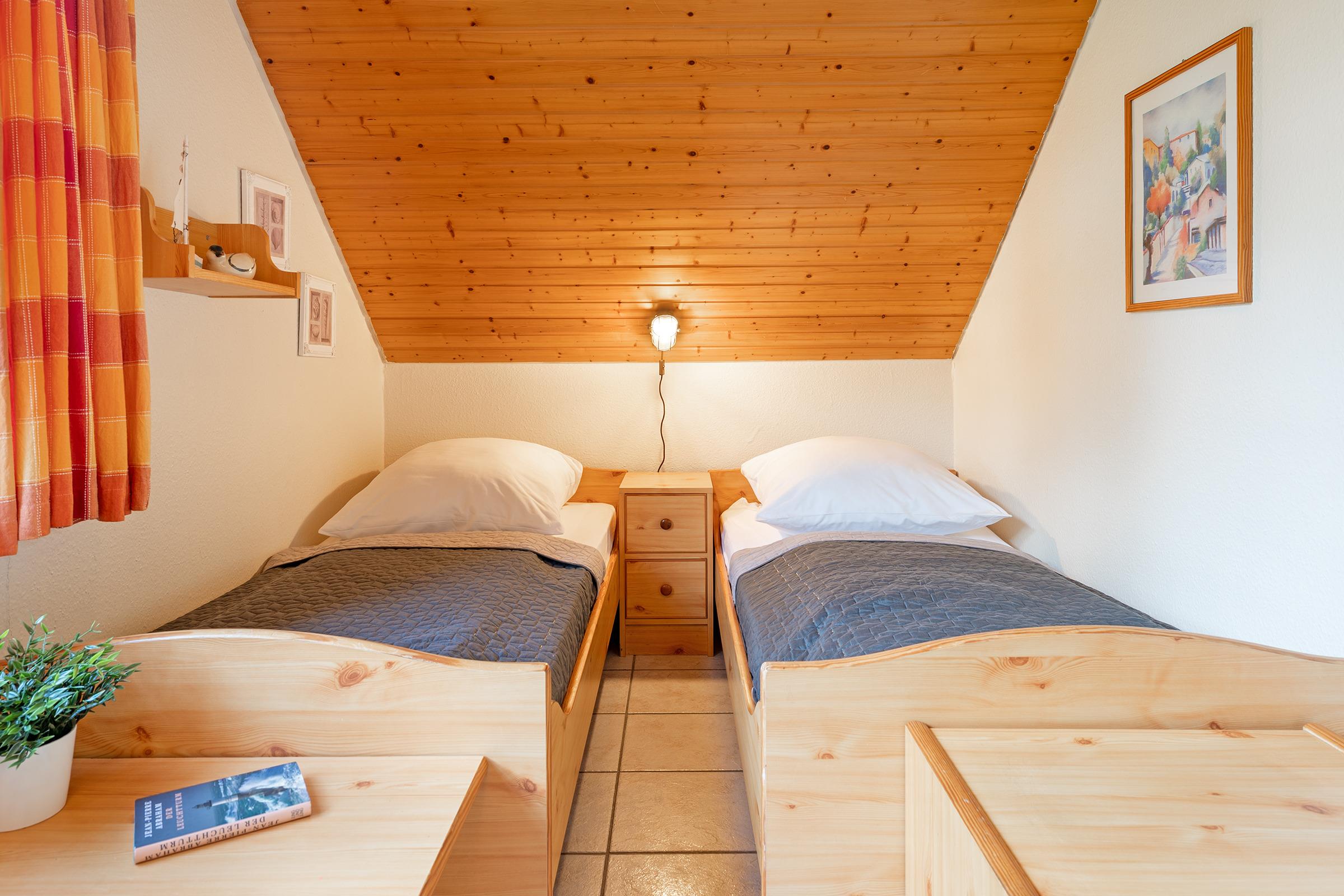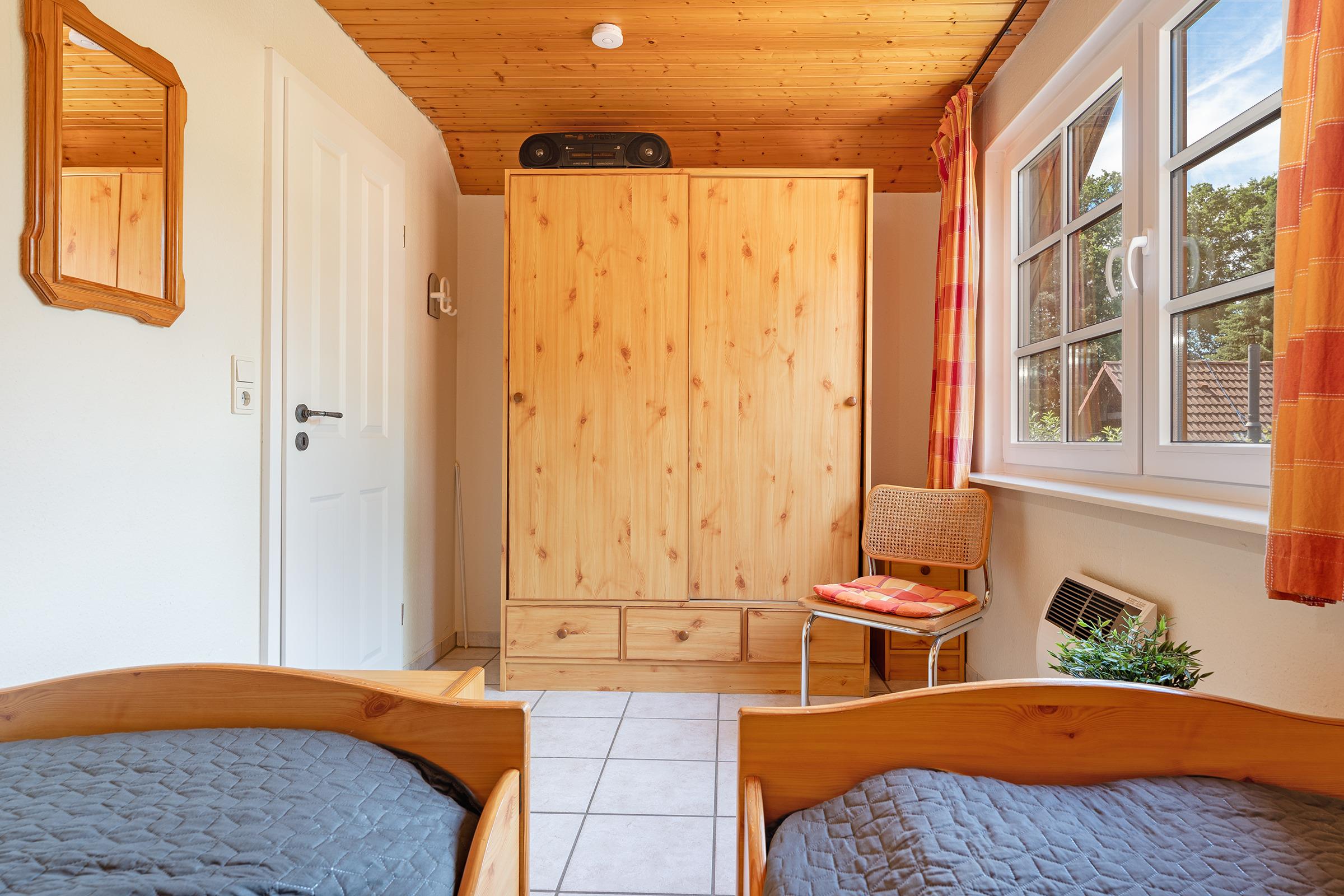 Schlafzimmer 2: 2 Einzelbetten (ja 90x200 cm), Kleiderschrank, Verdunkelung: Vorhang, kein Platz für ein Babybett