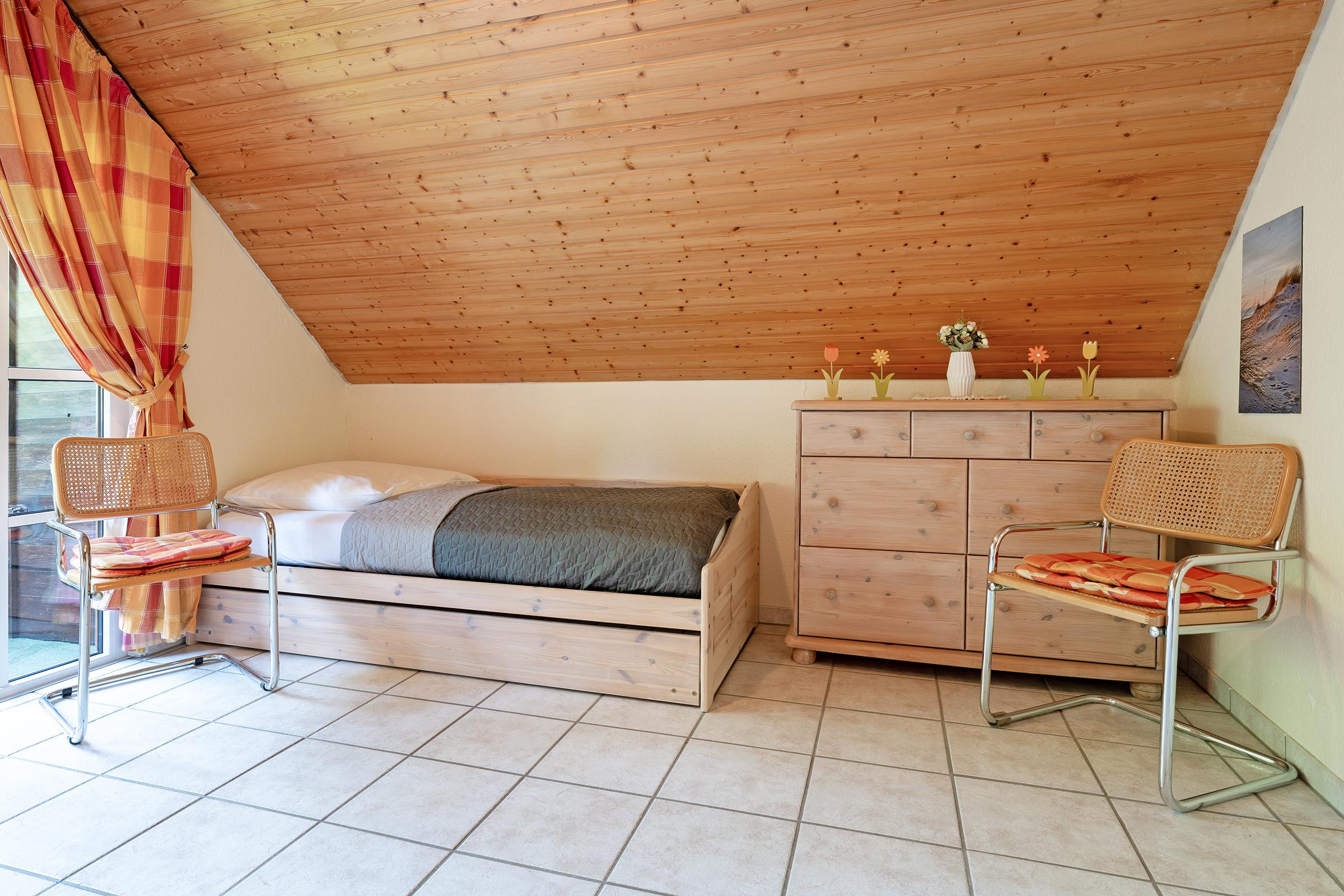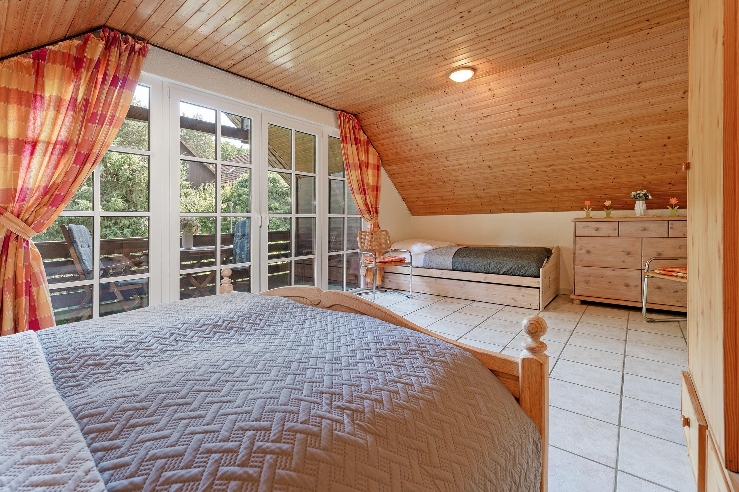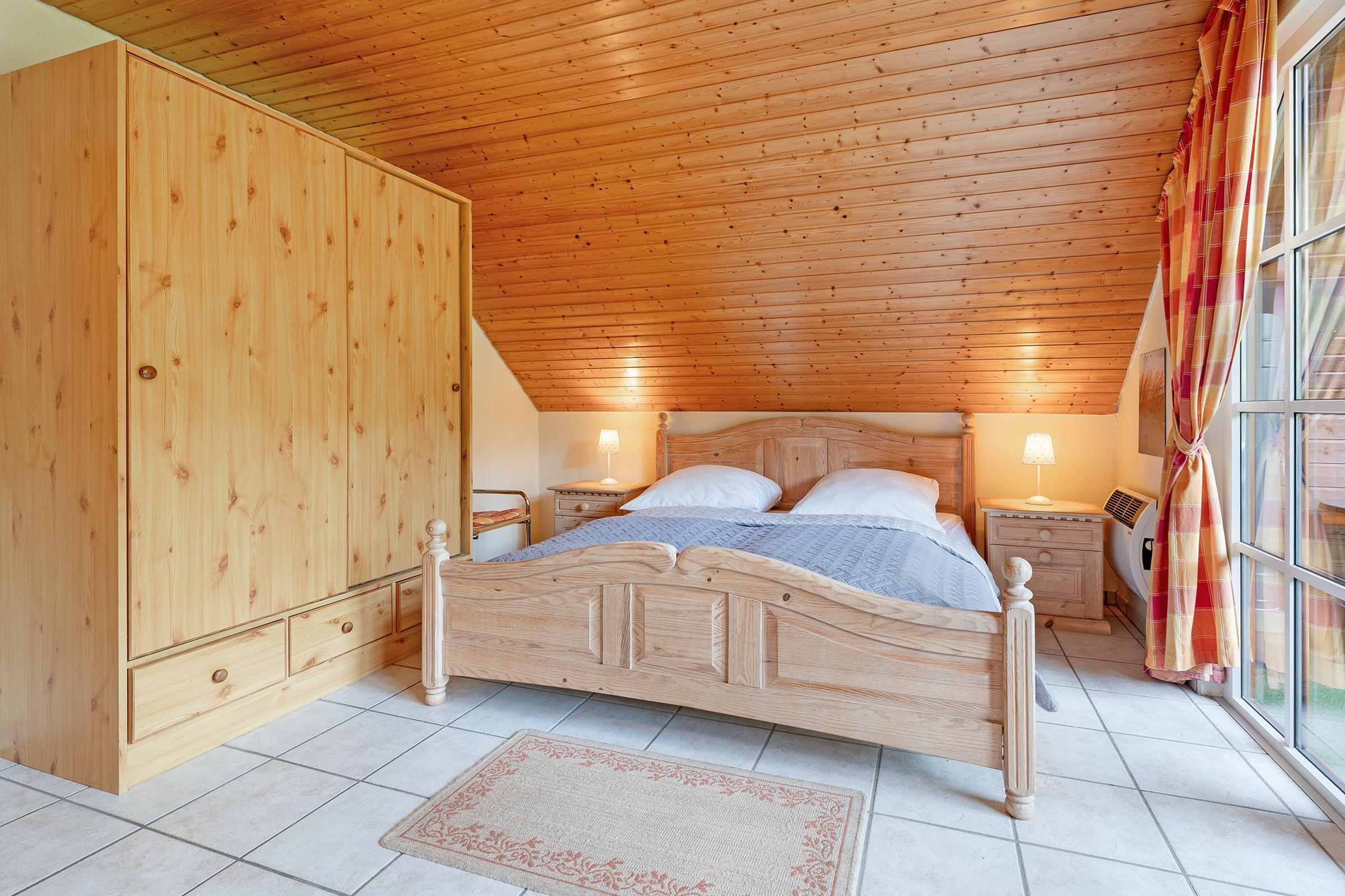 Schlafzimmer 1: Doppelbett (2x 90x200 cm), Einzelbett (90x200 cm), Kleiderschrank, Verdunkelung: Vorhang, Platz für ein Babybett vorhanden