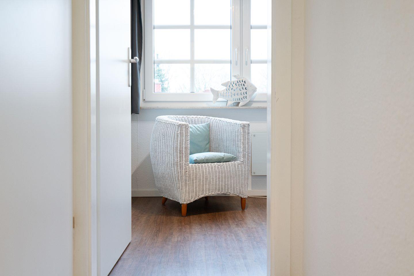 Die Ferienwohnung bietet mit zwei gut geschnittenen Zimmern ausreichend Platz für Paare, kleine Familien oder Alleinreisende. Das separate Schlafzimmer sorgt mit einem Doppelbett (2 x 90cm x 200cm, Matratzenhärtegrad 3) für erholsame Nächte, während der Wohnbereich mit gemütlichem Schlafsofa einen weiteren Schlafplatz bietet (Liegefläche ca. 150 x 195 cm). Durch die offene Gestaltung wirkt der Wohnraum hell und einladend. Sichtschutz an allen Fenstern sorgt in der gesamten Wohnung für Privatsphäre und ein angenehmes Wohngefühl sowie angenehme Verdunklung zur Nacht. Familien mit Kindern sind herzlich willkommen; ein Kinderhochstuhl steht zur Verfügung.