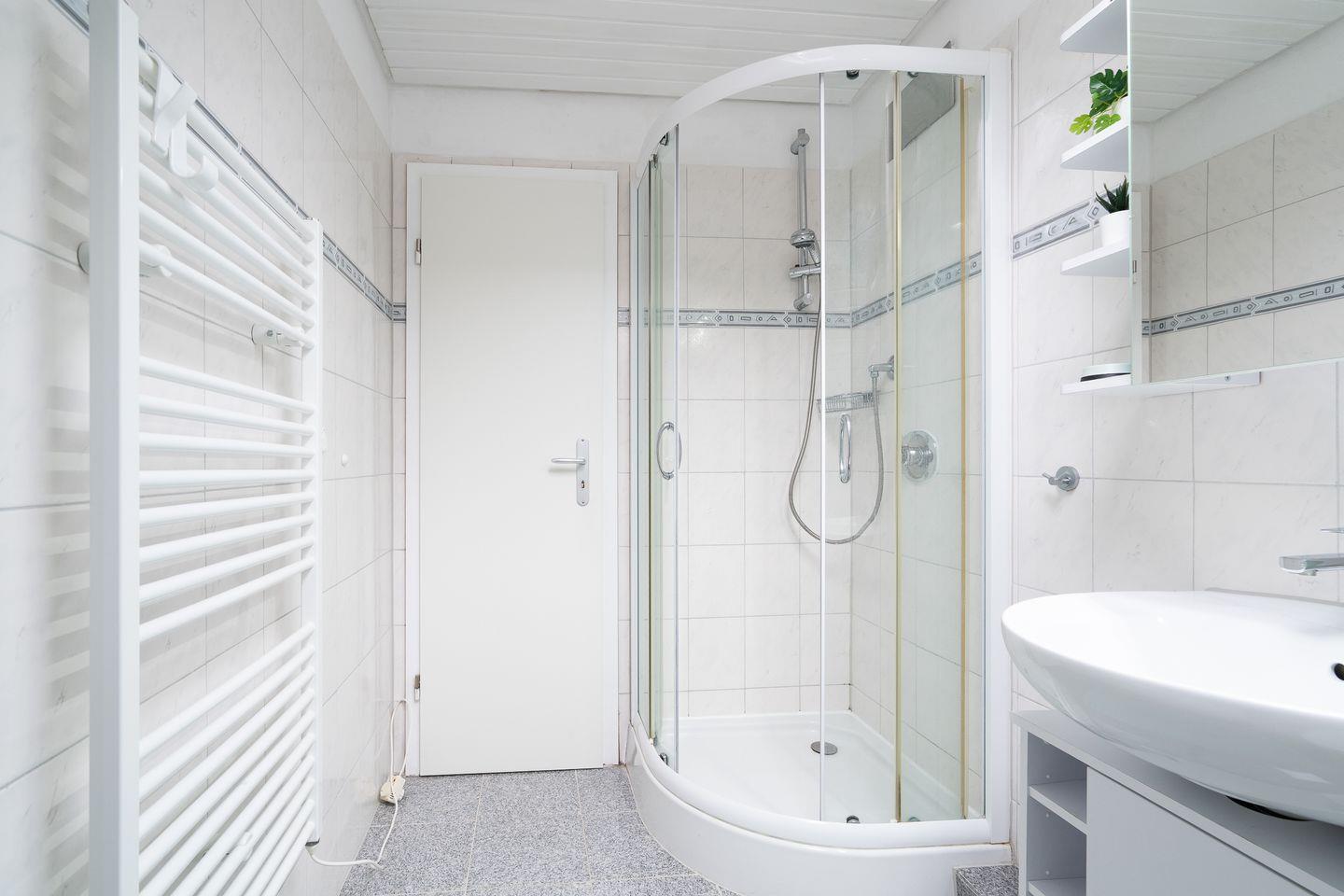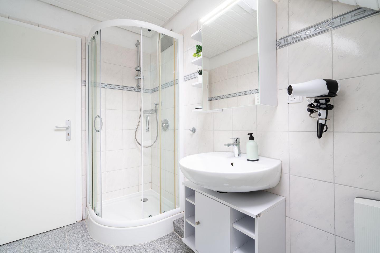 Das Tageslichtbad ist mit einer Eckdusche ausgestattet und bietet ausreichend Platz für Ihre persönliche Pflege. Ein Haartrockner steht bereit. Besonders praktisch für längere Aufenthalte oder aktive Urlaubstage ist die zur alleinigen Nutzung verfügbare Waschmaschine.