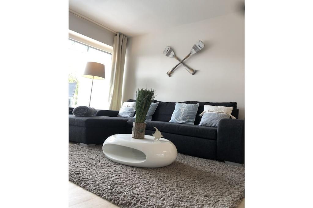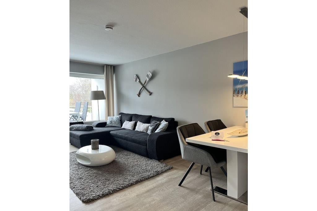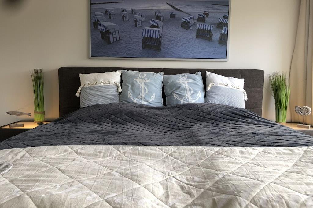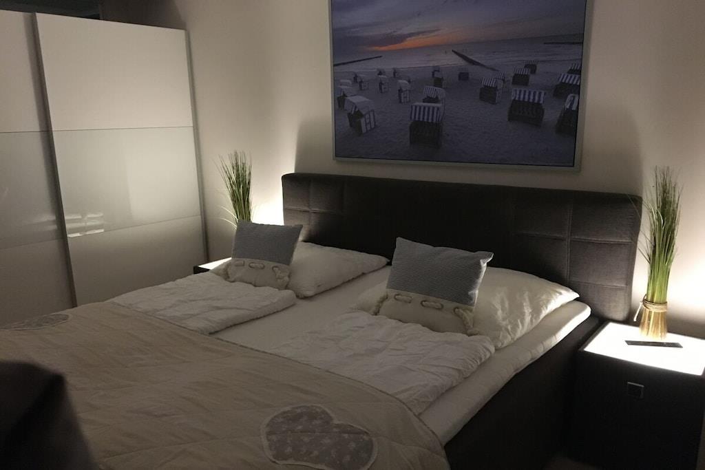 Holiday apartment StrandMÖWE Scharbeutz - dream holiday apartment with extra children's room in Scharbeutz. Spend an unforgettable holiday in our holiday apartment in Scharbeutz! The apartment is in a top location in Scharbeutz. The fine sandy beach, the dune mile with numerous restaurants, cafes, boutiques and bakeries as well as mini golf courses, playgrounds and skating rink are quickly accessible. Enjoy the sun on the beautiful loggia with garden furniture. The 2.5 room apartment is in the heart of Scharbeutz A beautiful bedroom with a comfortable 180 cm box spring bed, LCD TV with DVD player invites you to relax and unwind. The floor in the entire living area is covered with high-quality designer flooring. In the living and dining area you can enjoy TV evenings on the comfortable sofa. LCD flat screen TV, Bluray player and music system with CD/radio/USB/iPod docking station are of course included. The high-quality kitchen with a glass back wall is equipped with a microwave, coffee machine, toaster, etc. and is ready for a great gourmet meal. A relaxing day of vacation starts in the bright, comfortable shower room with wellness lighting, floor-level walk-in shower & rain shower as well as a towel radiator! The bathroom is equipped with fine porcelain stoneware. There is a separate children's room with a bunk bed for the kids and a high chair and a travel cot for our little guests. We would be happy to make you an offer for your vacation in the Baltic Sea HOTSPOT Scharbeutz! Here again the most important information about our "StrandMÖWE" ? Top location just 300 meters from the fine sandy beach ? 55 sqm / 2.5 rooms for max. 3 adults + 1 child or 2 adults + 2 children ? free WiFi ? Loggia with awning & garden furniture ? LCD TV and BluRay player in the living room ? iPOD docking station / radio / CD ? LCD TV with DVD in the bedroom ? Box spring bed 180 x 200 cm ? Children's room with bunk bed ? Children's travel bed ? Children's high chair ? Play rug ? Bol