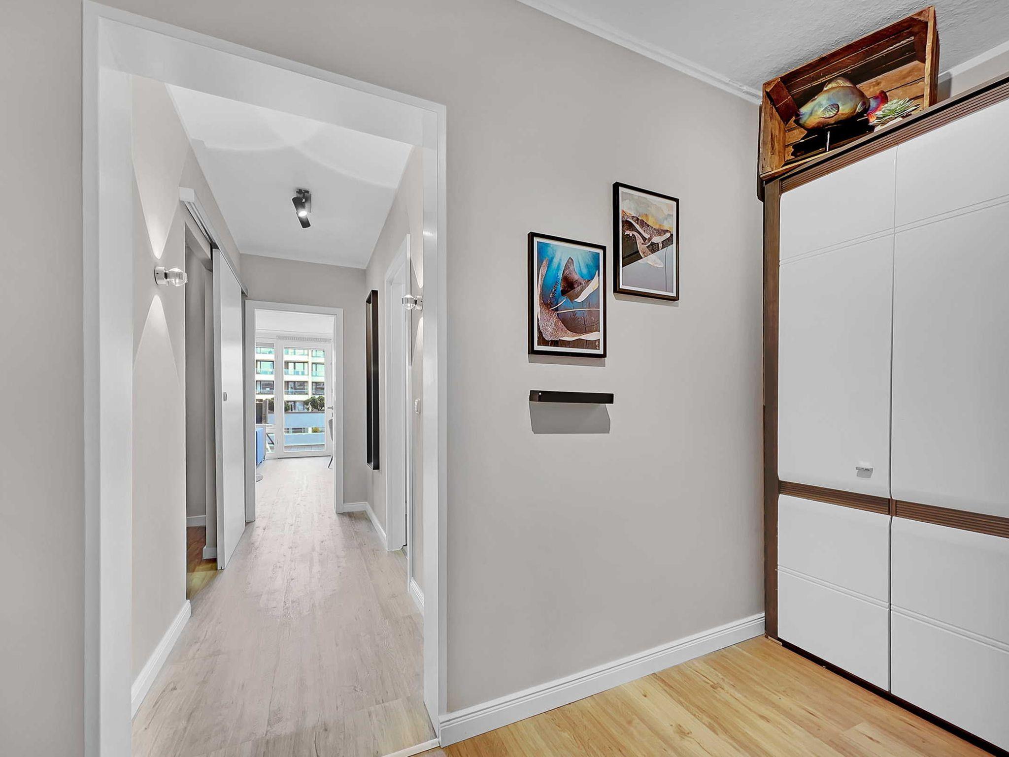 Die Wohnung Seaside liegt im Zentrum von Scharbeutz in direkter Strandlage, bester Lage an der Lübecker Bucht. Sie wurde im Frühjahr 2022 total renoviert. Eine neue, hochwertige Ausstattung in modernem Design sorgt hier für ein perfektes Ambiente. Zur Wohnung im 2. OG des exklusiven Hauses führt Sie ein Fahrstuhl. Sie erwartet ein großzügiges, helles Wohnzimmer mit einer großen Wohnlandschaft und einer Essecke. Die Fensterfront erschließt sich über die gesamte Breite der Wohnung (ca.6 m). Die moderne Sofagarnitur kann dank der Bettfunktion mit wenigen leichten Handgriffen zu einer Liegefläche von ca. 120 cm umgewandelt werden. Daneben bietet die Wohnung ein Schlafzimmer mit einem bequemen Doppelbett (Liegefläche ca. 180 cm) sowie einem zusätzlichen Smart-TV. Die offene Küche ist optimal, u.a. mit Geschirrspüler und Ceranfeld ausgestattet. Der große Flur hat einen Einbauschrank, zusätzlich steht ein separater Abstellraum zur Verfügung. Das Badezimmer ist mit einer Regendusche sowie einer Waschmaschine ausgestattet. Auf dem nach Osten ausgerichteten Balkon mit ca. 15 m² genießen Sie den morgendlichen Sonnenaufgang und Blick über die Lübecker Bucht oder die Nachmittags- und Abendsonne. Eine Markise sorgt für Beschattung. Kostenloses WLAN und ein Stellplatz auf dem abgeschlossenen Grundstück steht für Ihr Auto bereit. Fahrräder können nebenan bei Tobis Fahrradverleih geliehen oder eigene Fahrräder mitgebracht und im Fahrradraum untergebracht werden. Haustiere sind nicht gestattet.