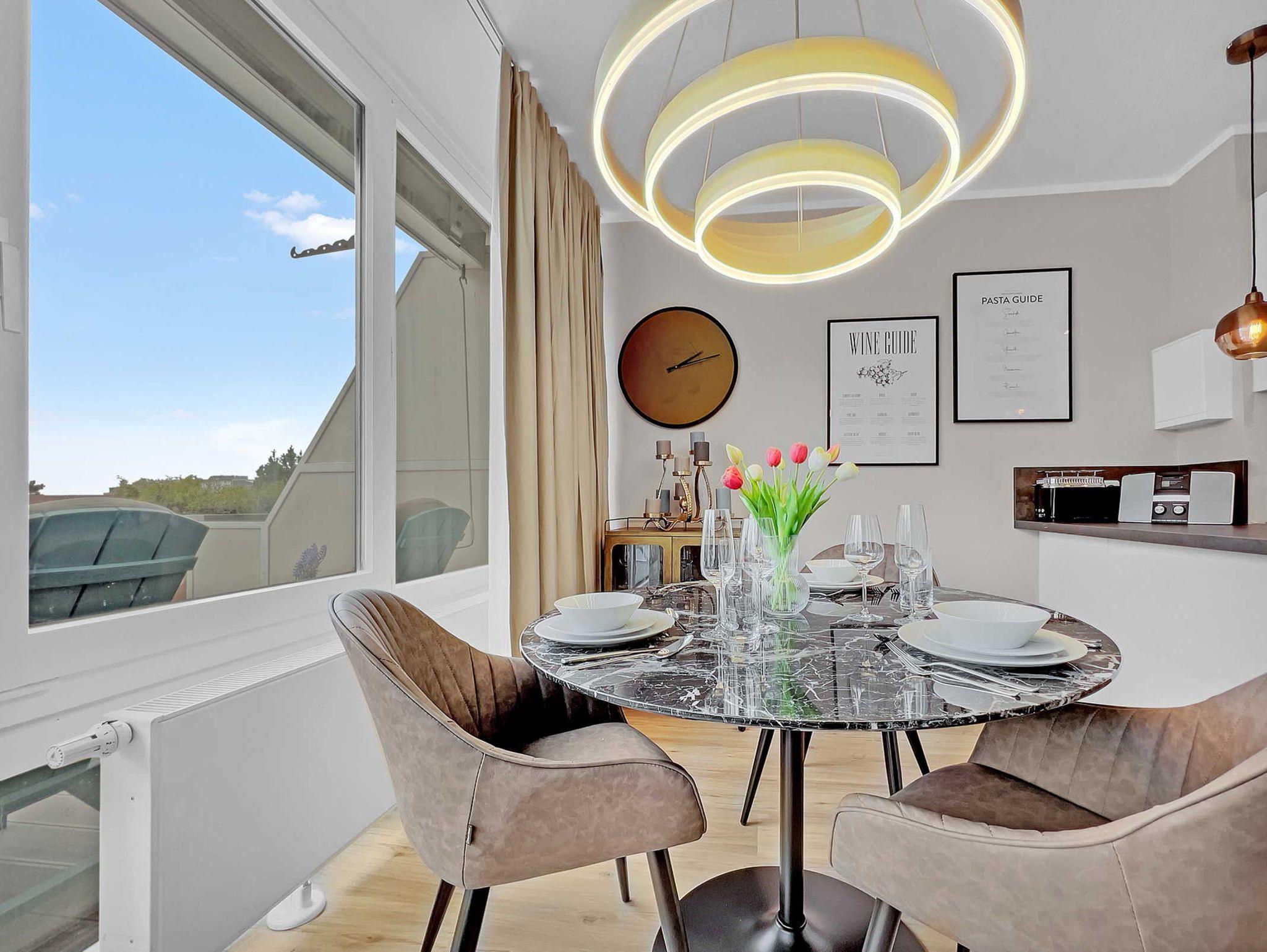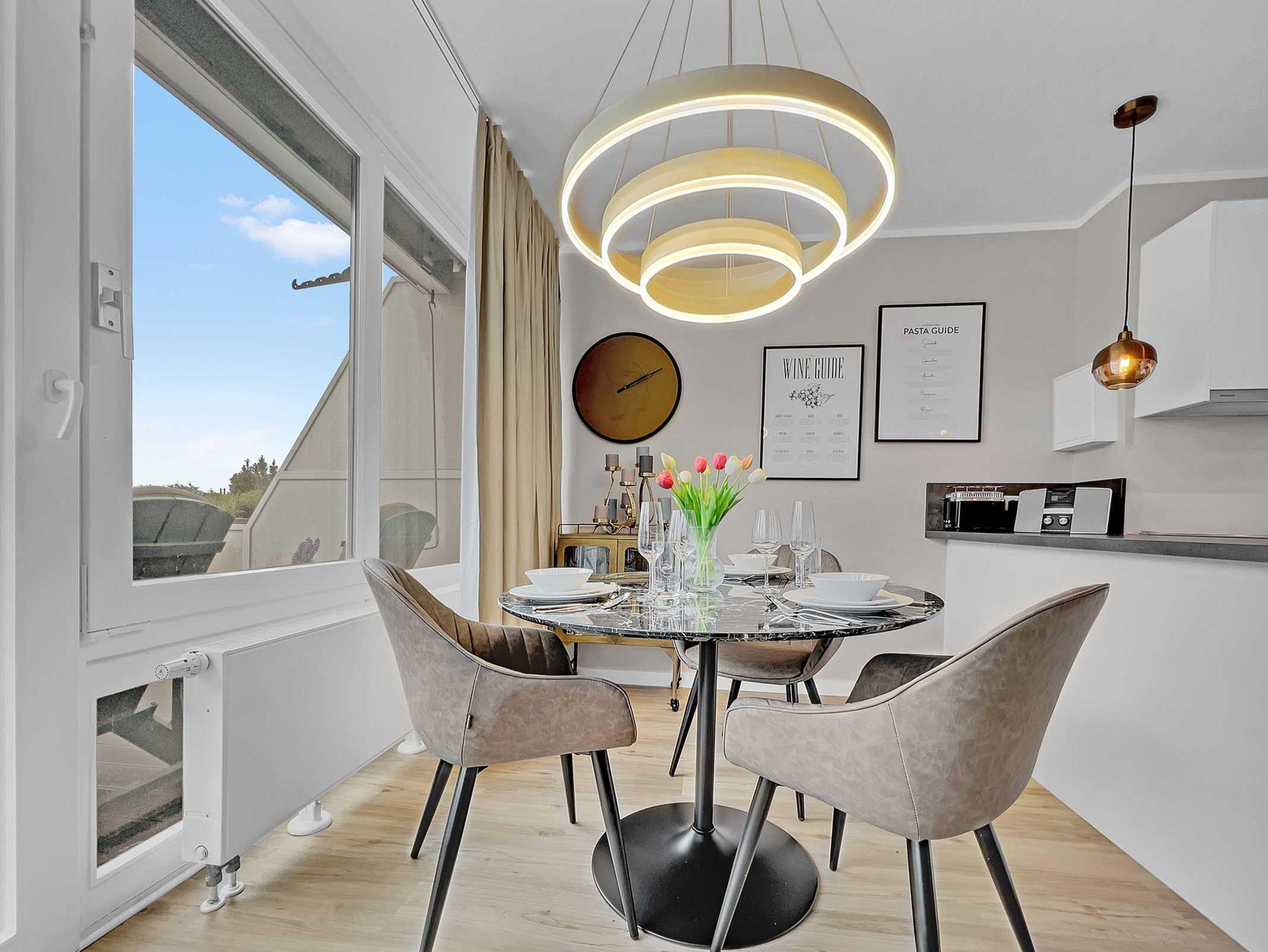 Die Wohnung Seaside liegt im Zentrum von Scharbeutz in direkter Strandlage, bester Lage an der Lübecker Bucht. Sie wurde im Frühjahr 2022 total renoviert. Eine neue, hochwertige Ausstattung in modernem Design sorgt hier für ein perfektes Ambiente. Zur Wohnung im 2. OG des exklusiven Hauses führt Sie ein Fahrstuhl. Sie erwartet ein großzügiges, helles Wohnzimmer mit einer großen Wohnlandschaft und einer Essecke. Die Fensterfront erschließt sich über die gesamte Breite der Wohnung (ca.6 m). Die moderne Sofagarnitur kann dank der Bettfunktion mit wenigen leichten Handgriffen zu einer Liegefläche von ca. 120 cm umgewandelt werden. Daneben bietet die Wohnung ein innenliegendes Schlafzimmer mit einem bequemen Doppelbett (Liegefläche ca. 180 cm) sowie einem zusätzlichen Smart-TV. Die offene Küche ist optimal, u.a. mit Geschirrspüler und Ceranfeld ausgestattet. Der große Flur hat einen Einbauschrank, zusätzlich steht ein separater Abstellraum zur Verfügung. Das Badezimmer ist mit einer Regendusche sowie einer Waschmaschine ausgestattet. Auf dem nach Osten ausgerichteten Balkon mit ca. 15 m² genießen Sie den morgendlichen Sonnenaufgang und Blick über die Lübecker Bucht oder die Nachmittags- und Abendsonne. Eine Markise sorgt für Beschattung. Kostenloses WLAN und ein Stellplatz auf dem abgeschlossenen Grundstück steht für Ihr Auto bereit. Fahrräder können nebenan bei Tobis Fahrradverleih geliehen oder eigene Fahrräder mitgebracht und im Fahrradraum untergebracht werden. Haustiere sind nicht gestattet.