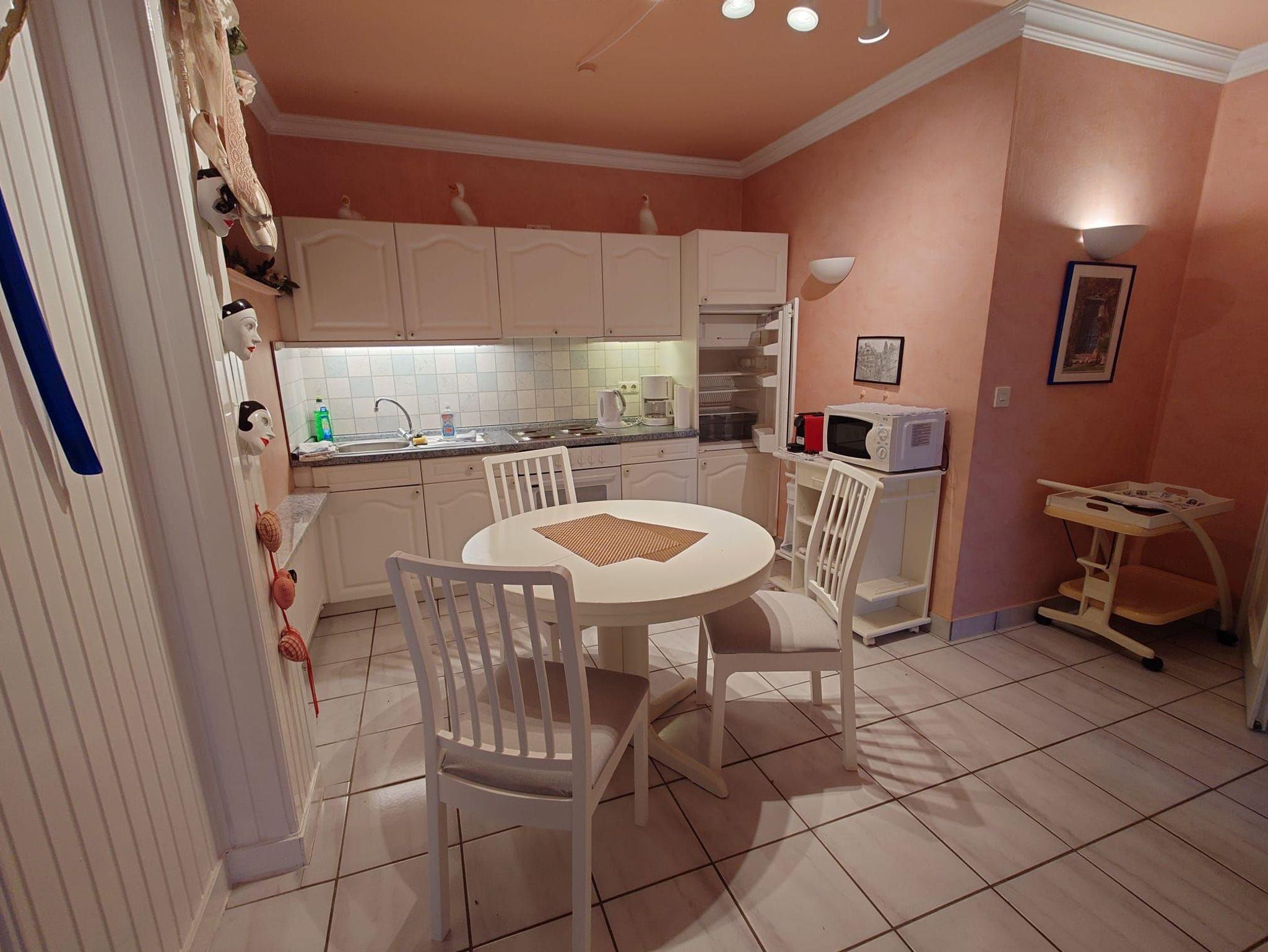 Terrassenwohnung mit Garten: 2 Zimmer, ca. 48 m², inkl. Essdiele mit Küchenzeile. Separate Dusche und WC mit stationärem Schminkspiegel und Fön. Überdachte Freiterrasse vom stilvoll eingerichtetem Wohnzimmer begehbar. Schlafzimmer mit 2 Einzelbetten (Boxspringbetten, Einstiegshöhe: 60 cm) Leselampen und 2 Kleiderschränke. Ganzkörperspiegel und Sitzgruppe. Holzofen-Gartengrill, Mikrowelle.