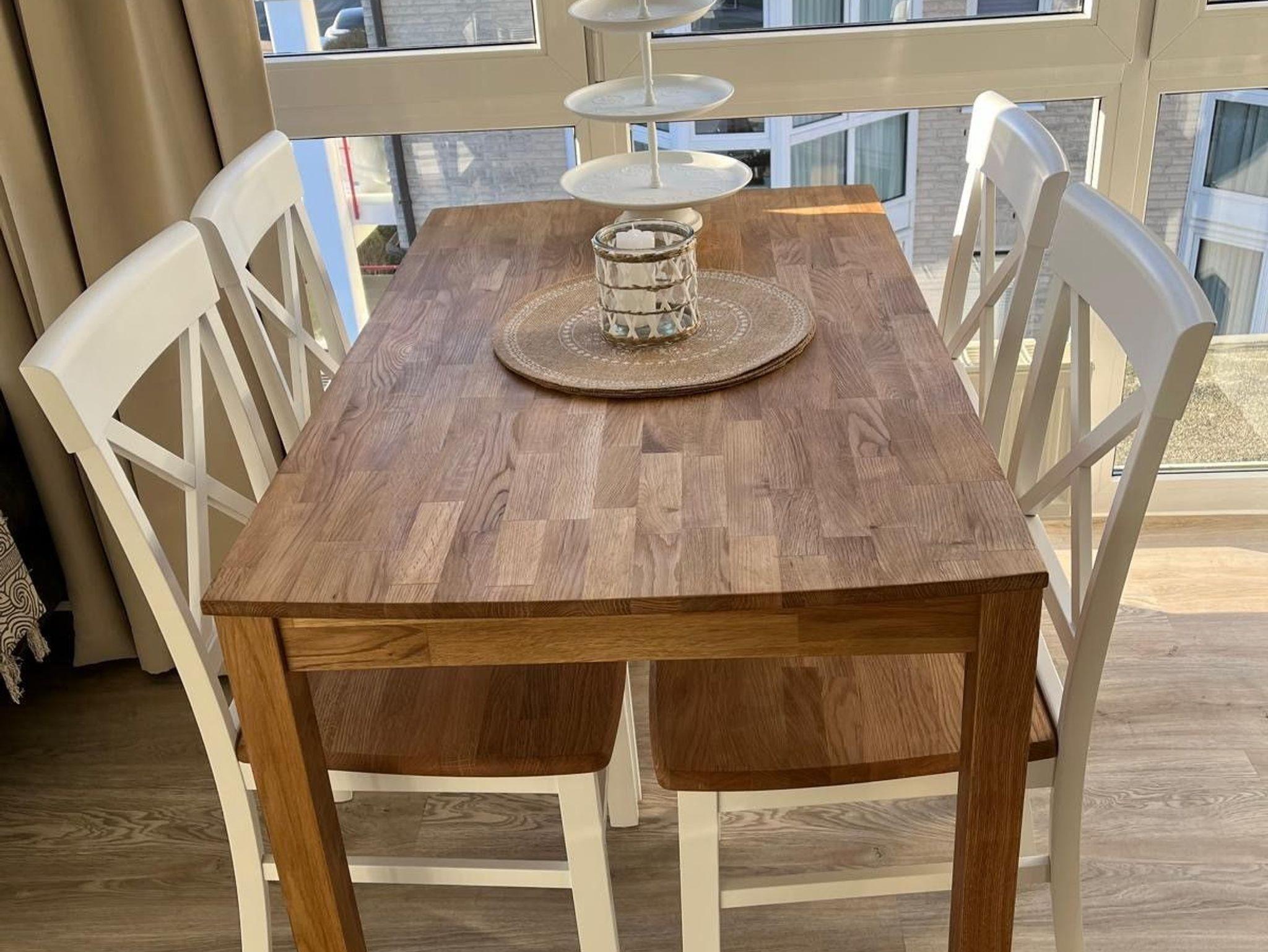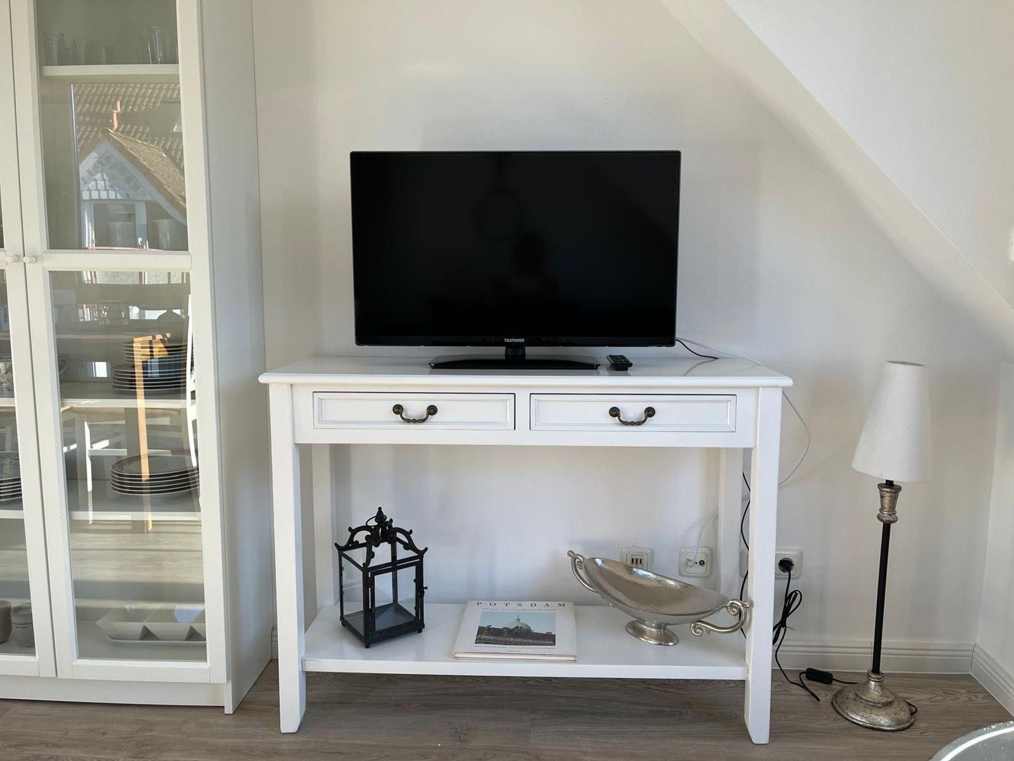 Charmante sonnige 2 Zimmer Wohnung, 36 Quadratmeter, im Landhausstil mit Balkon und Meerblick! Erholung pur! Das Badezimmer ist mit Dusche und WC ausgestattet und hat ein Fenster. Das gemütliche Schlafzimmer verfügt über 2 Einzelbetten 90 x 200 cm, einen Nachttisch und Kleiderschrank. Die offene Einbauküche verfügt über Markengeräte wie Kühlschrank, Backofen, Herd, Geschirrspülmaschine, Umluftabzugshaube, Kaffeemaschine, Toaster sowie Wasserkocher.