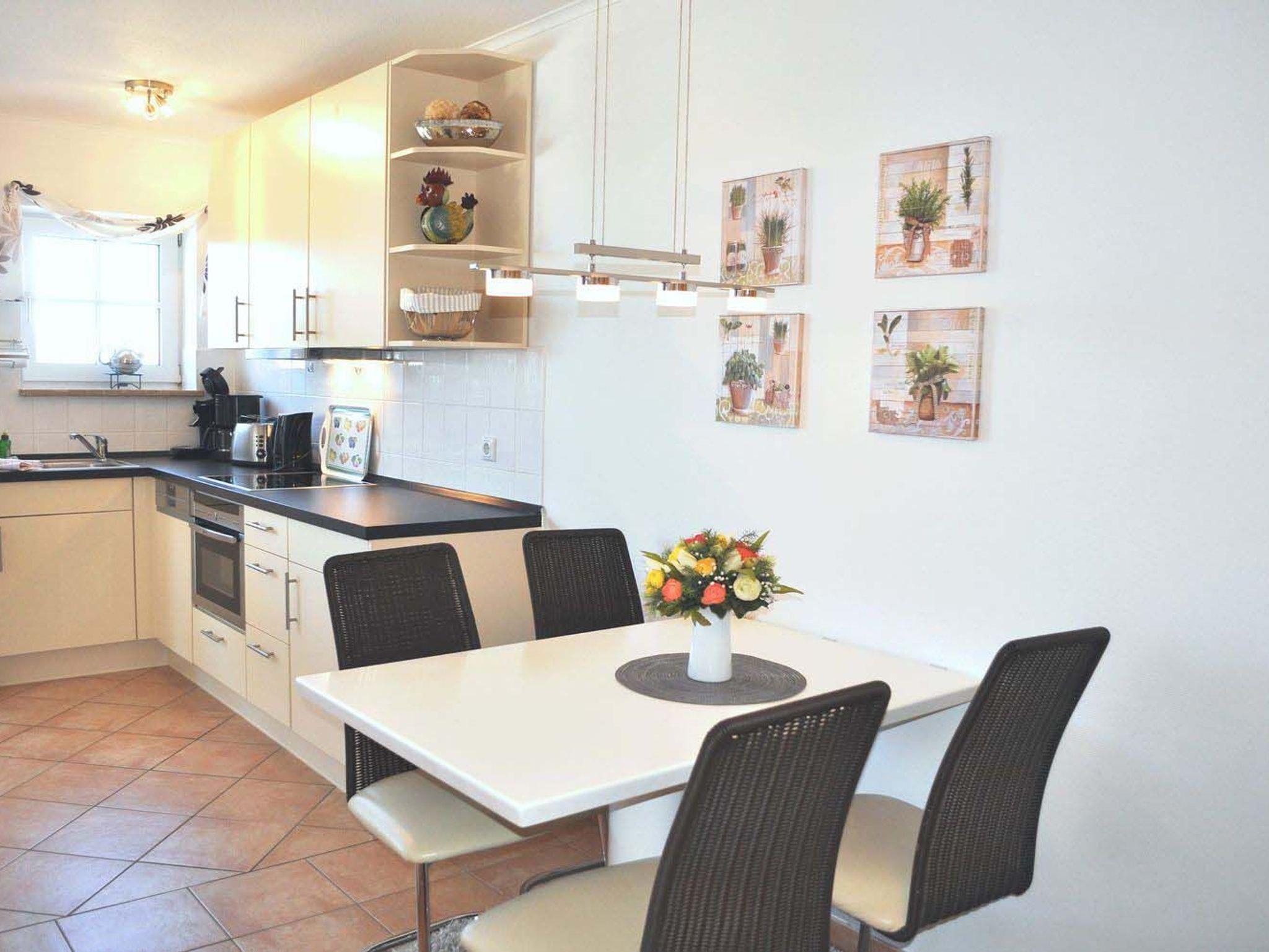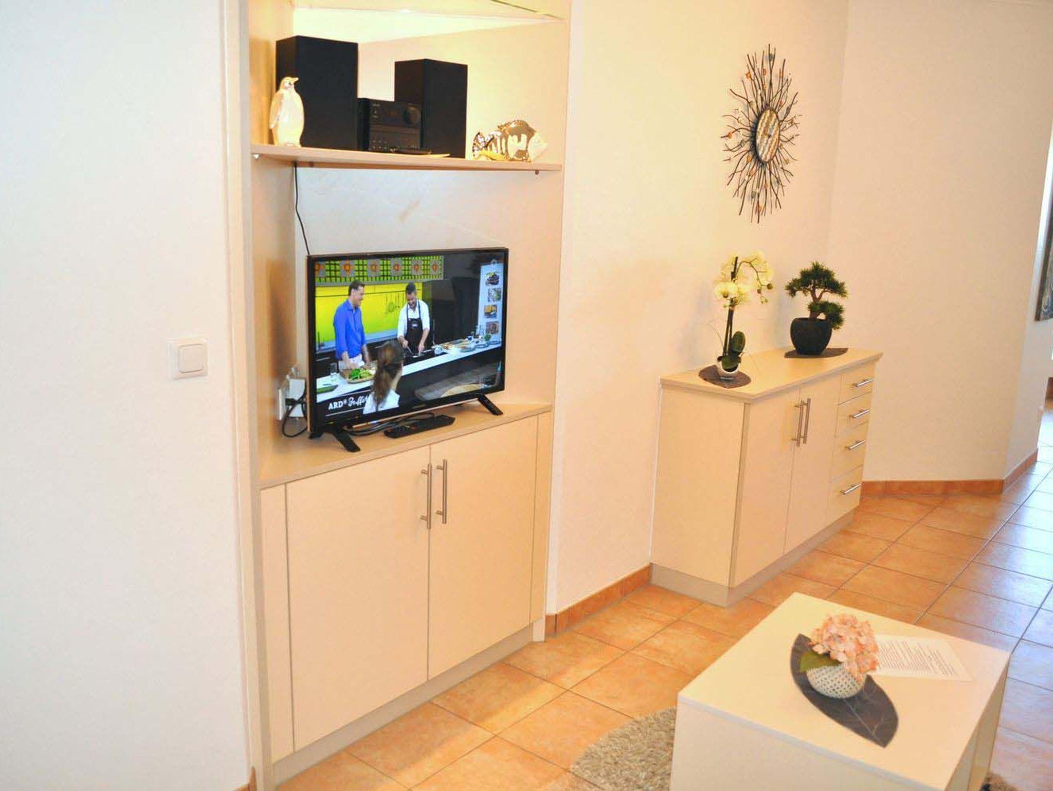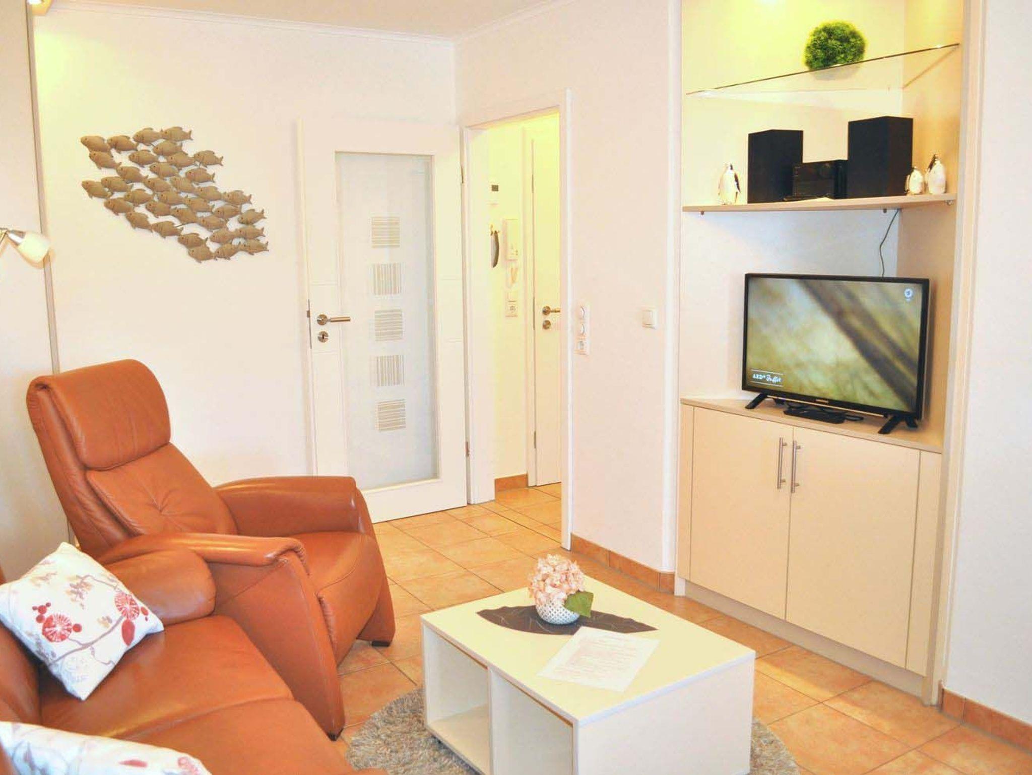 Wohnzimmer: 2 Relaxsessel, 4 Plattenherd mit Ceranfeld und Backofen, 4 Stühle, Anrichte, aus dem Küchenfenster Blick aus Meer, Bügelbrett, Bügeleisen, Couch, Couchtisch, Dunstabzugshaube, Einbaukleiderschrank, Einbauküche, Einbauregal, elektrische Zitronenpresse, Esstisch, Flachbildschirm, Fliegenschutzgitter nur an den Fenstern, Handmixer, Kabel-TV, Kaffeemaschine, Kaffeepadmaschine, Kühlschrank, Senseo Kaffeemaschine, Spülmaschine, Staubsauger, Stereoanlage mit CD-Player, Toaster, Wasserkocher