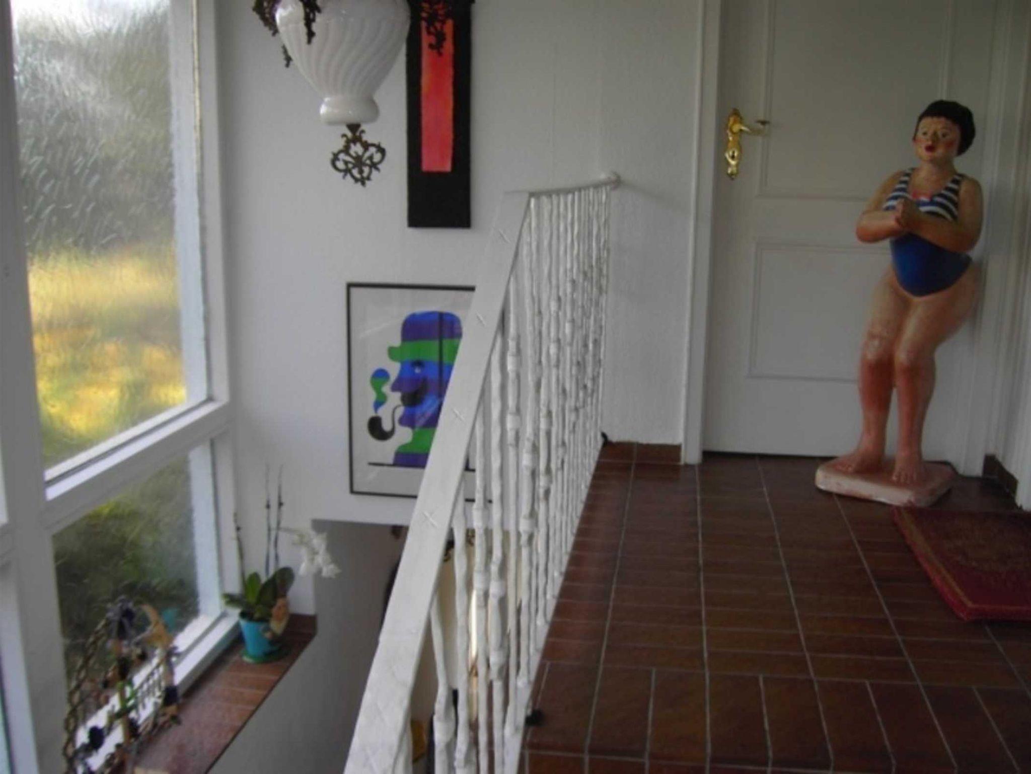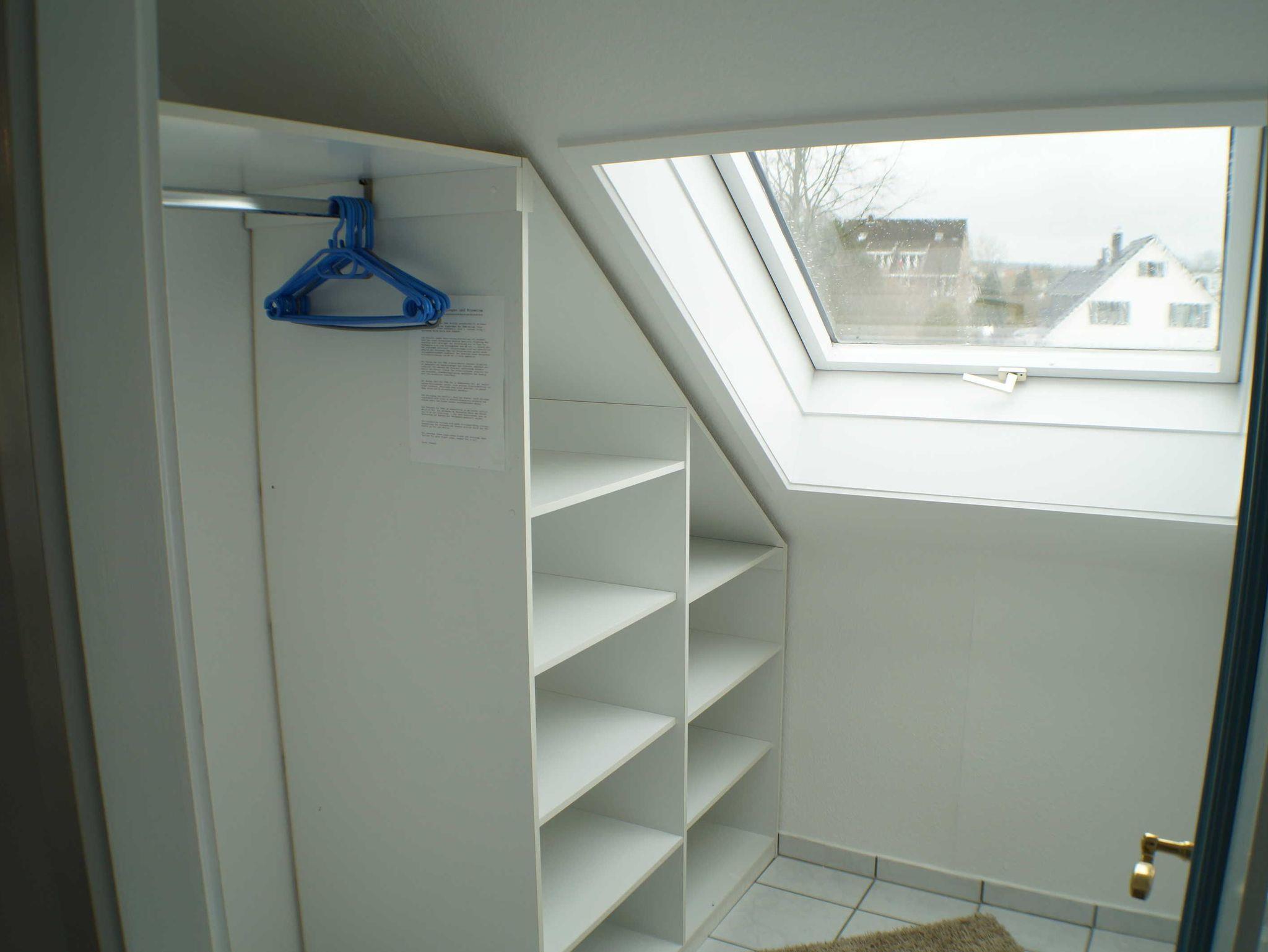 1. Obergeschoss: 1-Raum-Singlewohnung mit ca. 30 m², mit großem Studiofenster, incl. Küchenzeile und Ess-Bar, franz. Bett (2,00 x 1,40 m, Einstiegshöhe: 60cm). Separate Dusche mit DK-Fenster, WC, stationärer Schminkspiegel, Fön. Ein begehbarer Kleiderschrank sowie Fensterlüftung. Gartenbenutzung mit Sitzplatz, Tisch und Stühlen.