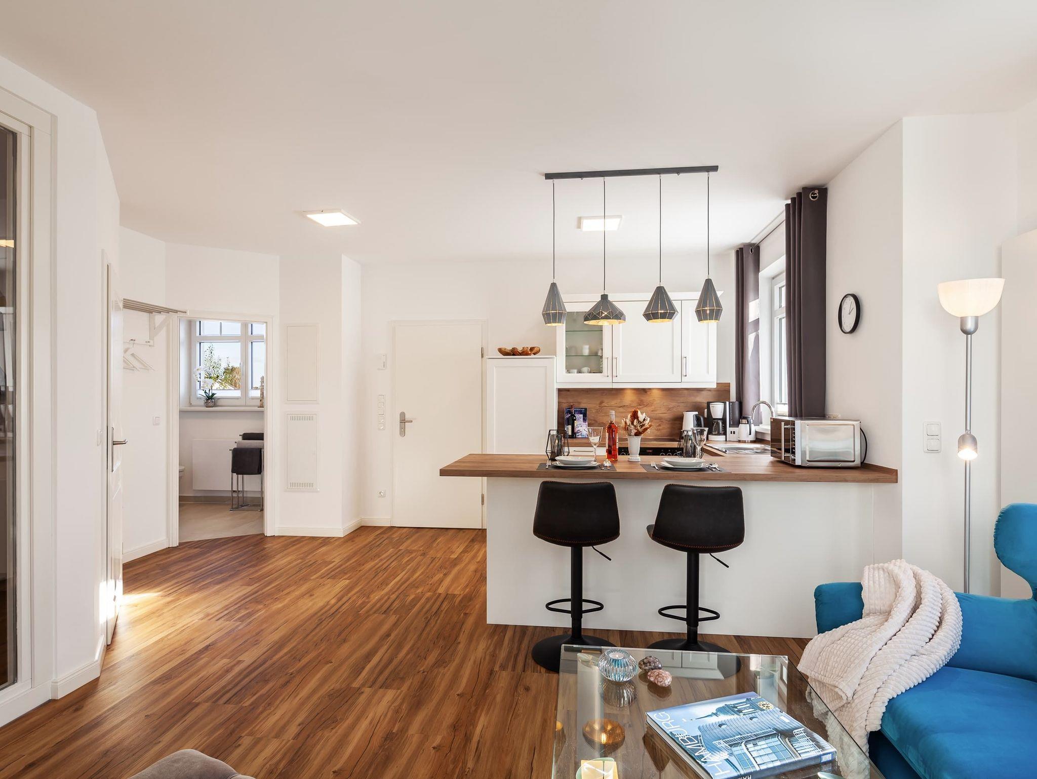 Genießen Sie den Luxus und die Annehmlichkeiten unserer komplett neu gebauten Ferienwohnungen, die mit viel Liebe zum Detail gestaltet wurden. Alle 4-Sterne-Klassifizierten Wohnungen bieten Ihnen gehobenen Komfort und eine erstklassige Ausstattung für einen unvergesslichen Aufenthalt (eigener Parkplatz direkt an der Wohnung, Bettwäsche, Handtücher, Endreinigung und Starterpaket Verbrauchsmaterialien inklusive).