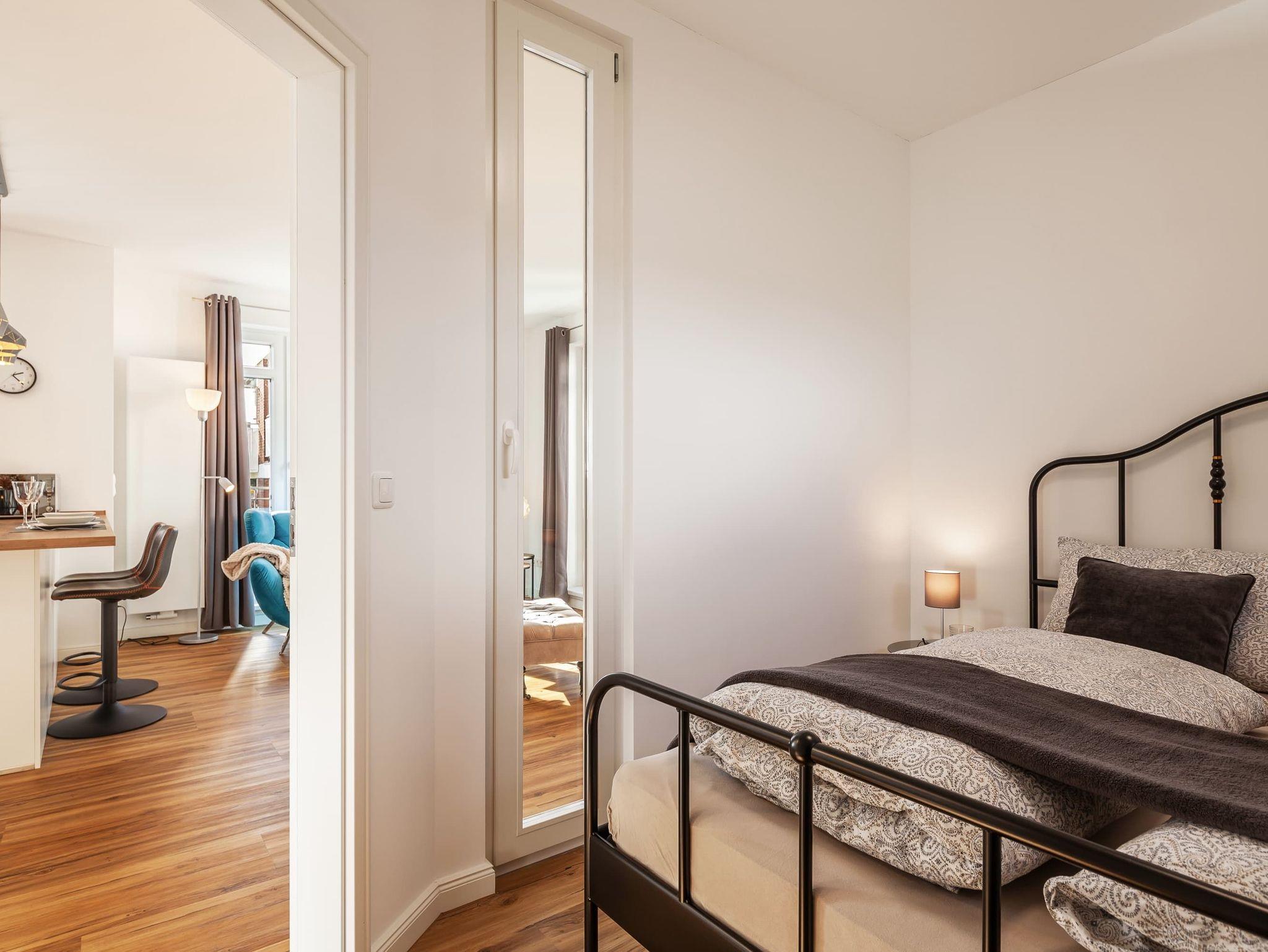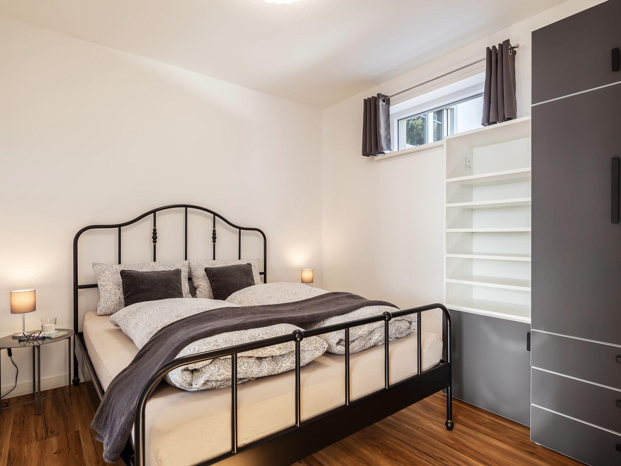 Unsere Wohnung ist darauf ausgerichtet, Ihnen erholsamen Schlaf zu ermöglichen. Das Schlafzimmer ist mit hochwertigen, schalldichten Fenstern ausgestattet und bietet ausreichend Verdunklungsmöglichkeiten. Die natürliche Bauweise unterstützt zudem ein angenehmes Raumklima, ähnlich einer Klimaanlage. Ein zusätzliches Fenster Element zum Wohnbereich verleiht dem Schlafzimmer einen besonderen Charme und lässt sich je nach Wunsch öffnen.