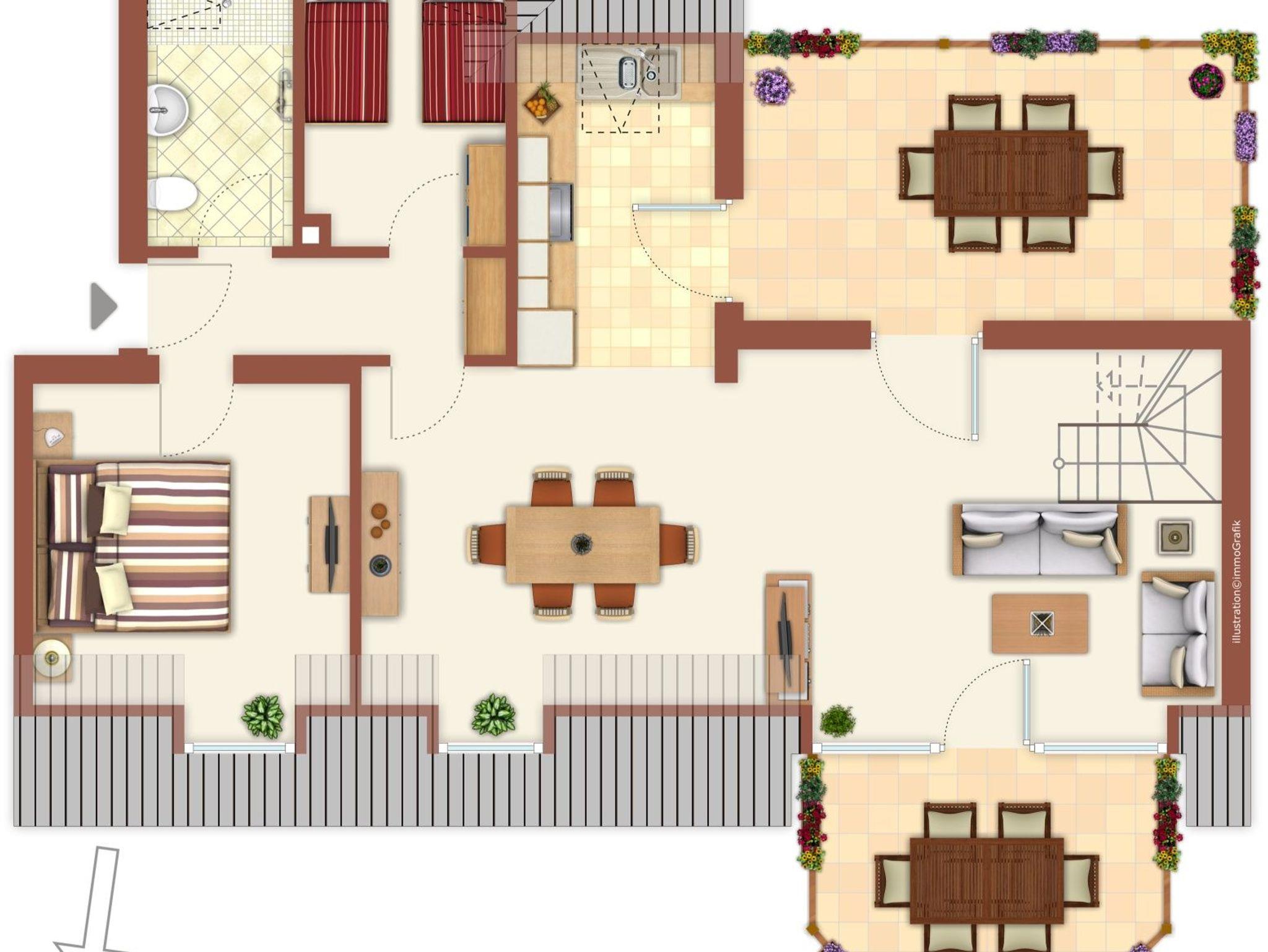 Unsere 4-Zimmer-Ferienwohnung Ostseeblick in Scharbeutz bietet Familien mit max. 6 Erwachsenen und 1 Kleinkind (0-3 Jahre) viel Komfort und Platz. Die 85m² Ferienwohnung im 2. und 3. OG verfügt über 1 großes Wohnzimmer mit Essbereich mit Blick auf die Ostsee, 3 Schlafzimmer, 2 Duschbäder, 1 Küche, 2 Balkone Meerblick/Abendsonne, WLAN usw. Ein Parkplatz sowie eine großzügige Fahrradgarage befindet sich direkt am Haus. Zusätzlich steht Ihnen eine Waschmaschine und ein Wäschetrockner im Keller im Hauswirtschaftsraum zur Verfügung. Vom ersten Balkon und vom Wohnzimmer blicken Sie über die Fußgängerzone direkt zum Strand bzw. zur Seebrücke von Scharbeutz. Vom zweiten Balkon blicken Sie in den sonnigen Westen in Richtung Kurpark und können von dort in aller Ruhe die Abendsonne genießen. Sobald Sie das Haus verlassen befinden Sie sich mitten in der Fußgängerzone vom Scharbeutzer Strandzentrum. Hier finden Sie Restaurants, Cafés, Geschäfte, Spielplätze, den Kurpark und vieles mehr. Scharbeutz bietet alles für einen perfekten Urlaub. Der feine Sandstrand lädt zum Entspannen und Sonnenbaden ein, während die frische Meeresbriese für Erholung sorgt. Zahlreiche Rad-und Wanderwege bieten die Möglichkeit, die Umgebung zu erkunden. Ob Wassersport, Shopping oder einfach die Seele baumeln lassen ? Scharbeutz ist der ideale Ort, um dem Alltag zu entfliehen und unvergessliche Momente zu genießen.