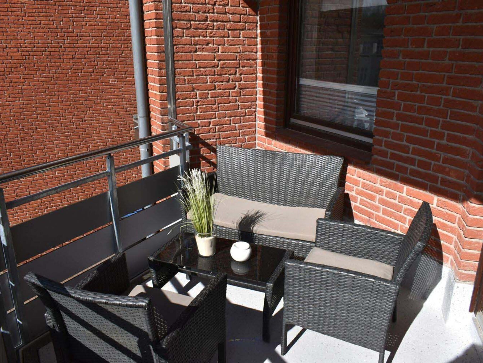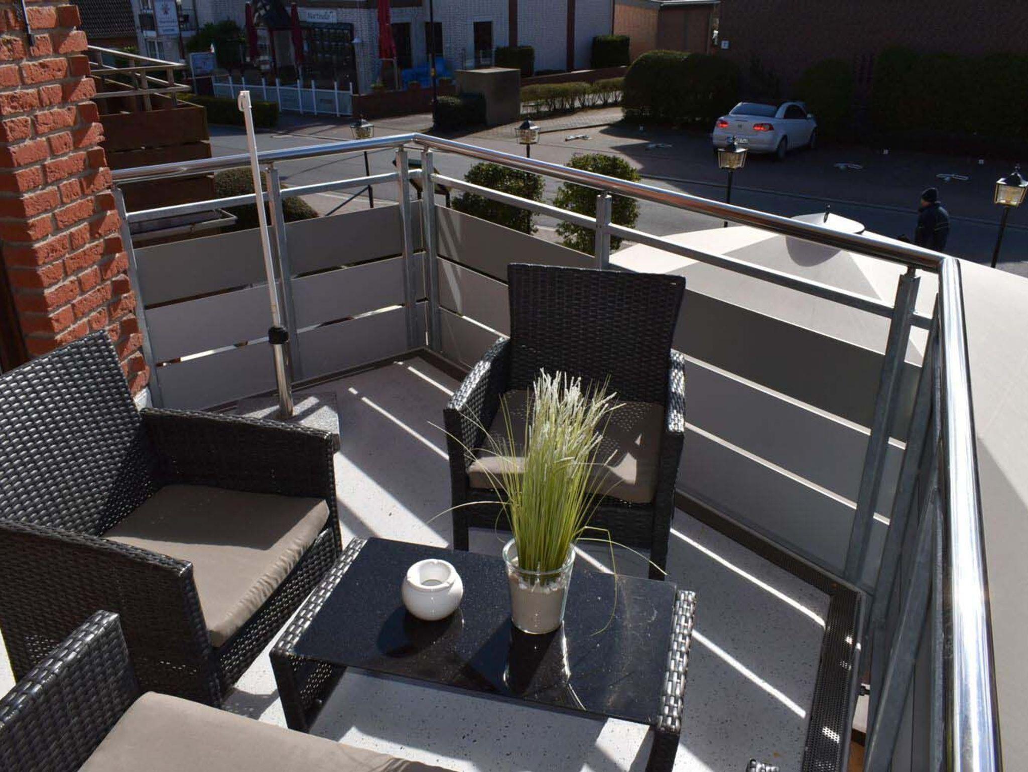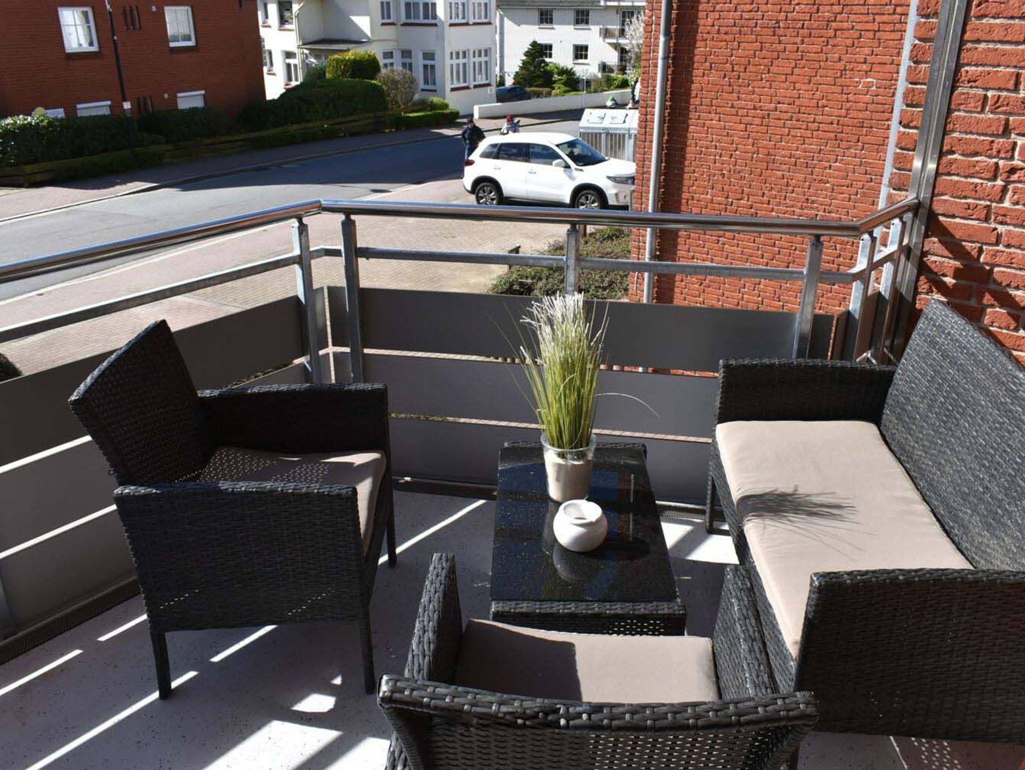 Balkon: 2 Stühle, Sitzbank, Sonnenschirm, Süd- Ostlage, Tisch, überdacht