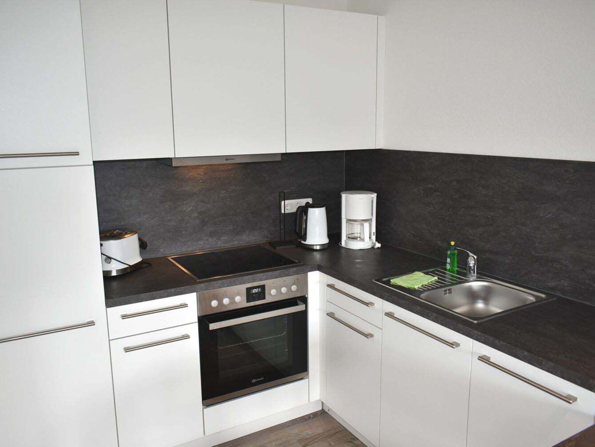 Wohnzimmer: 2 Sessel, 2 Verdunklungsplissees, 4 Plattenherd mit Backofen und Ceranfeld, 4 Stühle, Beistelltisch, Couchtisch, Einbauküche, Esstisch, Flachbildschirm, Geschirr, Kabel-TV, Kaffeemaschine, Kochtöpfe, Kofferradio mit CD-Player, Kühlschrank mit 3* Gefrierfach, Mikrowelle, Schlafcouch 2,00 x 1,60 m, Spülmaschine, Stehlampe, Tischlampe, Toaster, TV-Anrichte, Wasserkocher