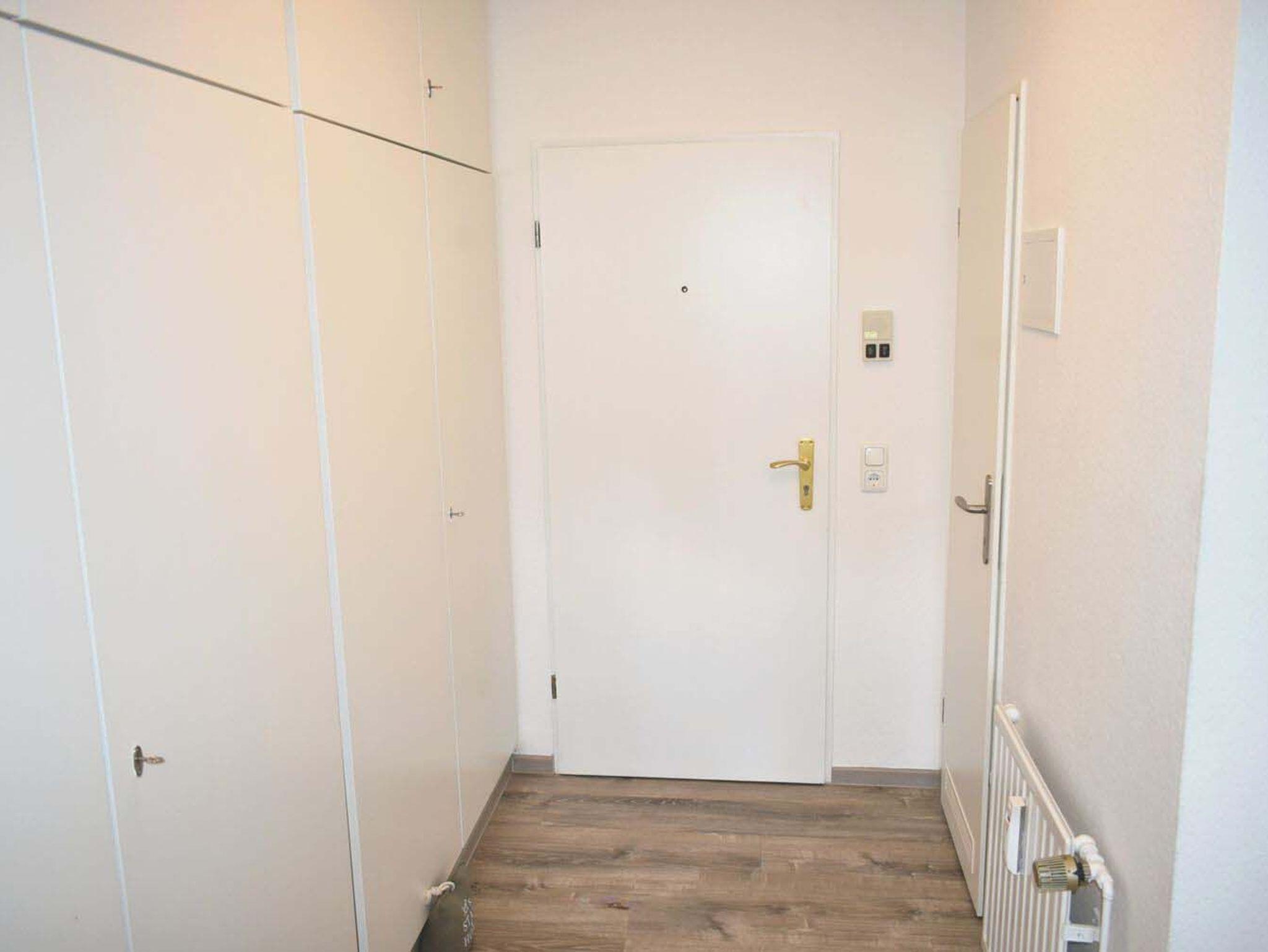 Flur: Bügeleisen, Einbaukleiderschrank, Spiegel, Staubsauger, Wäscheständer