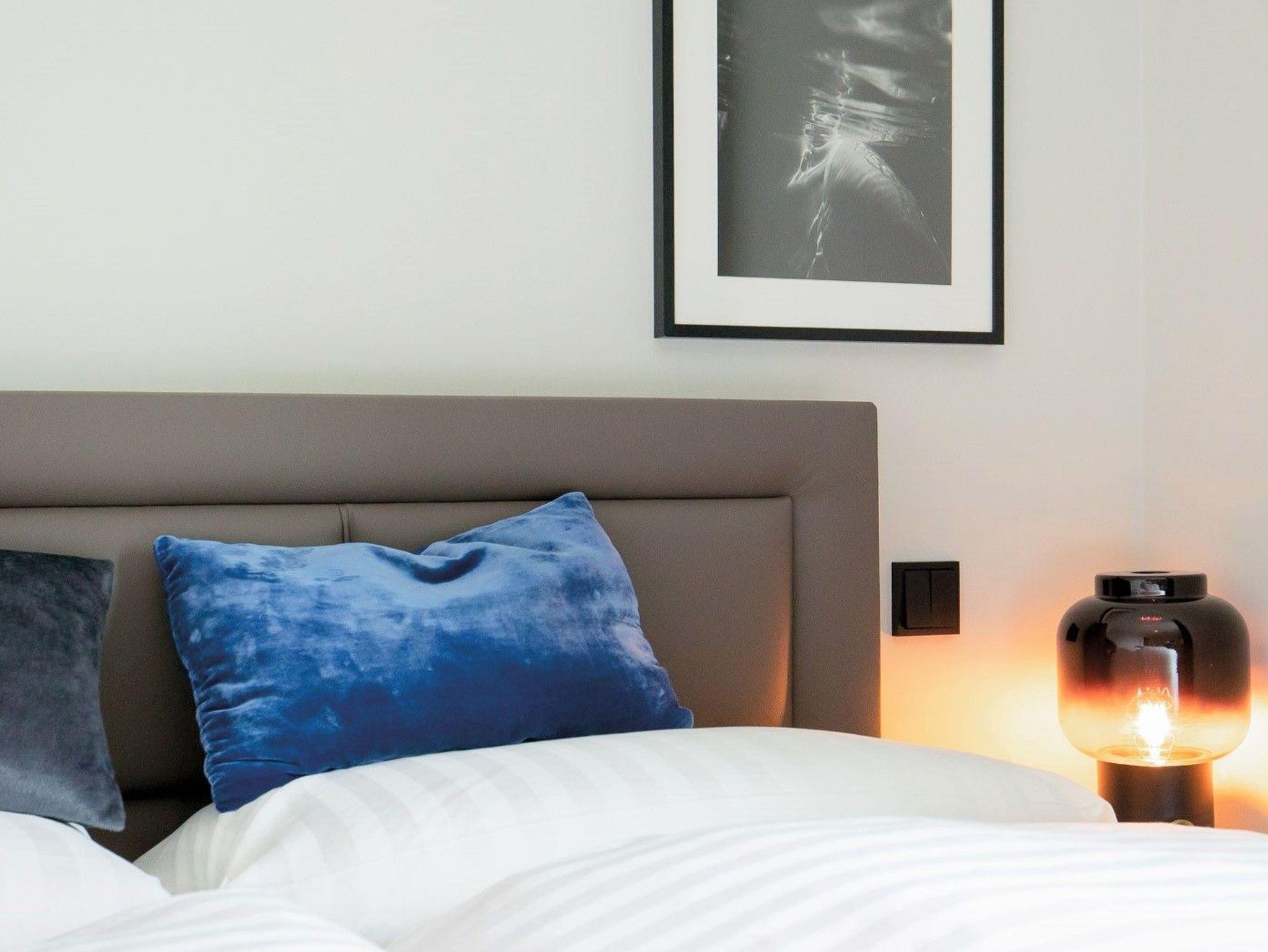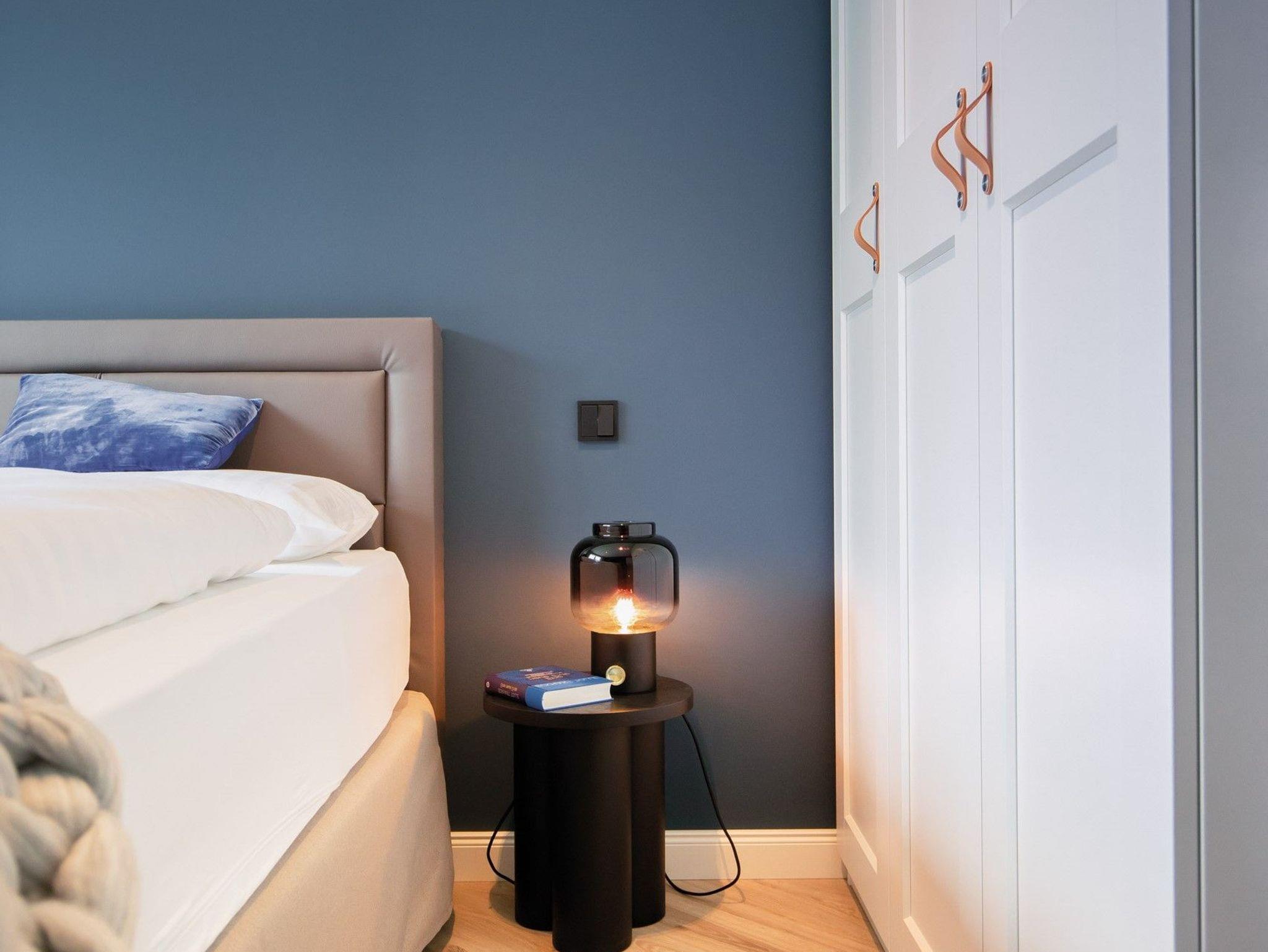 Mit dem Aufzug oder über die Treppe sind Sie schnell im ersten Obergeschoss, im Ferienappartement 4. Die Räume sind perfekt, um sich von 0 auf 100 in Urlaubsstimmung zu versetzen. Ob Sie mit guten Freunden oder mit größeren Kindern an die Ostsee reisen wollen: Das Makani 4 erwartet Sie mit modernem Wohndesign. Vom Entree aus betreten Sie das erste Schlafzimmer. Es ist ausgestattet mit einem großzügigen Bett und einem herrlichen Blick durch das große Fenster. Ein weiterer Schlafraum befindet sich auf der anderen Seite des Bades, sonnendurchflutet dank des großen Südfensters.