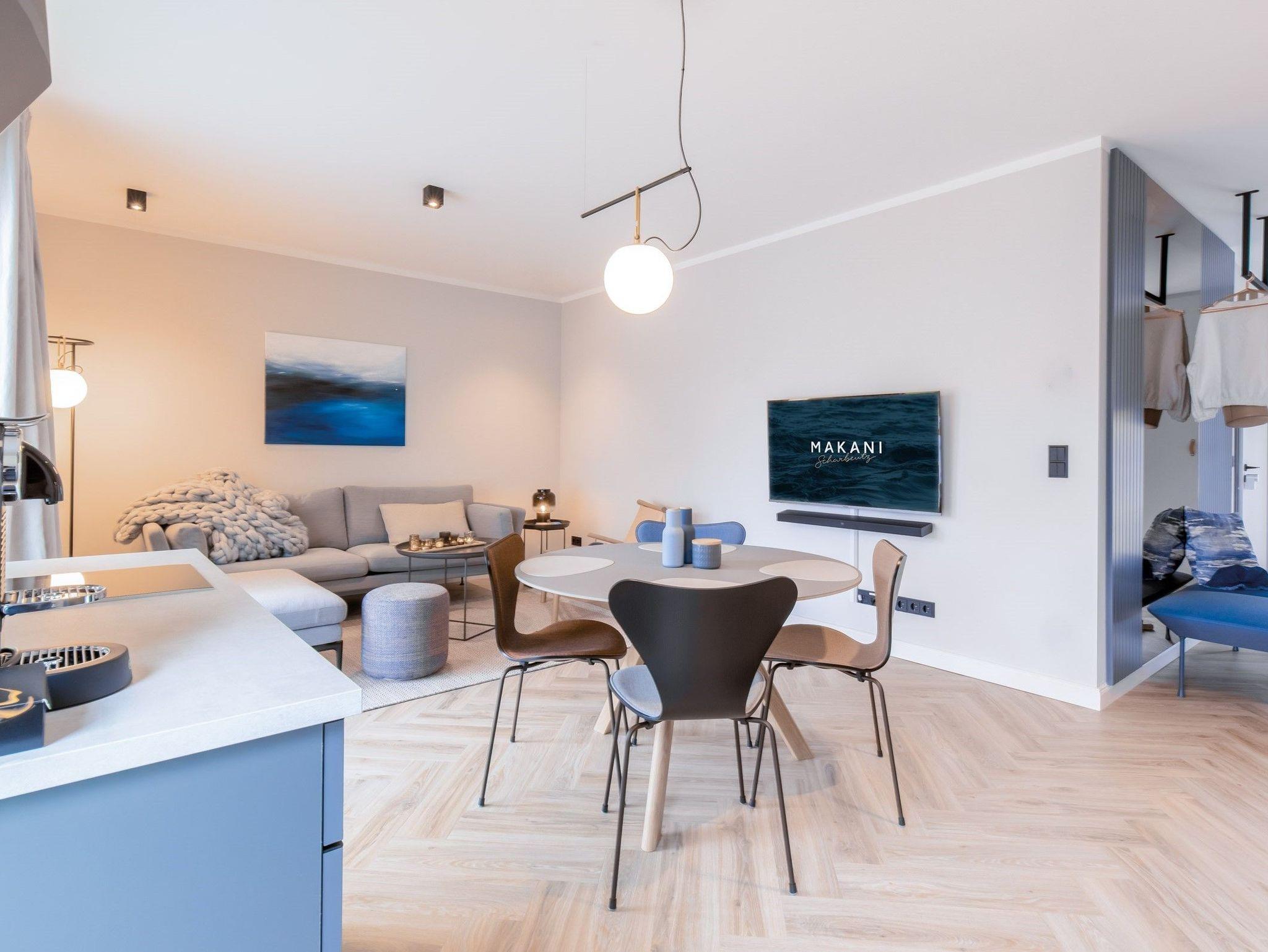 Im Makani 4 verbringen vier Freunde oder eine Familie den perfekten Ostseeurlaub. Hier gibt es viel Komfort, einen hohen Designstandard und Sie blicken beim Duschen direkt auf die Ostsee. Zwei separate Schlafzimmer, ein großzügiger Wohn-Essbereich und ein Südbalkon runden das Urlaubsgefühl ab.