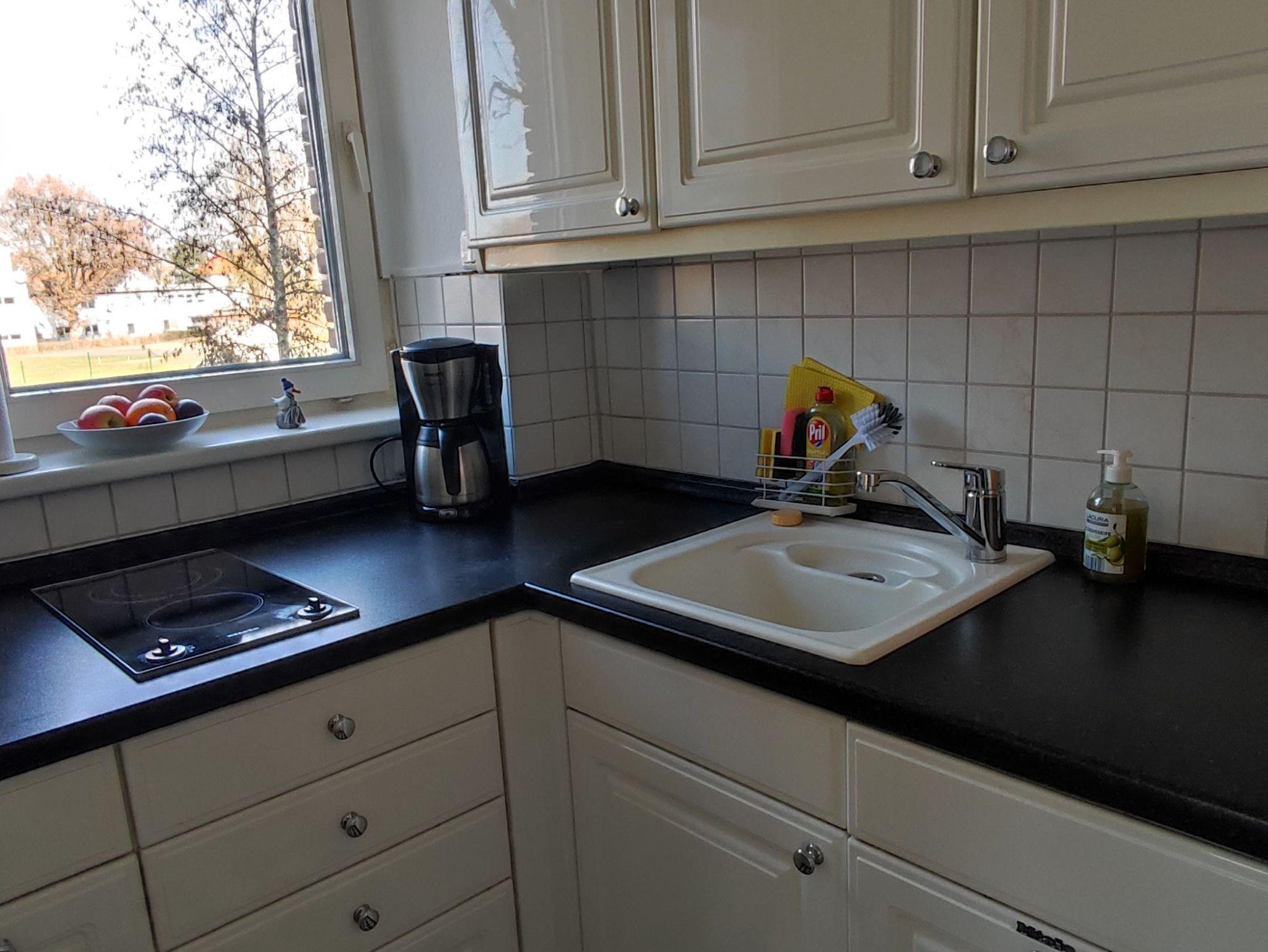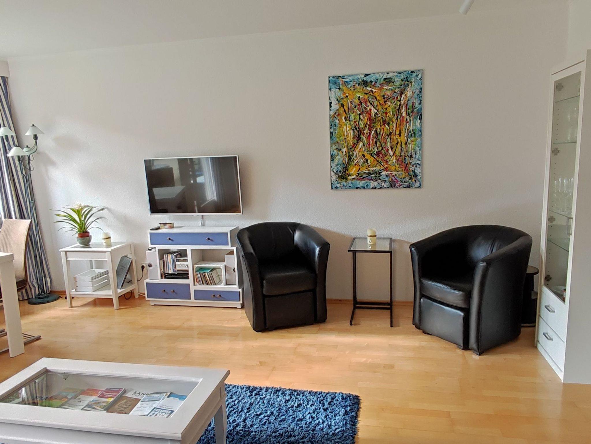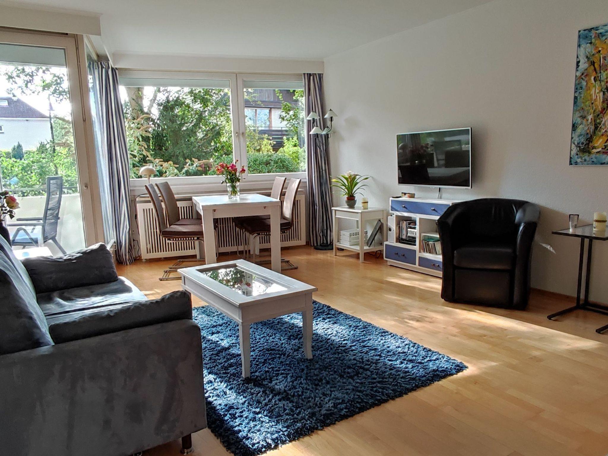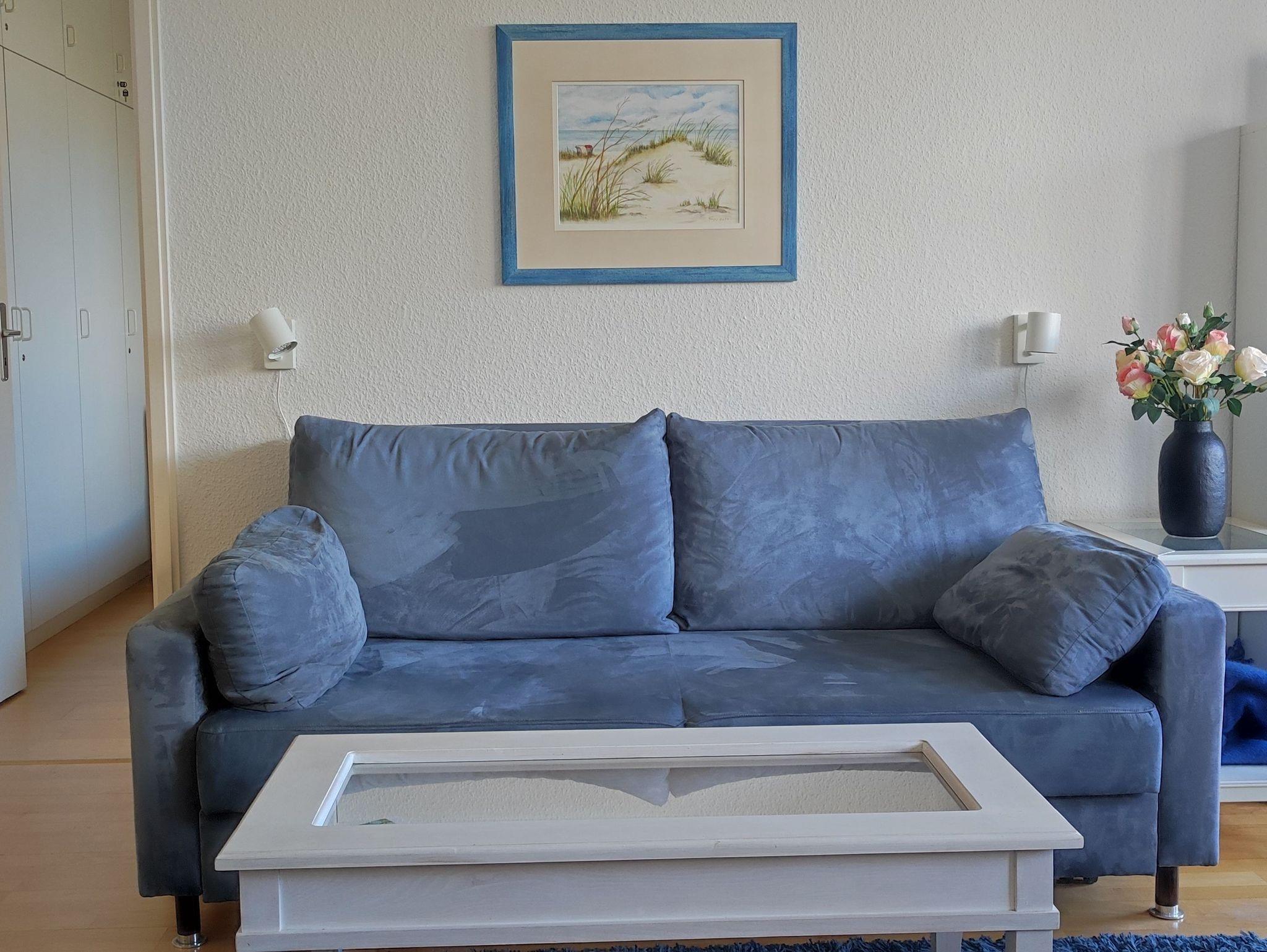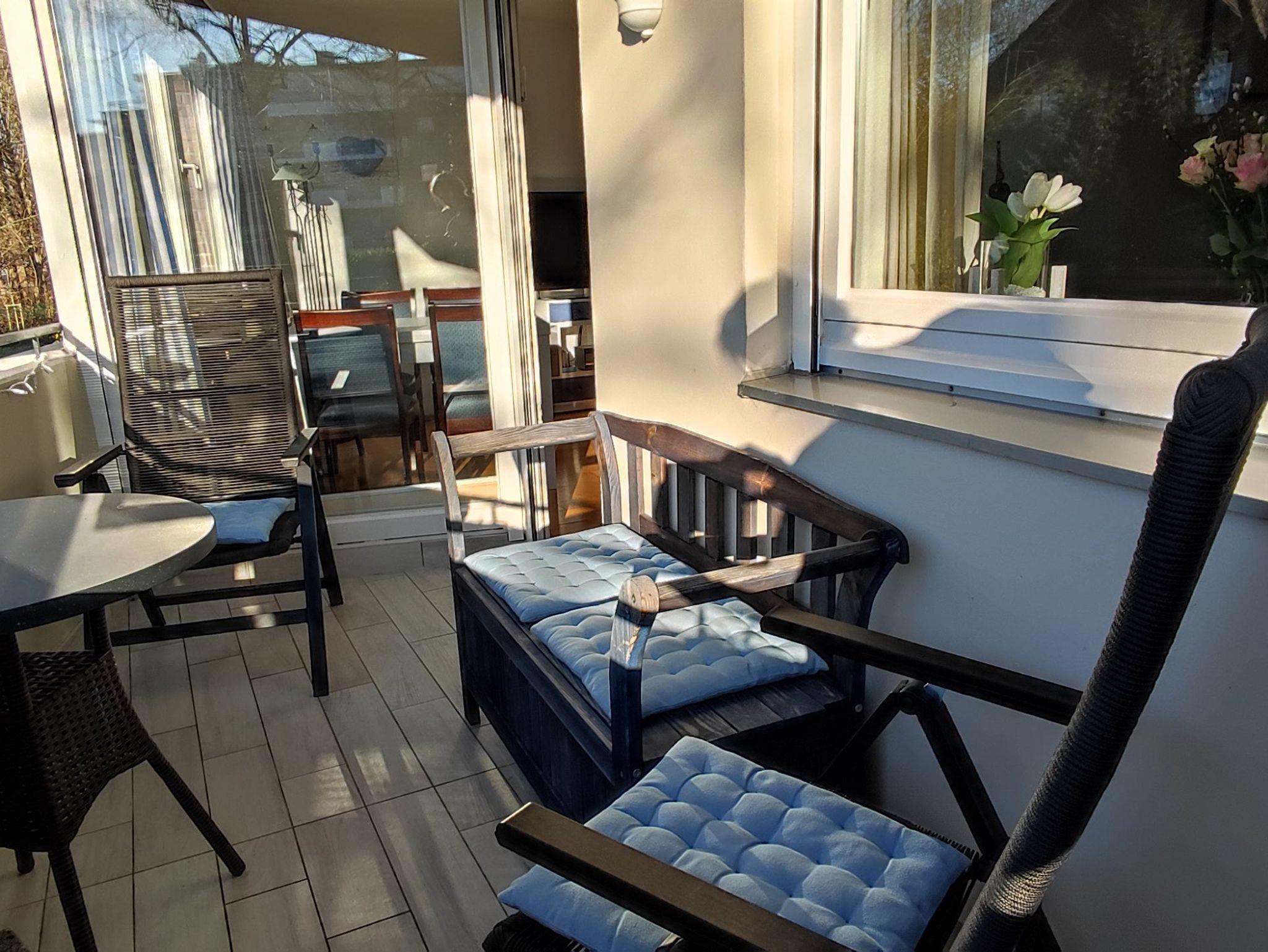 Unsere lichtdurchflutete 2 Zi-Wohnung liegt im EG und ist ohne Stufen zu erreichen. Der Wohnraum ist mit einem gemütlichen Schlafsofa, einem hellen Essbereich und einer Leseecke ausgestattet. Auf dem Balkon mit West-Ausrichtung, kann man bis zum Abend die Sonne genießen. Das Schlafzimmer mit einem Doppelbett 2 x 80 x 200cm und einem kleinen Schreibtisch bietet die Möglichkeit sich zurückzuziehen. In der Küche findet sich alles was für die Zubereitung einfacher Speisen benötigt wird.