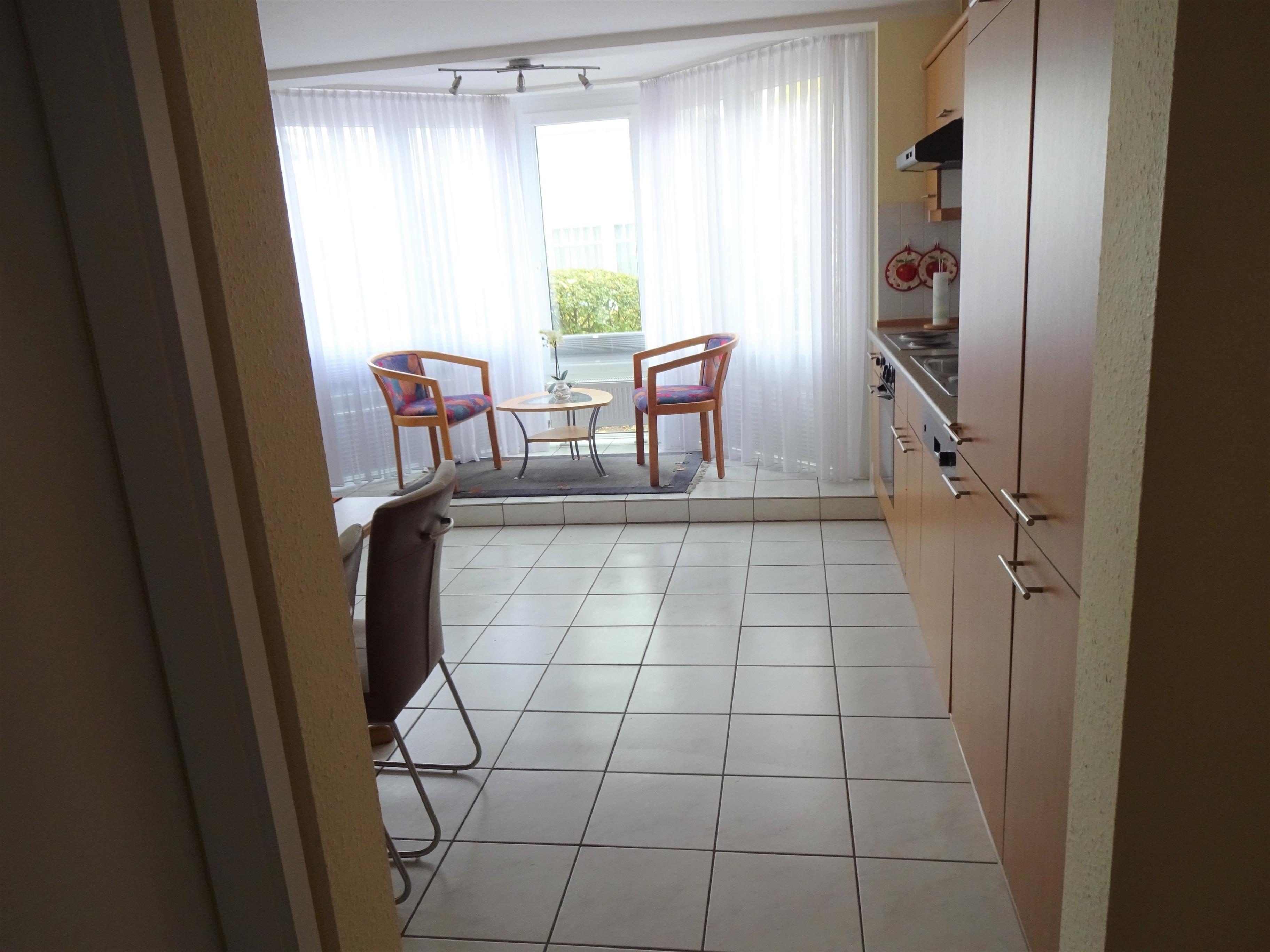 Ausstattung der Wohnung, 2 Zimmer, Kabel-TV, WLAN, Stereoanlage, Duschbad, volleingerichtete Küchenzeile mit Geschirrspüler, 4-Plattenherd mit Backofen, Kühlschrank mit Tiefkühlfach.