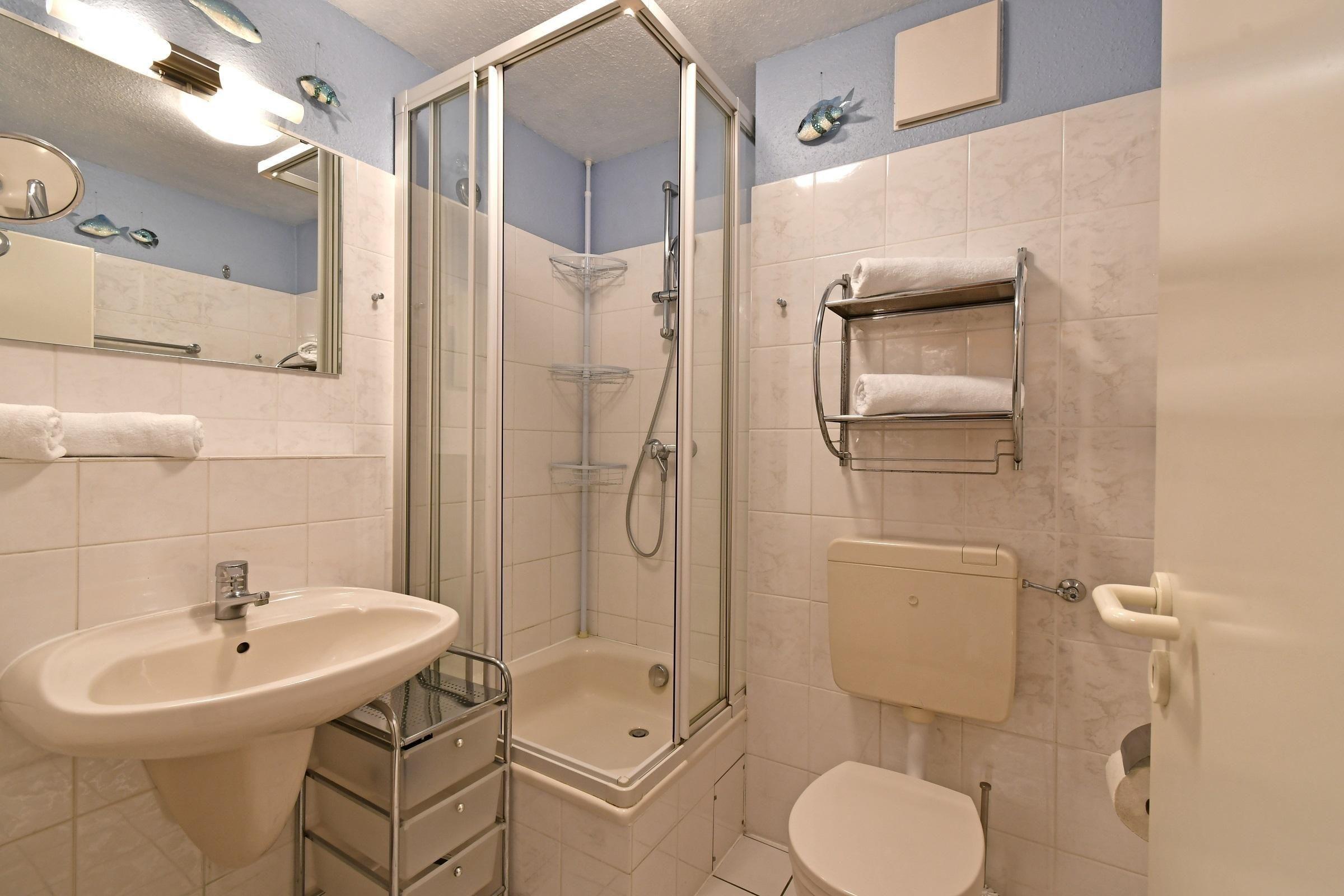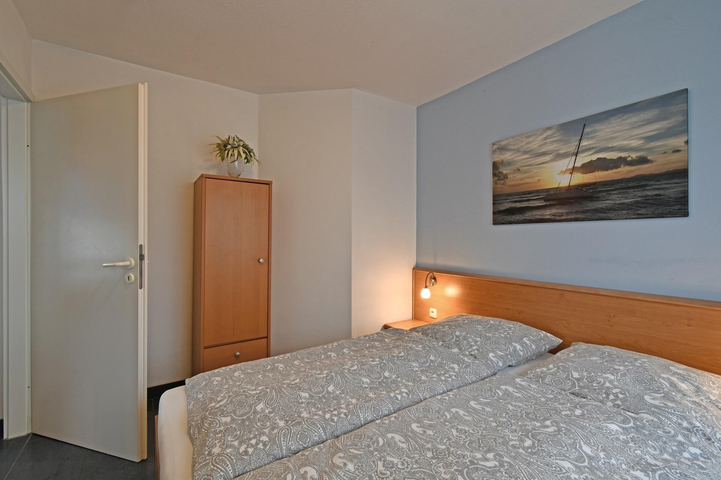 Die Wohnung 13 im strandnahen "WITTHUS", Hansastraße 8, befindet sich im 3. Obergeschoss und eignet sich ideal für zwei Personen. Der Fahrstuhl erleichtert den Zugang. Ausgestattet mit einer modernen Küchenzeile, inklusive Kaffeemaschine, bietet der offene Wohnbereich eine gemütliche Eck-Couch, einen Flach-TV und einen Esstisch mit vier Stühlen. Das Schlafzimmer verfügt über ein Doppelbett mit zwei getrennten Matratzen sowie ein Verdunklungs-Plissee. Gemeinschaftliche Einrichtungen wie die Waschmaschine und der Trockner befinden sich im Keller, sind kostenpflichtig und ohne Gewährleistung. Zudem steht ein Wäschetrockner auf dem Ost-Süd-Balkon zur Verfügung. Hunde sind nicht erlaubt, und das Rauchen ist lediglich auf dem Balkon gestattet. Kostenloses WLAN ist ebenfalls vorhanden, jedoch ohne technische Gewähr. Ein PKW-Stellplatz in der Tiefgarage ist inklusive, allerdings nur für Fahrzeuge bis zu 2.000 kg und bestimmten Abmessungen geeignet.