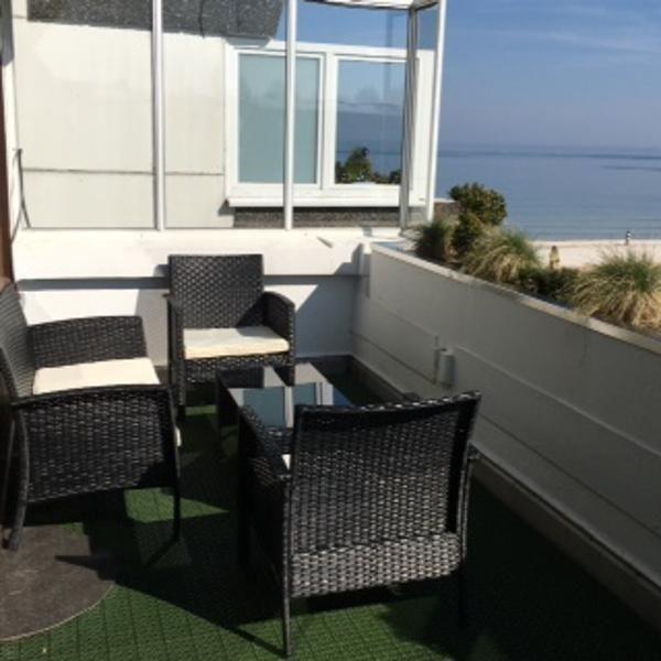 Die Unterkunft bietet für 2 Personen eine moderne Ausstattung, eine sonnige Terrasse mit Teilseeblick und liegt direkt am Strand – ideal für einen erholsamen Urlaub.