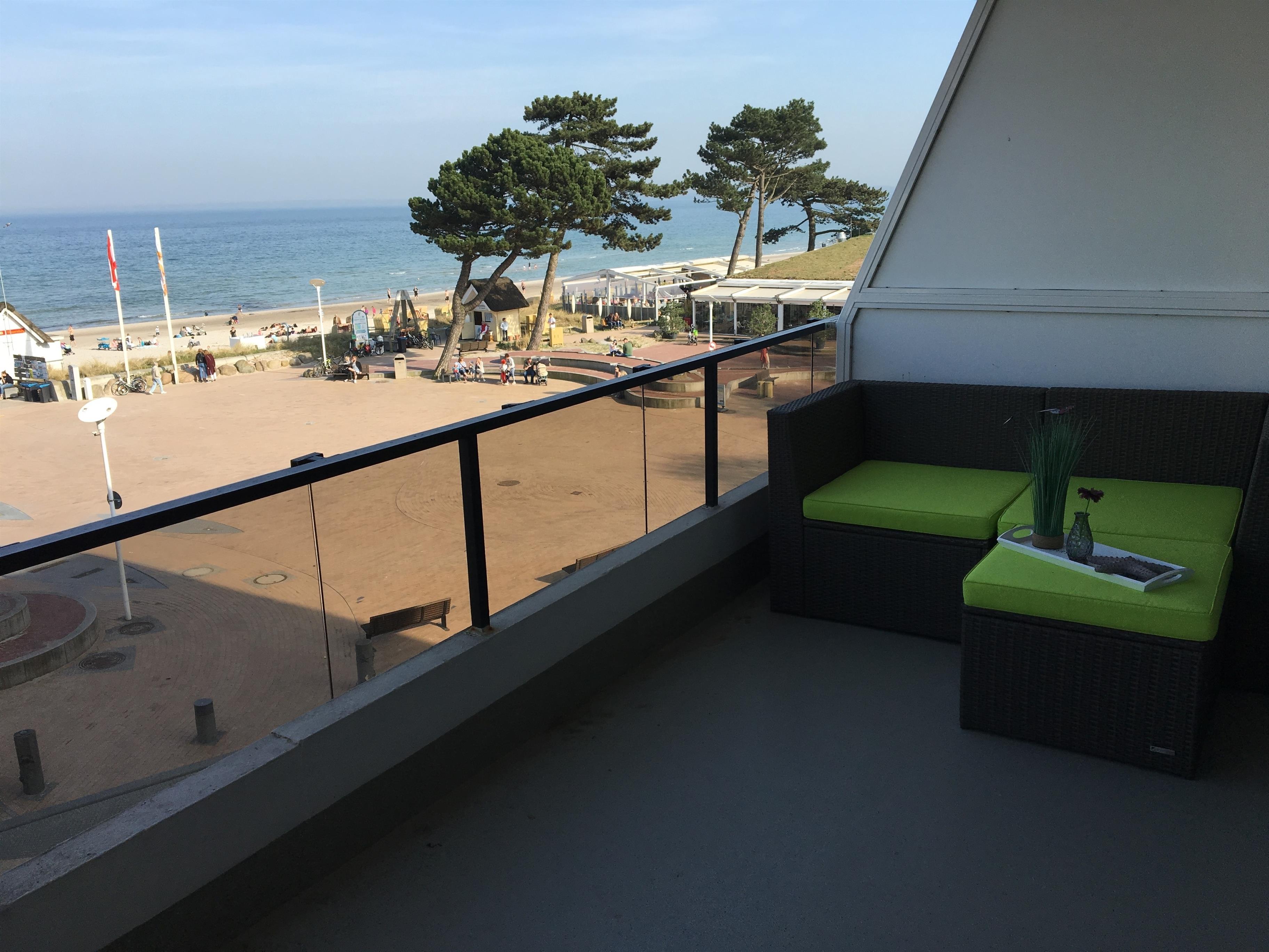 Genießen Sie den traumhaften Ausblick auf die Ostsee vom großzügigen 20 qm Balkon.