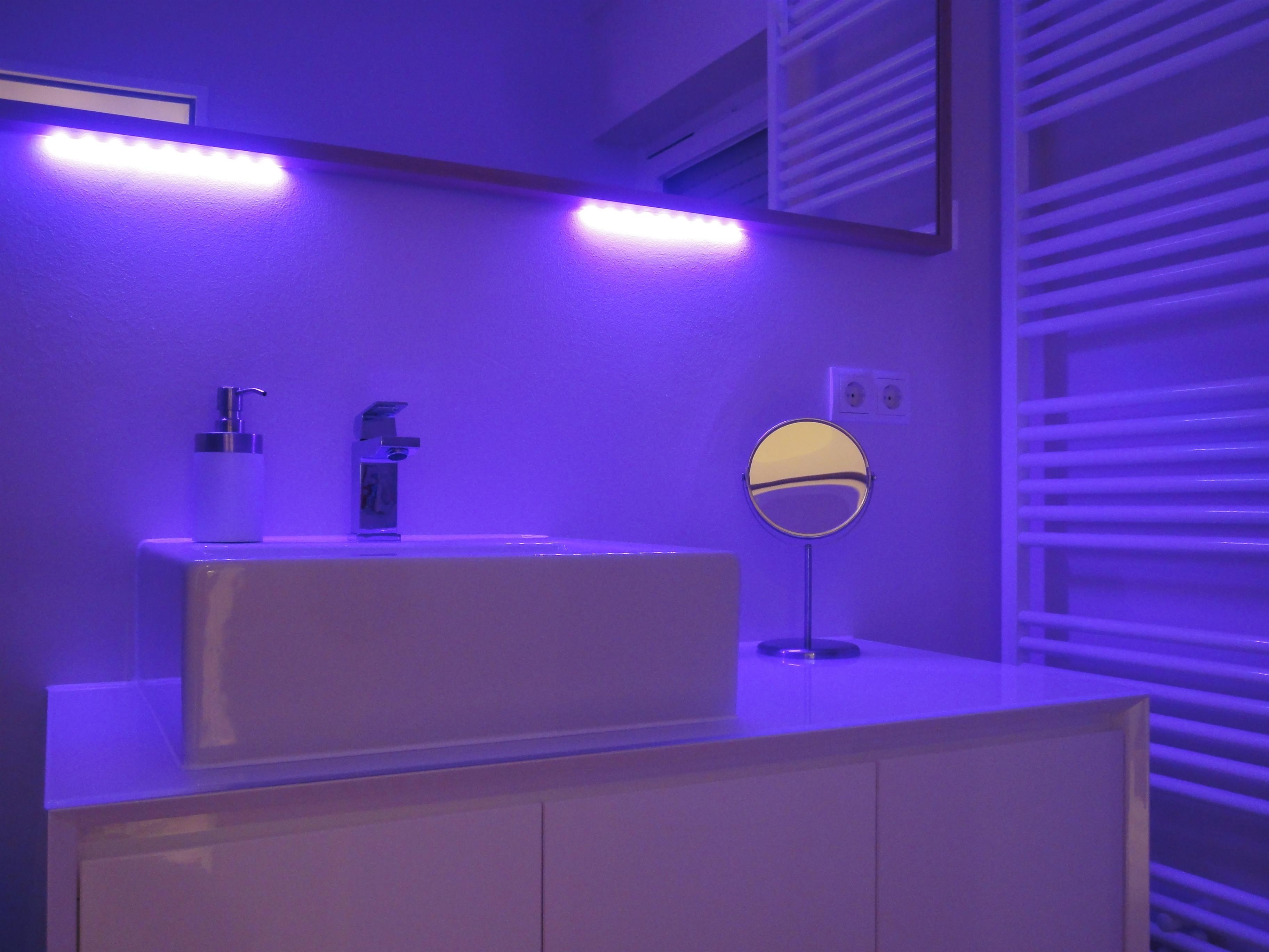 Im hellen Wohlfühl-Duschbad mit Wellnessbeleuchtung, bodenebener Walk-In-Dusche & Rainshower sowie einem Handtuchheizkörper startet ein entspannter Urlaubstag! Das Badezimmer ist mit edlem Feinsteinzeug ausgestattet.