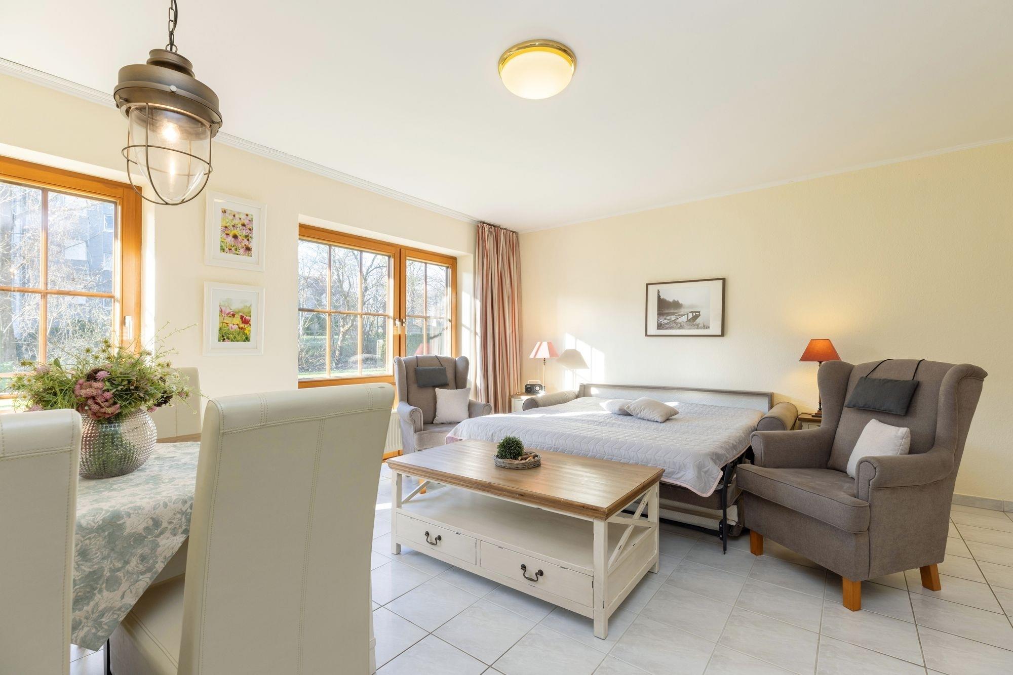 Zentral und nur ca. 300 m vom Strand entfernt liegt die modern eingerichtete ca. 50m² große 2-Zimmer Ferienwohnung für max. 4 Personen.
