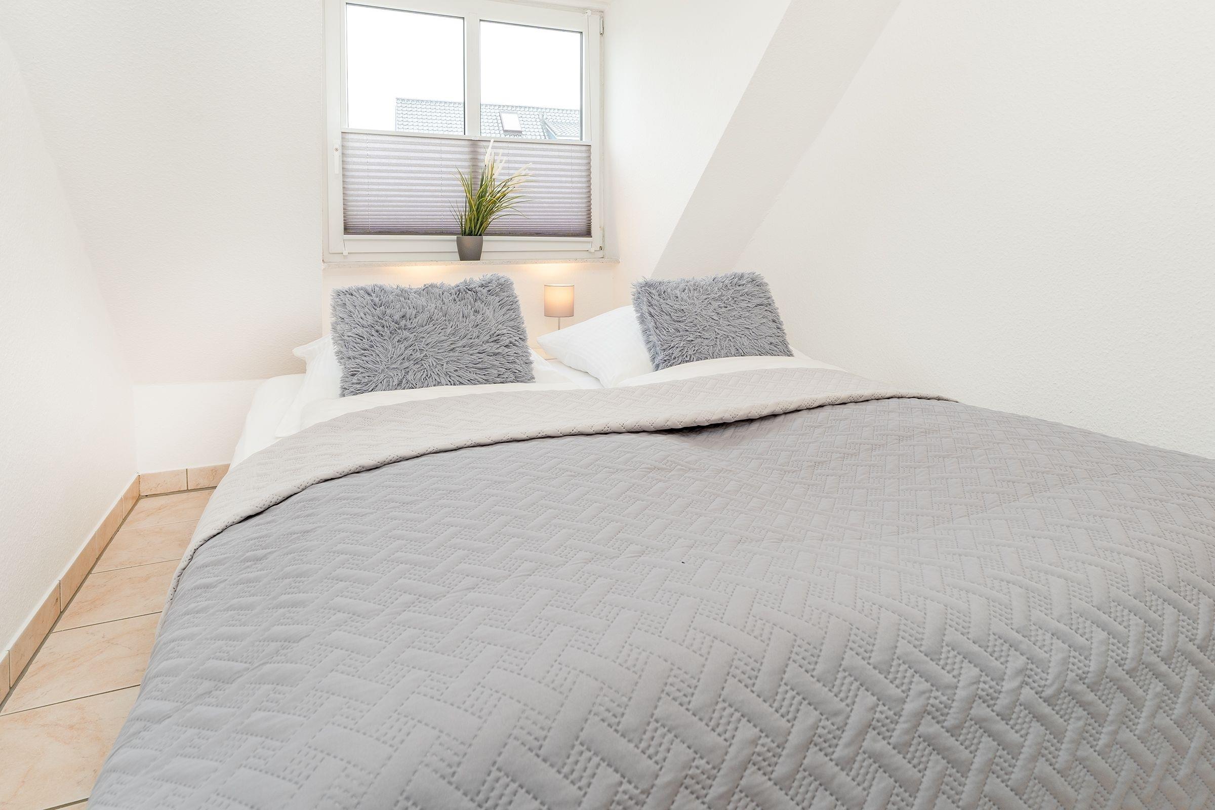 Schlafzimmer: 1 Doppelbett (2x 90x200 cm), Verdunklung (Gardinen)