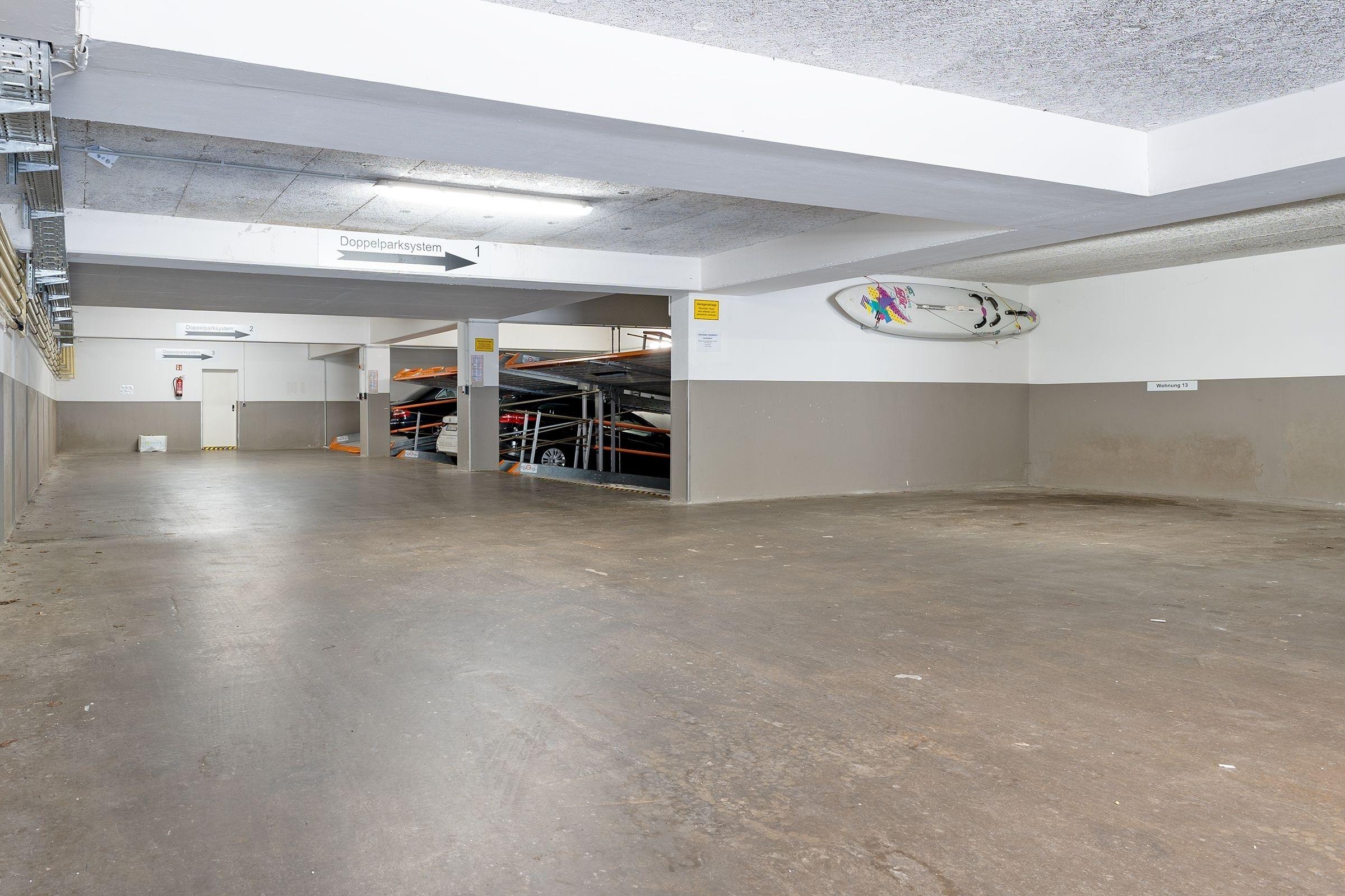 In der Tiefgarage der Appartementanlage ist ein Stellplatz (Stapelparker) für Ihren PKW reserviert. Bitte beachten Sie, dass der Stapelparker nur für PKW bis zu einer maximalen Höhe von 1,54 m geeignet ist. Als Ausweichmöglichkeit sind gebührenpflichtige, öffentliche Parkplätze vorhanden.