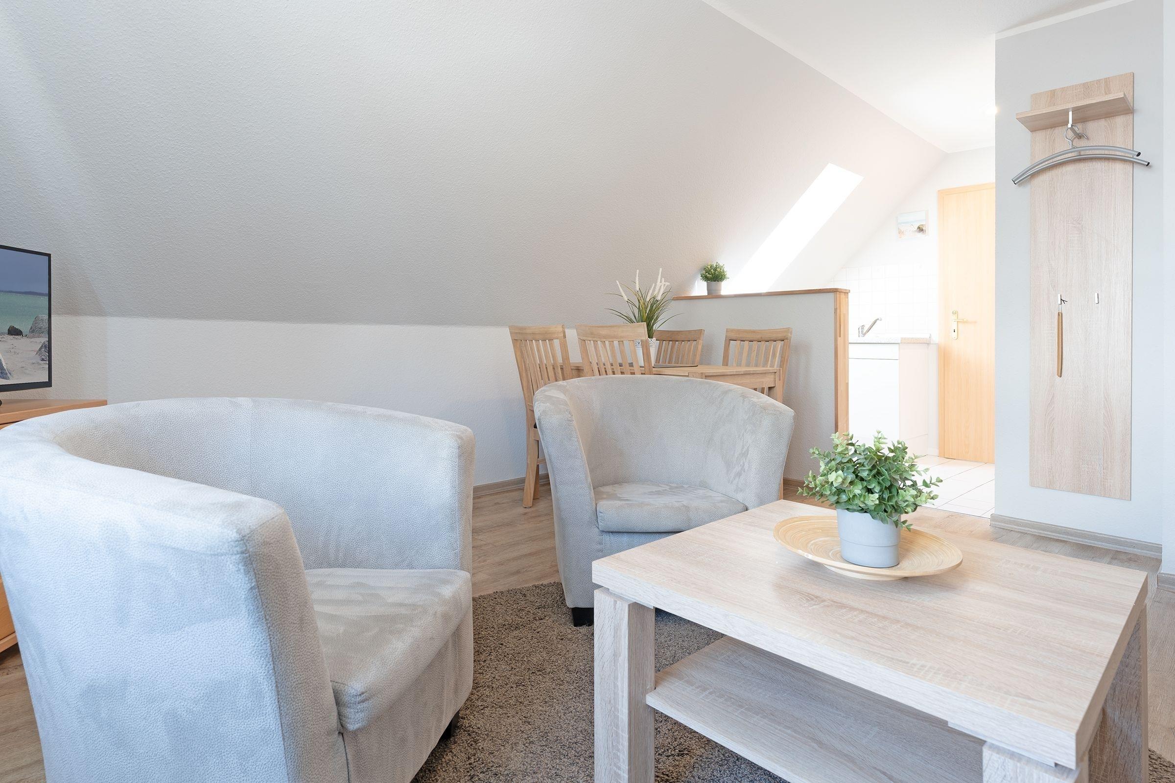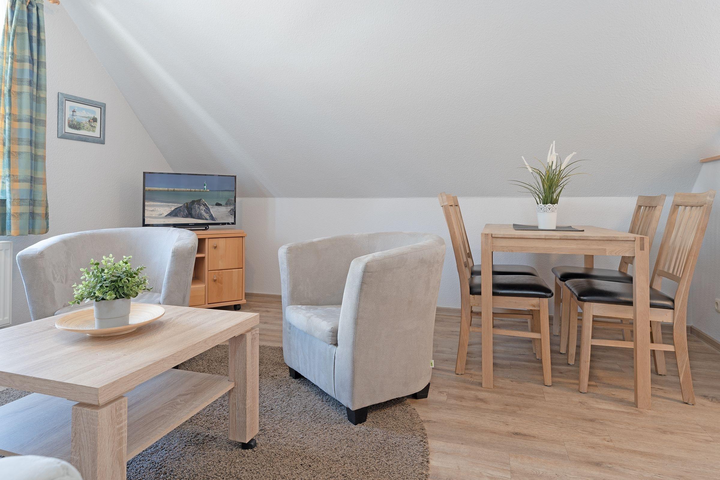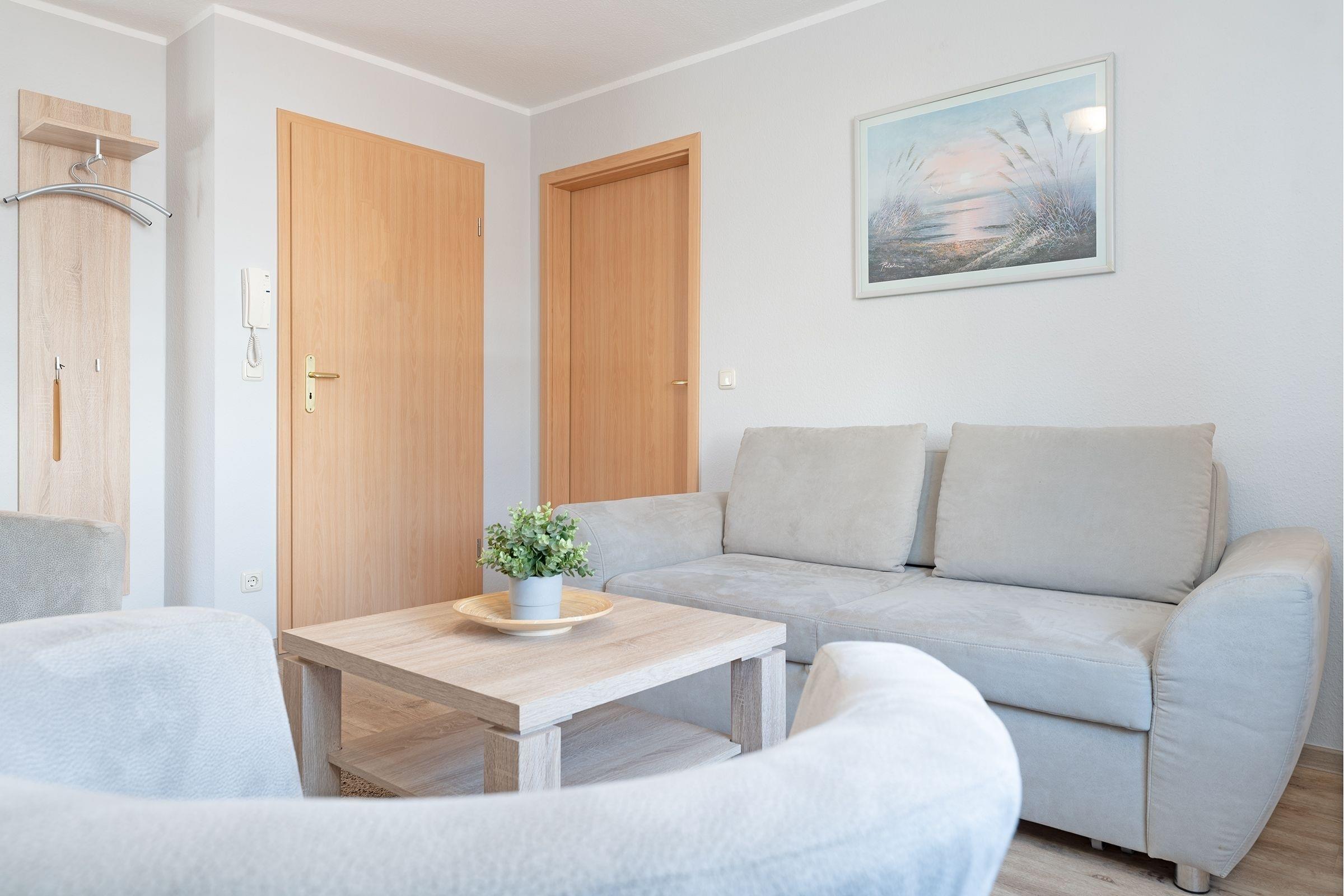 Diese behagliche Ferienwohnung im 1. OG ist hell und gemütlich eingerichtet. Sie hat 40m², bietet Platz für 4 Personen verteilt sich auf 2 Zimmer, davon ein separates Schlafzimmer und ein Wohnschlafzimmer.