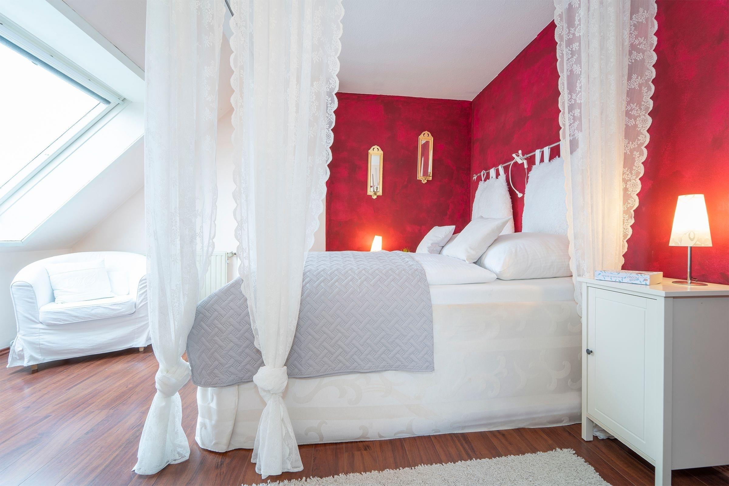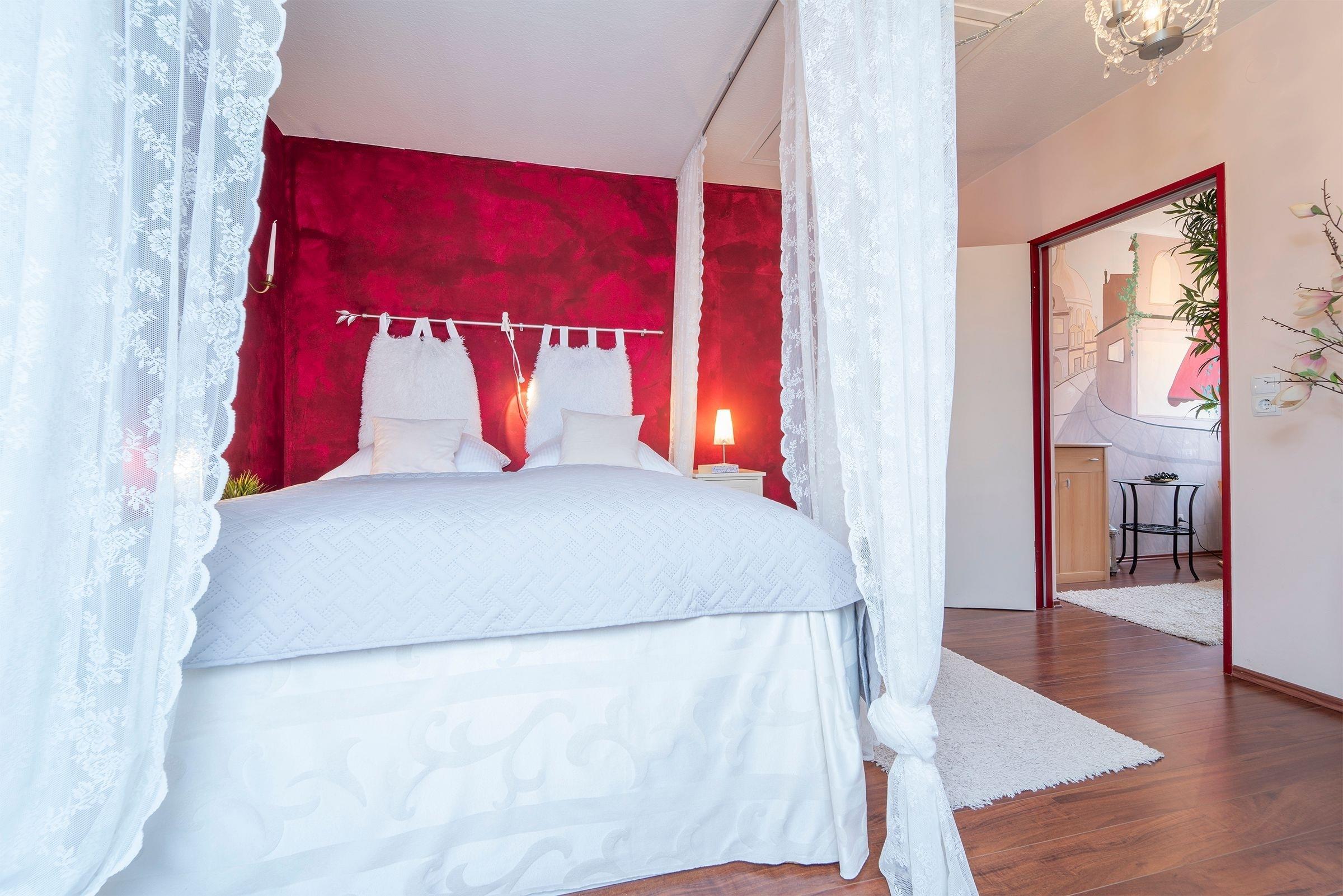 Schlafzimmer: 1 Doppelbett (160x200 cm), Verdunkelungsrollo, Platz für Kinderbett vorhanden