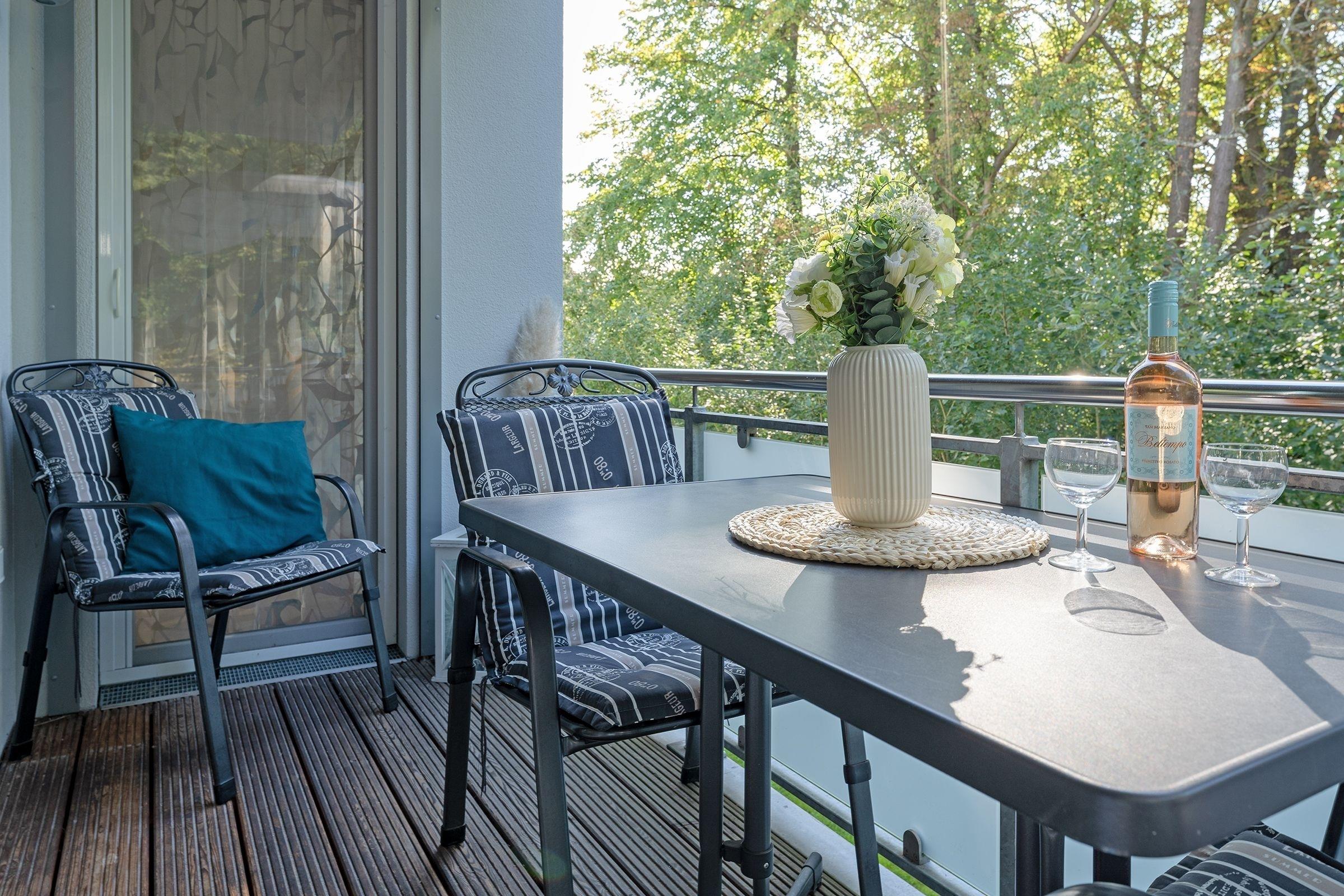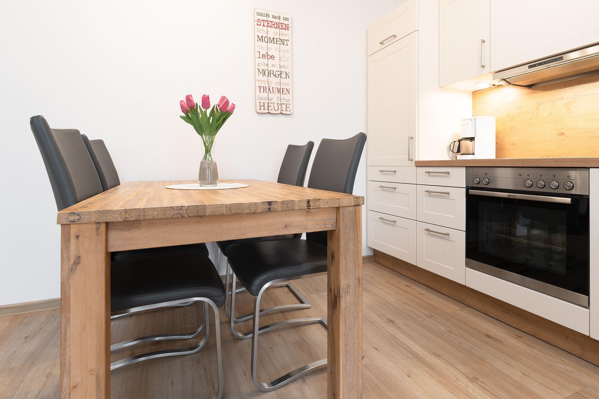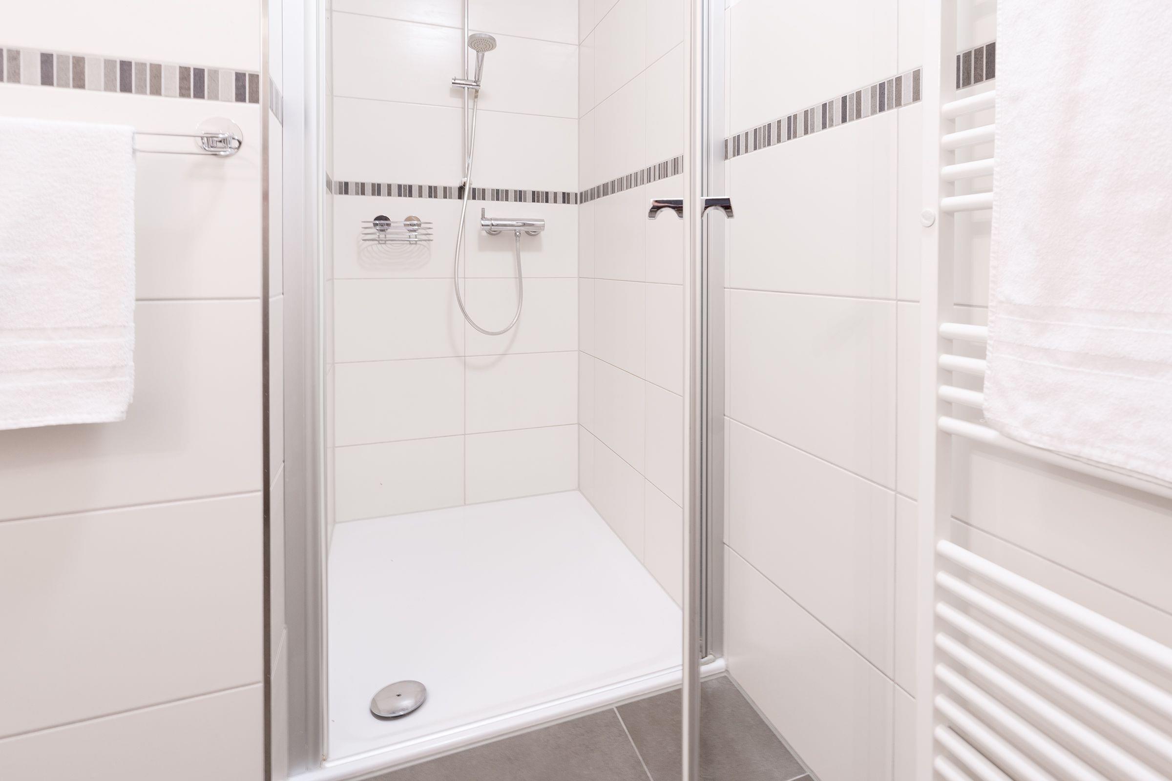 Im hell eingerichteten Schlafzimmer mit Doppelbett (2x90x200cm), großem Schiebetürenschrank und Flat-TV werden Sie traumhaft schlafen. Neben dem Bett kann ein Kindereisebett aufgestellt werden. Daneben das Wohnzimmer mit offener Küche und Essplatz ist harmonisch aufeinander abgestimmt und mit liebevollen Details dekoriert. Die Couch lässt sich mühelos zu einer Schlafgelegenheit (160x200cm) verwandeln. Ein überdachter Balkon mit Blick ins Grüne können Sie vom Wohn- und Schlafzimmer aus betreten, hier lässt es sich wunderbar aushalten bei angenehmen Temperaturen. Elektrische Außenrolladen sind bei beiden Zimmern angebracht. Ob Sie nur Frühstück zubereiten oder kochen möchten wie zu Hause, hier wird es Ihnen an nichts fehlen, die Küche ist mit Allem ausgestattet. Im kleinen Abstellraum vom Flur aus steht Ihnen sogar eine Waschmaschine für die Wäsche zwischendurch zur Verfügung. Daneben ist gleich das moderne Duschbad mit ebenerdiger Dusche, Fußbodenheizung, Handtuchwärmer, WC und Föhn. WLAN sowie ein Babyreisebett und ein Kinderhochstuhl stehen Ihnen kostenfrei zur Verfügung.