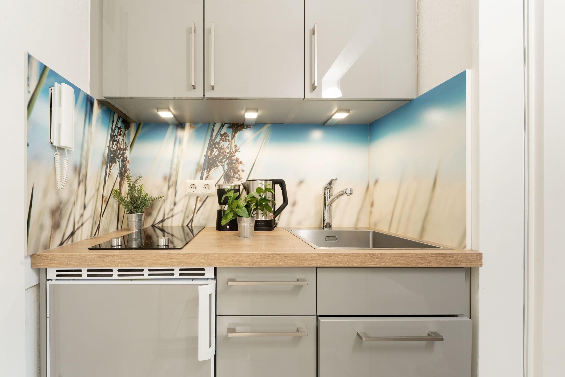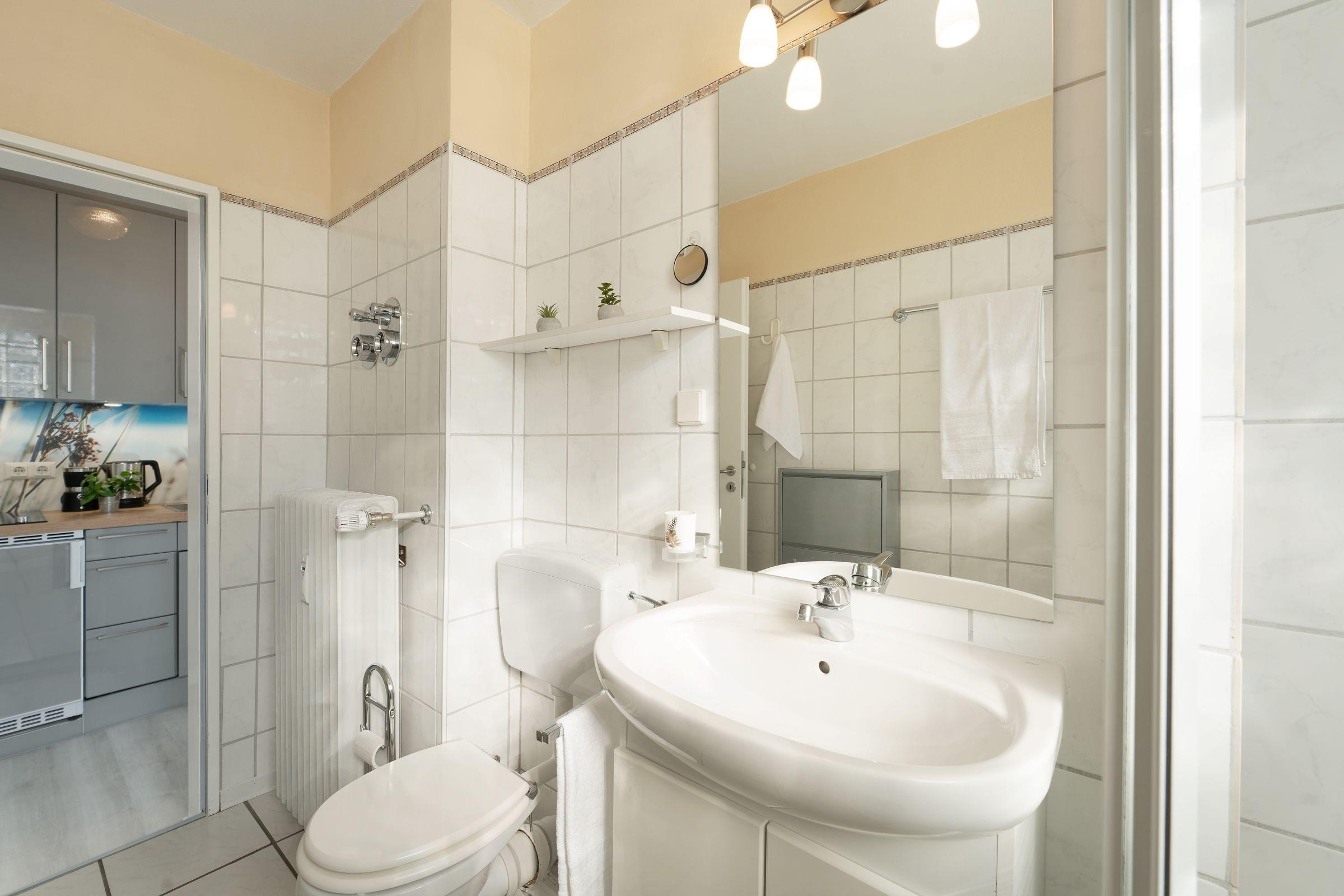Herzlich willkommen in Steffis Vogelnest! Nach Betreten der Ferienwohnung finden Sie sich direkt in der kleinen Küche wieder, ausgestattet mit Espresso- und Milchaufschäummaschine sowie Kühlschrank mit Gefrierfach, Herd, Kaffeemaschine und Wasserkocher. Es erwartet Sie daraufhin ein modernes, liebevoll eingerichtetes Wohn- und Schlafzimmer mit einladendem Essplatz für 2 Personen. Das gemütliche Boxspring-Doppelbett (160x200 cm) sorgt für entspannte Nächte, in denen Sie sicher von der schönen Ostsee träumen. Das helle Badezimmer mit Fenster und komfortabler Dusche, WC und hochwertigem Föhn komplettiert diese schöne Ferienwohnung.
