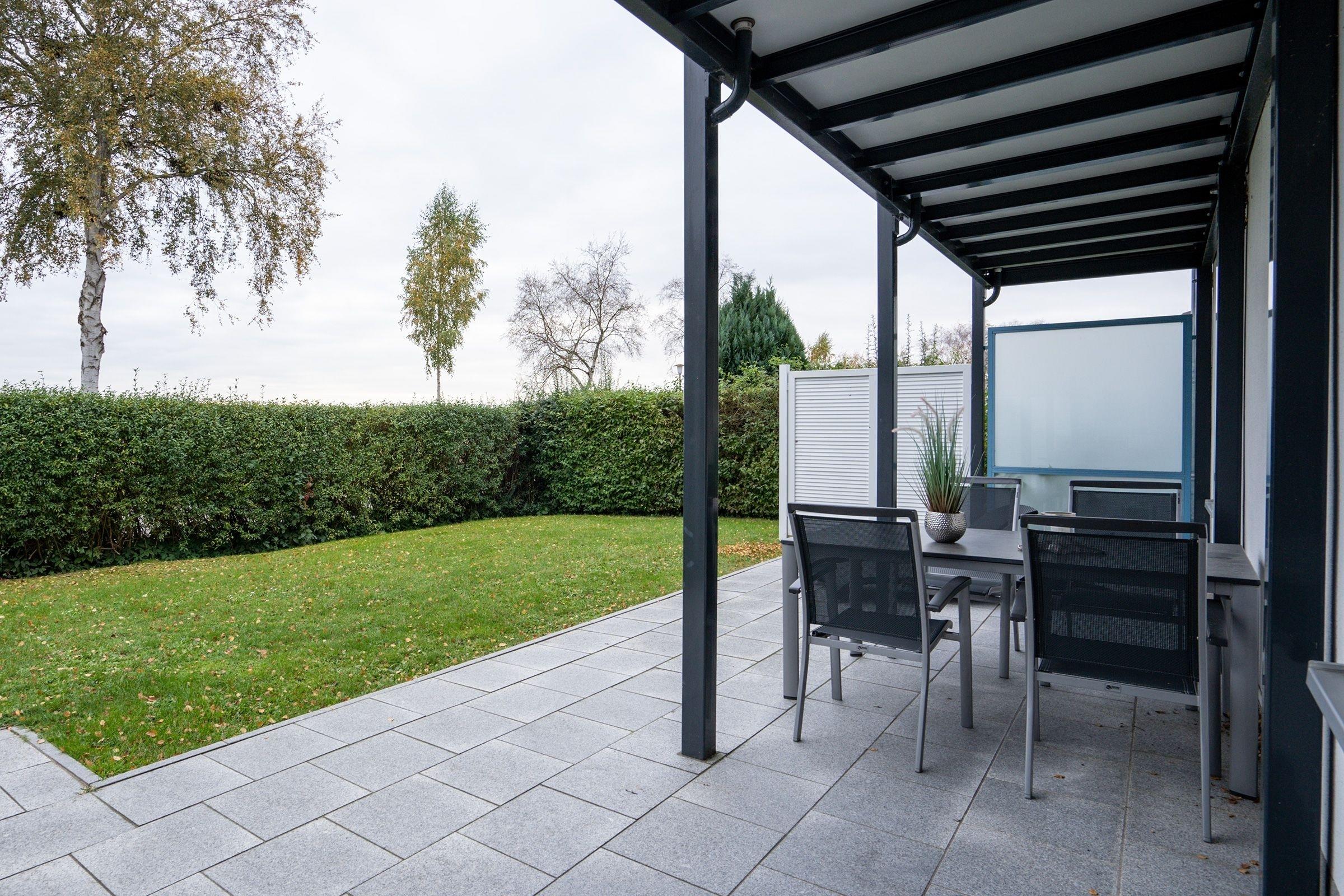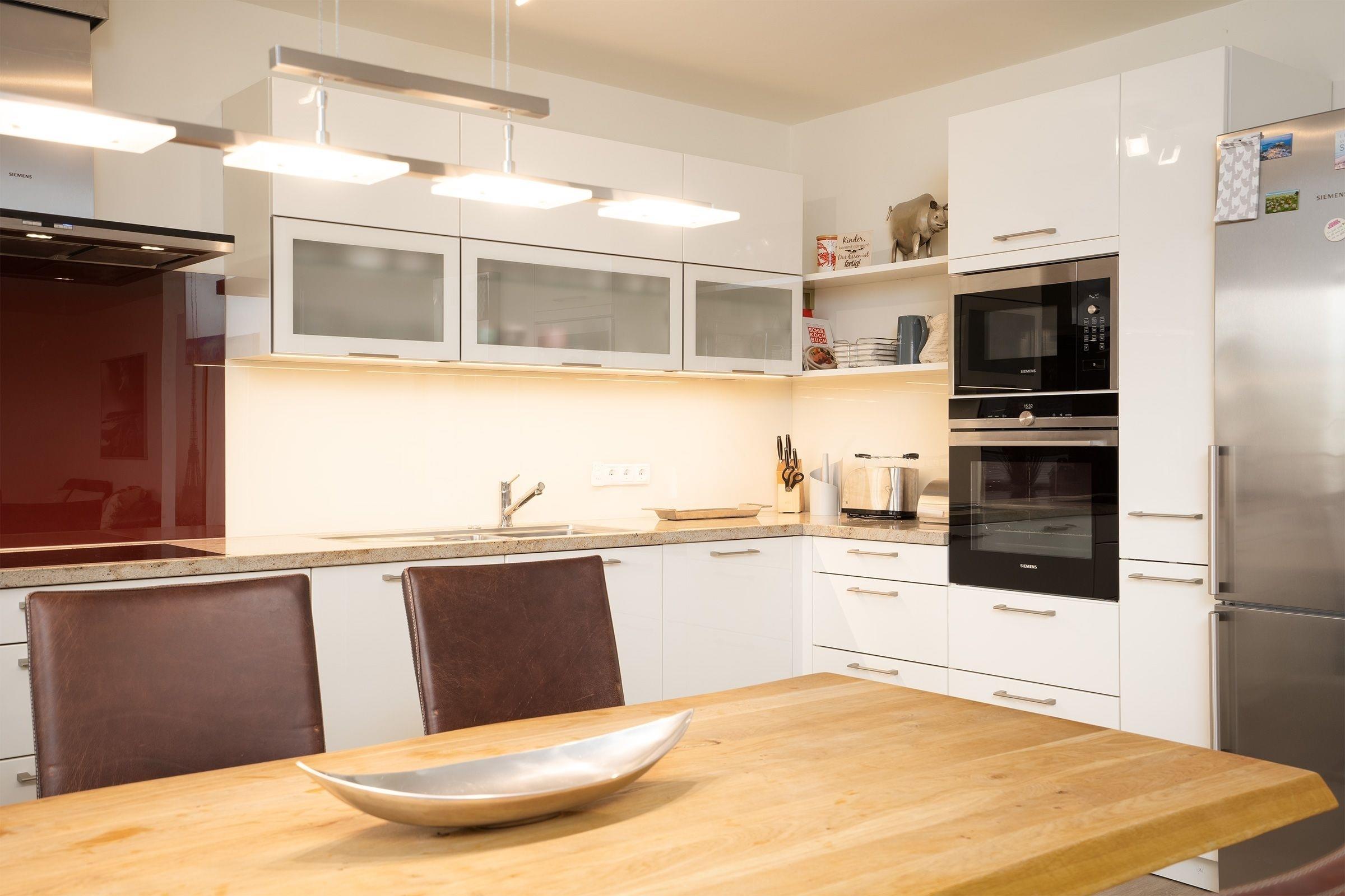Die Küche ist sehr gut ausgestattet und bietet Ihnen viele Möglichkeiten, mit der ganzen Familie gemeinsam zu kochen. Ihr anschließender Essbereich lässt Sie nach Herzlaune Schlemmen und Genießen. Mit der Nespresso-Kaffeemaschine können Sie sich z.B. einen leckeren Espresso nach dem Essen zubereiten. Vom Wohnzimmer aus gelangen Sie auf die überdachte Terrasse, die morgens zum ersten Kaffee einlädt und Ihnen abends unvergessliche Momente schenkt, wenn die Sonne untergeht. Im hell eingerichteten Schlafzimmer mit Boxspringbett (180x200cm) und großem Schrank werden Sie traumhaft schlafen. Komfortabel!...Auch hier wurde an einen weiteren Flat-Screen-TV gedacht. In Ihrem zweiten Schlafzimmer erwarten Sie ein Boxspringbett (180x200 cm) mit hochwertiger Matratze, die für Ihren erholsamen Schlaf sorgt und ein weiterer Schrank für Ihre Garderobe. Das moderne Tageslichtbad mit Dusche, WC und Handtuchwärmer rundet das Gesamtbild der Ferienwohnung ab. Obwohl man im Urlaub Haushaltarbeit strikt unterlassen sollte, ist für den Notfall dennoch Waschmaschine vorhanden. Die Internetnutzung ist über W-LAN kostenlos möglich.