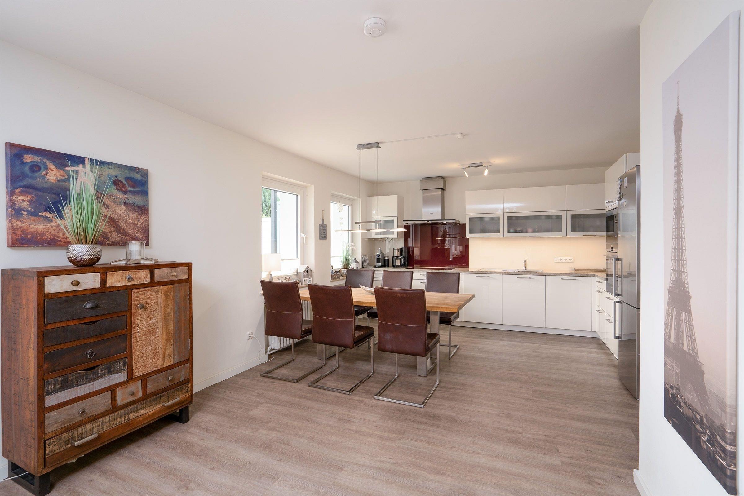 Hier warten auf Sie eine geschmackvoll und hochwertig eingerichtete, ruhig gelegene ca. 90 m² 3-Zimmer große Ferienwohnung für 4 Personen im Erdgeschoss.