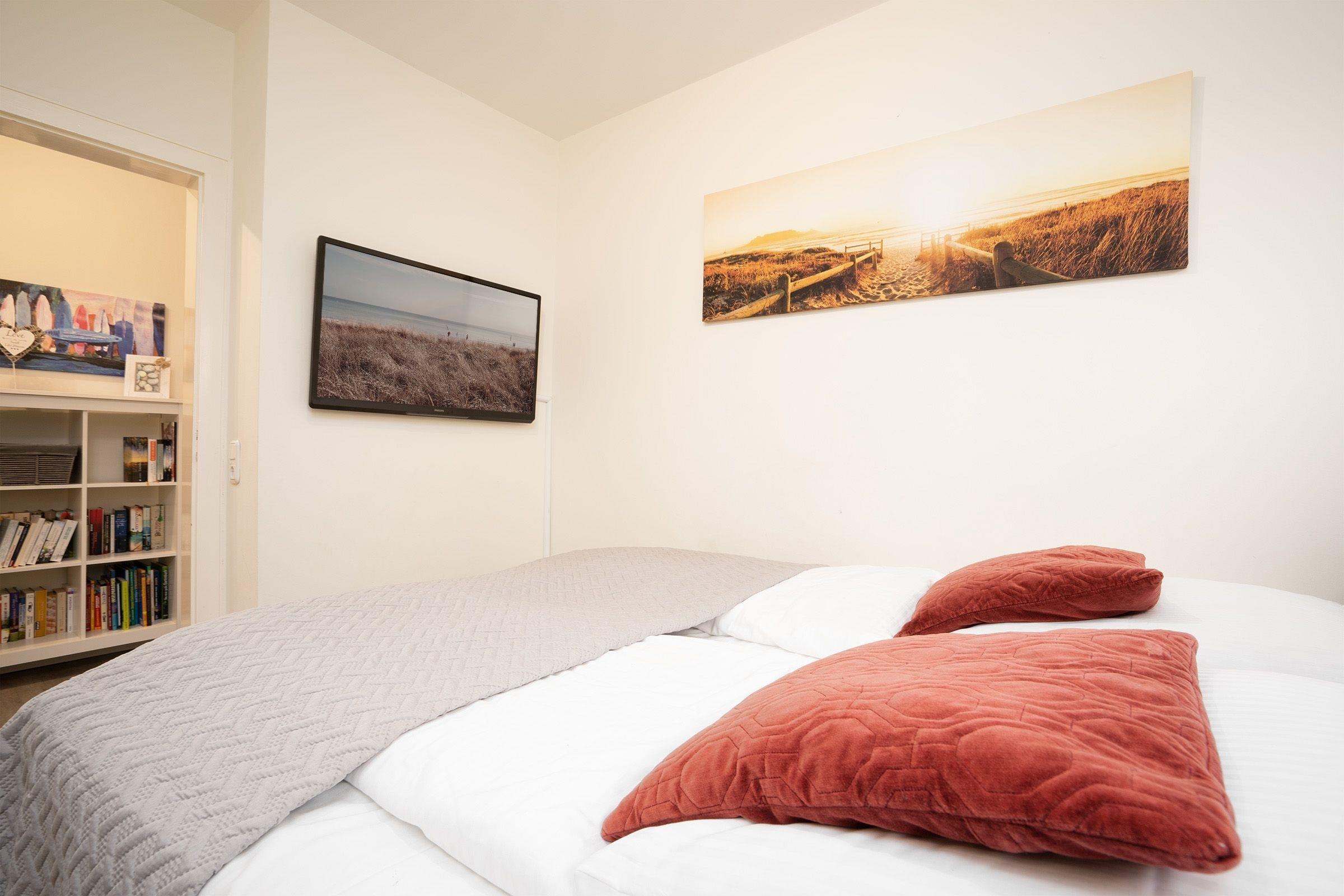 Schlafzimmer 2: 1 Boxspringbett (180x200 cm), TV, Kleiderschrank