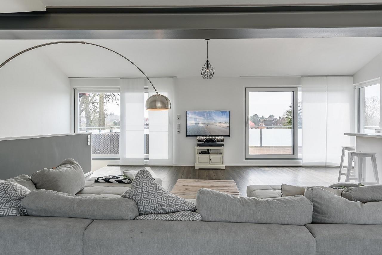 Stil- und geschmackvoll eingerichtete atemberaubende ca. 170 m² große 4-Zimmer-Ferienwohnung auf 2 Ebenen und ca. 50 m² Dachterrasse für max. 6 Personen in der 1. Etage.
