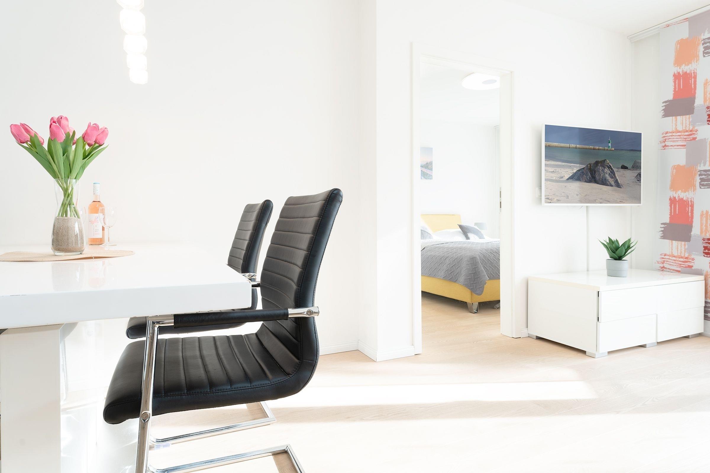 Strand und zentrumsnah gelegen ist die modern eingerichtete ca. 64m² große 2-Zimmer-Ferienwohnung für max. 4 Personen im Erdgeschoss des 2016 errichten Neubau "Augustusbad".