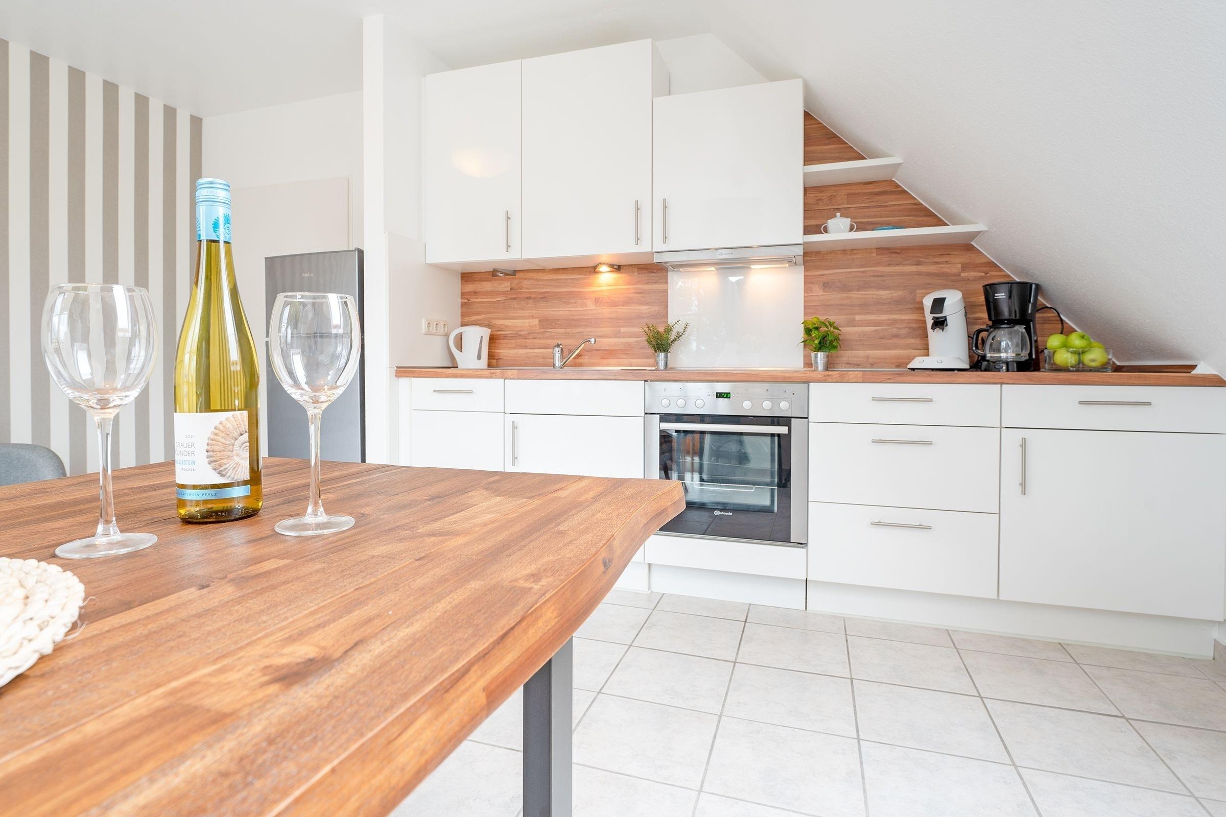 Diese helle Ferienwohnung besticht durch ihre liebevoll ausgesuchte Einrichtung. Kommen Sie herein, nehmen Sie Platz auf der kuscheligen Couch oder genießen Sie Ihre Auszeit auf dem Balkon. Ein TV-Gerät sowie ein CD-Player sorgen für die passende Unterhaltung. Für die Nacht lässt sich die Couch mit wenigen Handgriffen in ein Doppelbett (ca. 140x200 cm) verwandeln. Die großzügige Wohnküche mit Zugang zu einem weiteren Balkon verfügt über eine Schlafcouch für 2 Kinder (ca. 120x200 cm) und eine schicke Essecke. Wie wäre es hier abends mit einem Glas Wein? Die Küche mit Geschirrspülmaschine ist modern und hochwertig ausgestattet und dürfte jeden Hobby-Koch erfreuen. Bereiten Sie hier gemeinsam Ihre Lieblingsspeisen zu. Im separaten Schlafraum steht ein bequemes Doppelbett (2x 90x200 cm) und lädt zum Träumen ein. Das moderne Duschbad mit Dachfenster bietet tollen Komfort und lässt Sie prima in den Tag starten. Der WLAN-Anschluss ist inklusive.