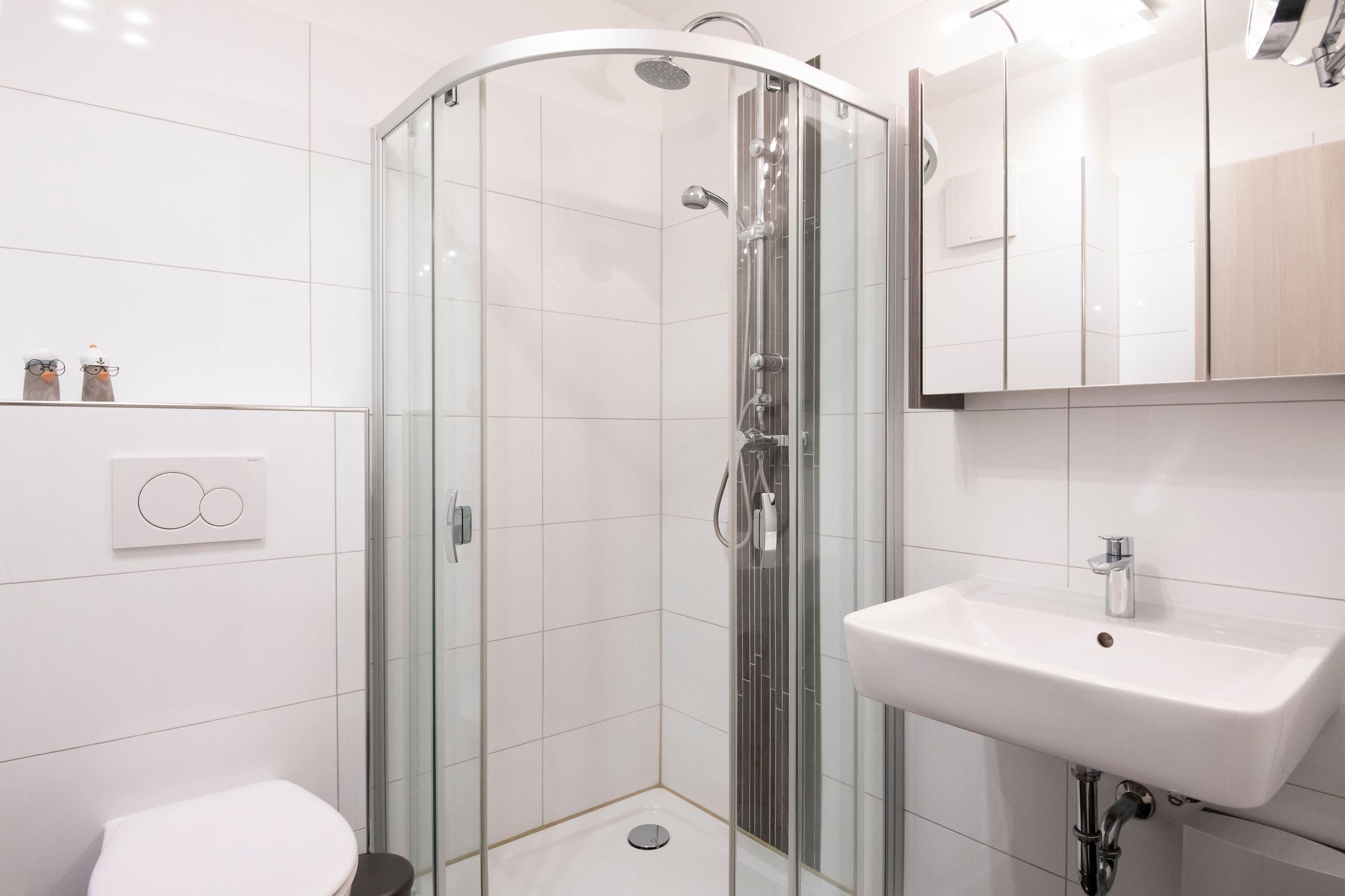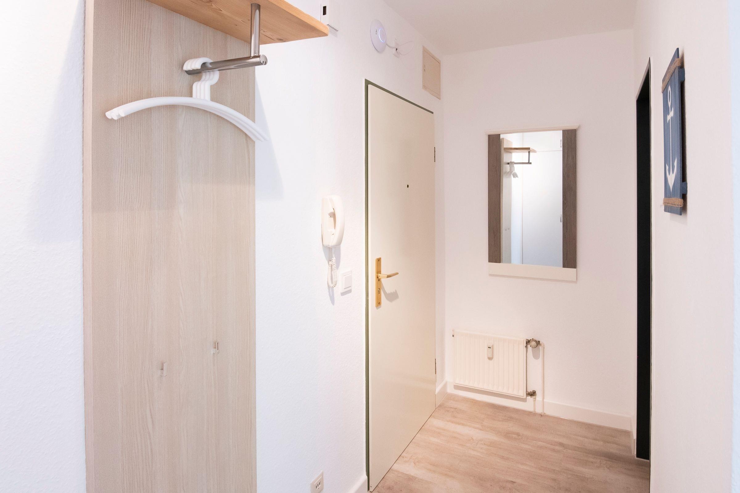 Die moderne Küchenzeile mit Esstresen lädt zu geselligen Kochabenden ein. Weiterhin verfügt die Küchenzeile z. B. über ein Herd mit Cerankochfeld, einen Geschirrspüler, einen Backofen sowie über eine Kaffeemaschine. Im Wohnbereich lädt ein komfortables Boxspringbett (160x200 cm) zu entspannten Nächten ein. Plissees allen Fenstern sorgen für Verdunkelung. Ein Fernseher (DVB-T Empfang), ein DVD-Player und ein Radio/CD-Player sind ebenfalls vorhanden. Vom Wohnbereich aus haben Sie Zugang zum möblierten Balkon, auf dem Sie lauschige Urlaubsabende bei einem guten Glas Wein genießen können. Im Flur bietet ein großer Einbauschrank ausreichend Platz für Ihre Urlaubsgarderobe. Das hell geflieste Badezimmer überzeugt mit klarem Design und bietet durch einen niedrigen Duscheinstieg angenehmen Komfort. Der WLAN-Anschluss ist inklusive.
